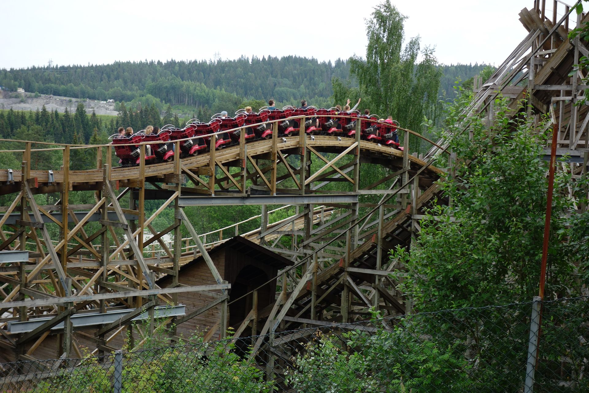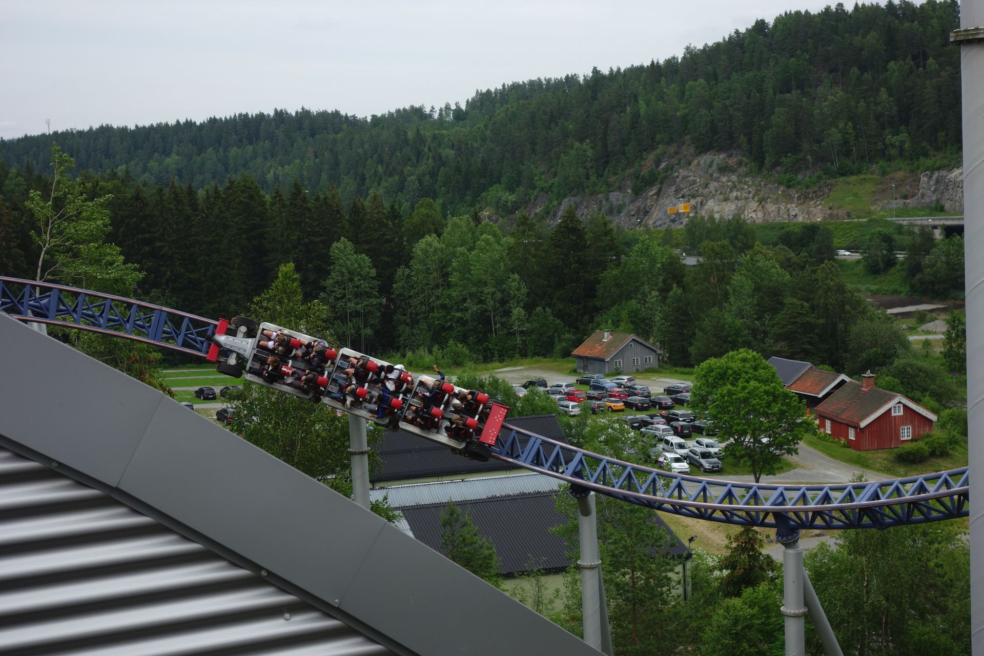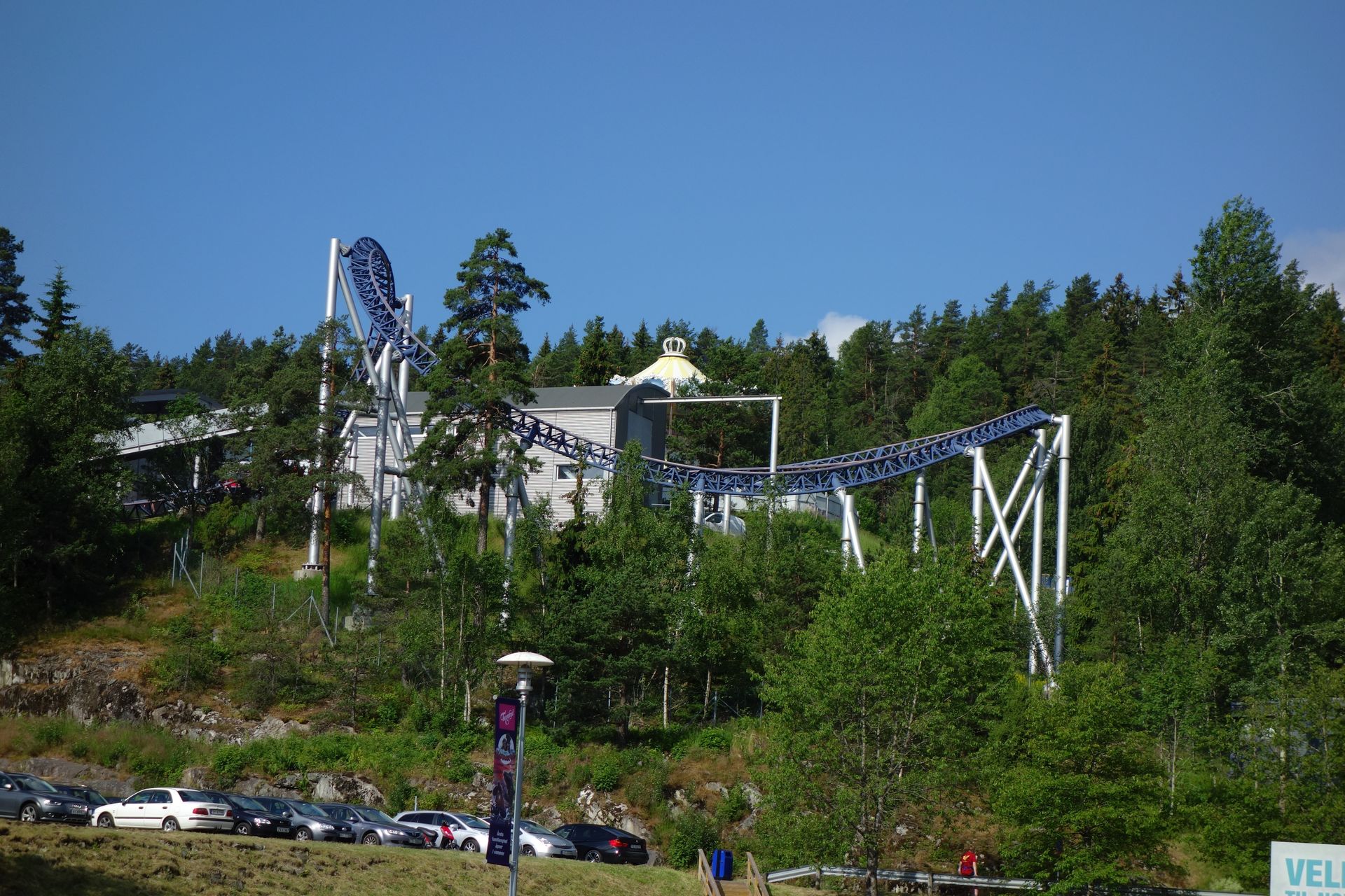 Der siebente Tag unserer Skanditur führte uns erneut über eine Landesgrenze. Schon nach relativ kurzer Fahrzeit mussten wir uns nicht nur vom liebgewonnen Schweden verabschieden, sondern wir verließen sogar die Europäische Union. Anders als bei den Grenzübertritten innerhalb dieser, wo wir jeweils kurz unsere Pässe hatten vorzeigen müssen, schien das hier allerdings niemanden zu interessieren. So fielen wir also ohne Gegenwehr in Norwegen ein und steuerten geradewegs auf Oslo zu, von wo aus uns die Fähre am Abend wieder nach Dänemark zurückbringen sollte. Demnach blieb uns tatsächlich nur dieser eine Tag, um Norwegen kennenzulernen. Und da wir nunmal mit FunTours unterwegs waren, kam hierzu nur ein Ziel in Frage, welches jeder gute Achterbahnfan aus einer legendären Doku kennen sollte. Die schauten wir uns während der Anfahrt natürlich auch nochmal an.