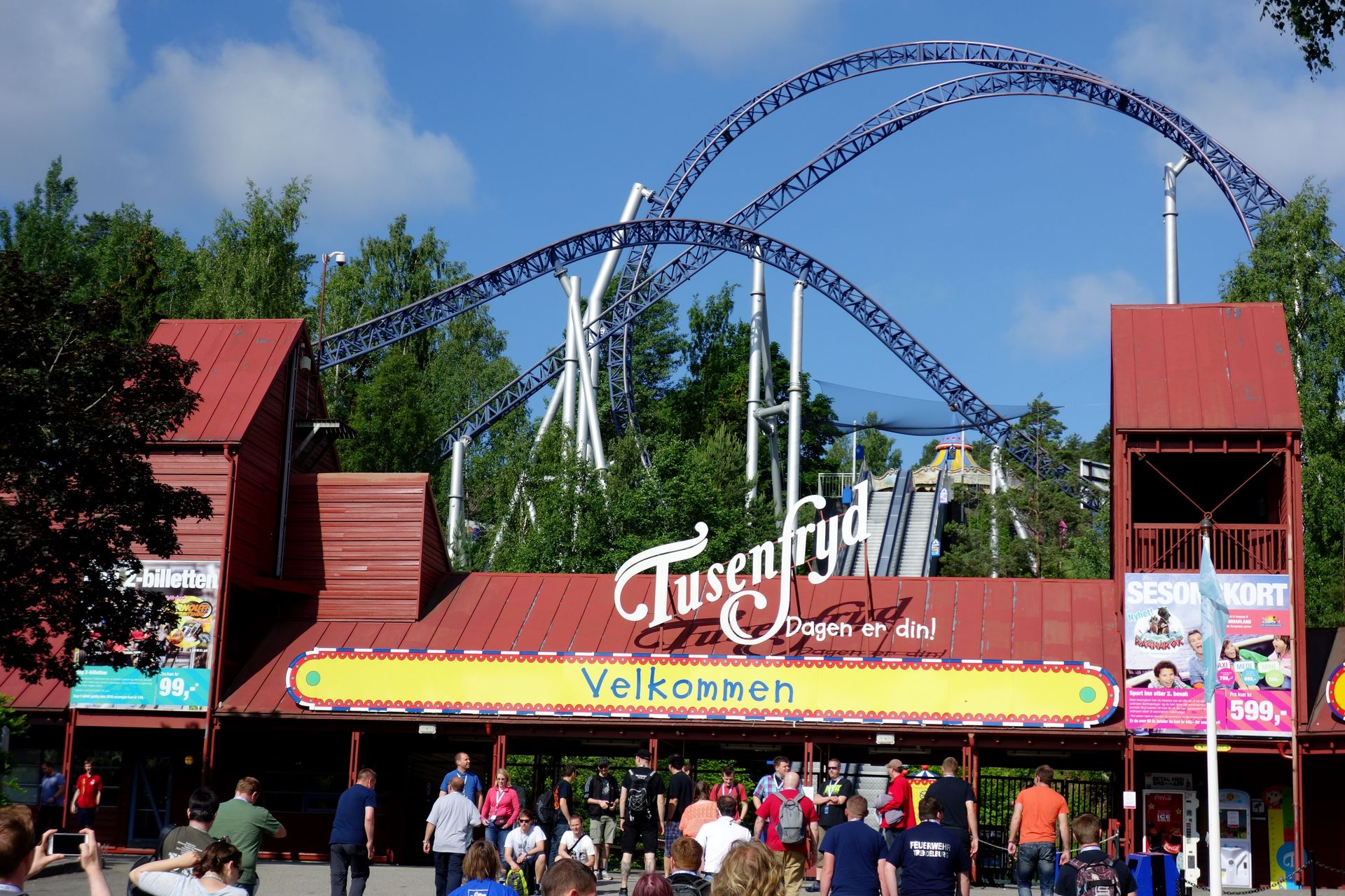 Der Park liegt etwa 20 Kilometer südlich von Oslo und ist noch vergleichsweise jung. Der ursprünglich an dieser Stelle gelegene Zoo war 1950 eröffnet worden und hatte 1985 wieder schließen müssen. Zwei Unternehmer nahmen sich dem Gelände an und eröffneten im Sommer 1988 schließlich den heutigen Freizeitpark. Seither besuchen jährlich etwa eine halbe Million Menschen Tusenfryd, in diesem Jahr nun auch wir. Seit 2008 gehört Tusenfryd zu Parques Reunidos, sodass der ein oder andere dann doch an der Übersetzung des Namens zweifeln dürfte. Tausend Freuden heißt der Park nämlich im Deutschen. Ein gewagtes Versprechen, dem wir nun auf den Grund gehen wollten...