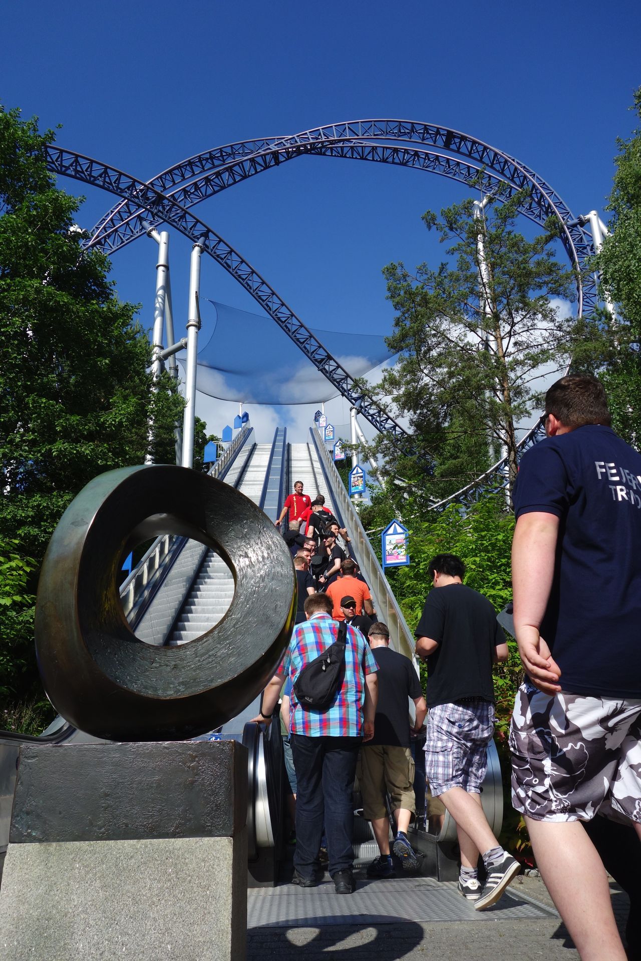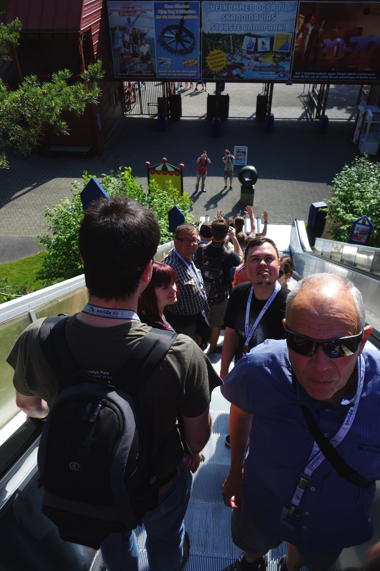 Freude Nummer 2: Schlange stehen für die Rolltreppe ins Glück. Ja, die Idee schon geil. Eine Rolltreppe vom Eingang des Parks mitten durch die Hauptattraktion hindurch hat nicht jeder. Es staut sich halt ein bisschen, wenn eine größere Gruppe diese benutzen will. Aber in der Regel fährt man ja nur einmal morgens rauf und abends dann wieder runter.