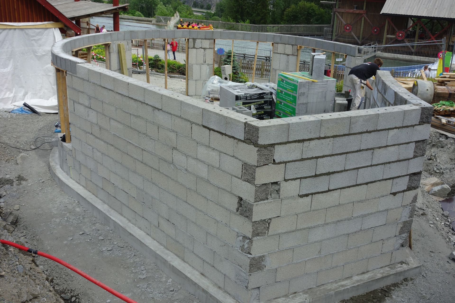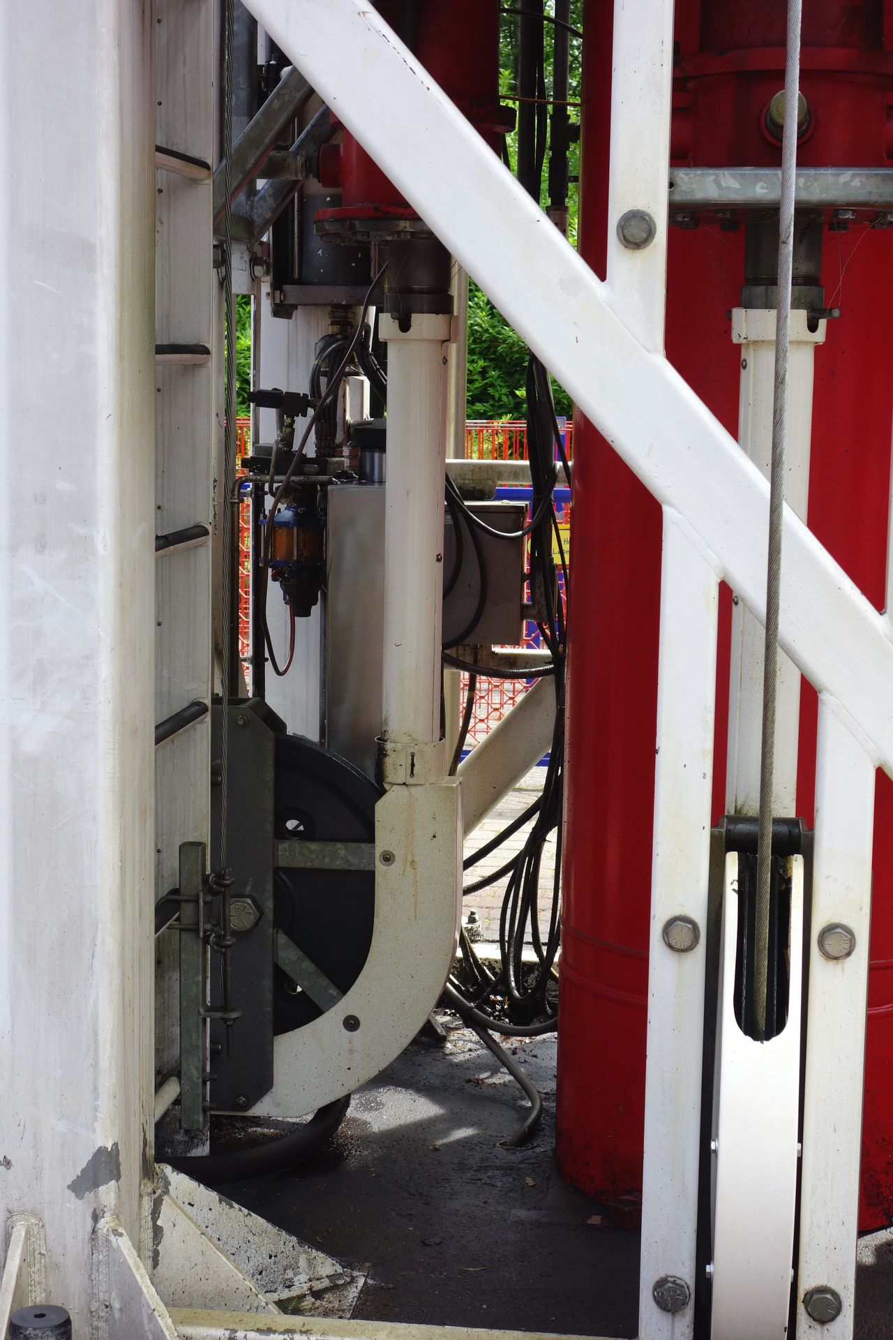 Bei dem roten Bogen dachte ich auf den ersten Blick, da stünde eine Achterbahn. Es war aber nur eine Betonpumpe...