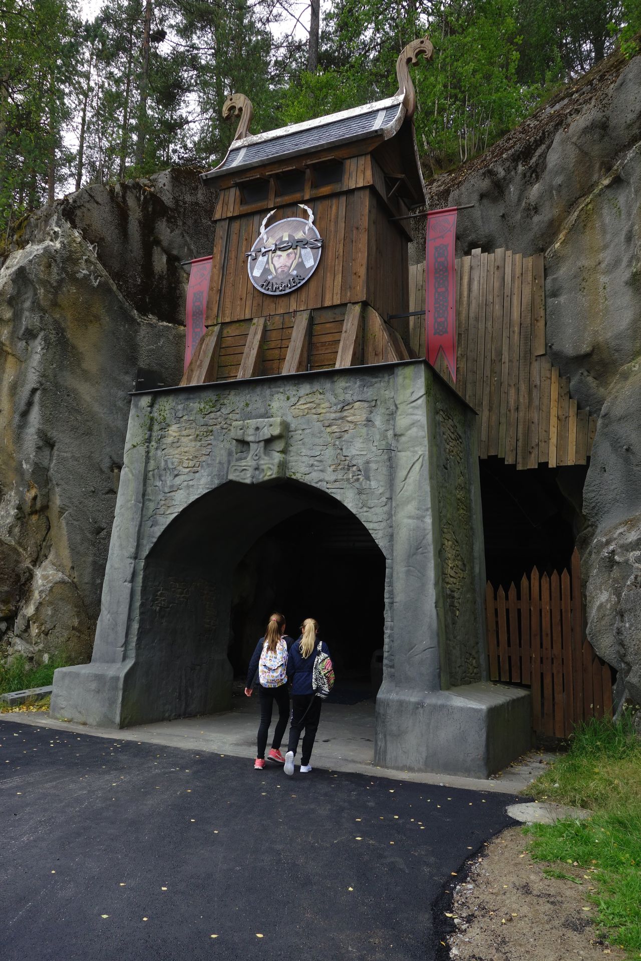 Dritte Attraktion hier unten ist der Darkride Thor's Hammer, den man einfach in den Berg hineingesprengt hat.