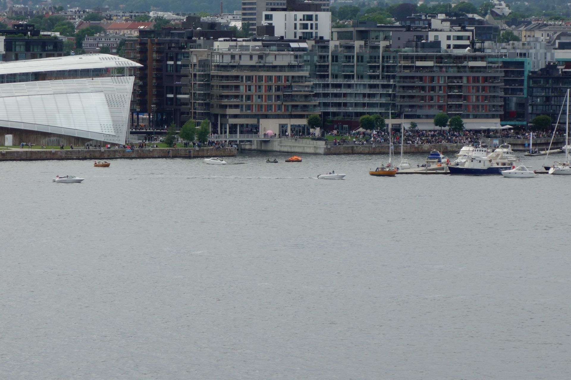 Von unserer Position sah es so aus, als würde eine Jacht brennen. Die vielen Schaulustigen irritierten uns allerdings.