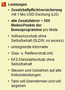 Zusatzfahrer und Tankfüllung sind nicht inklusive, der Zusatzfahrer kostet aber nur maximal 94,50 Dollar (plus lokale Abgaben). Die Tankfüllung ist bei einem Kleinstwagen in den USA vernachlässigbar, und ganz genau leer fährt man den Tank ja ohnehin nie.