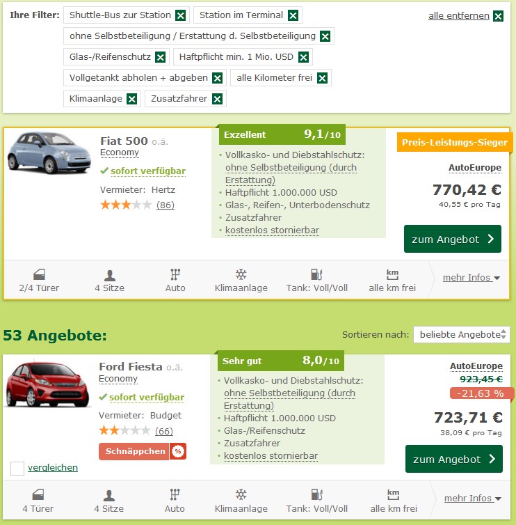Billiger Mietwagen: