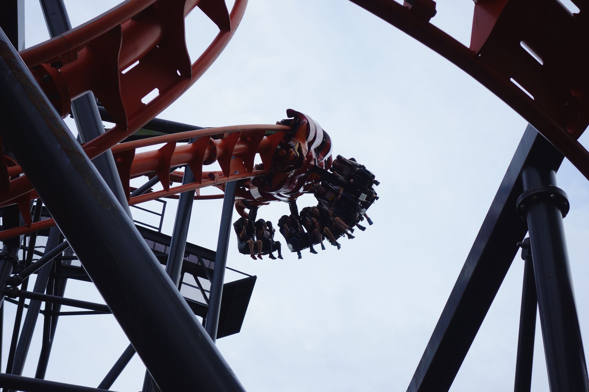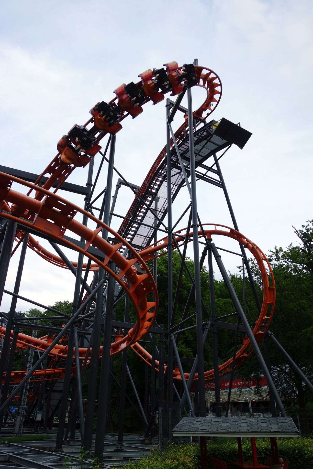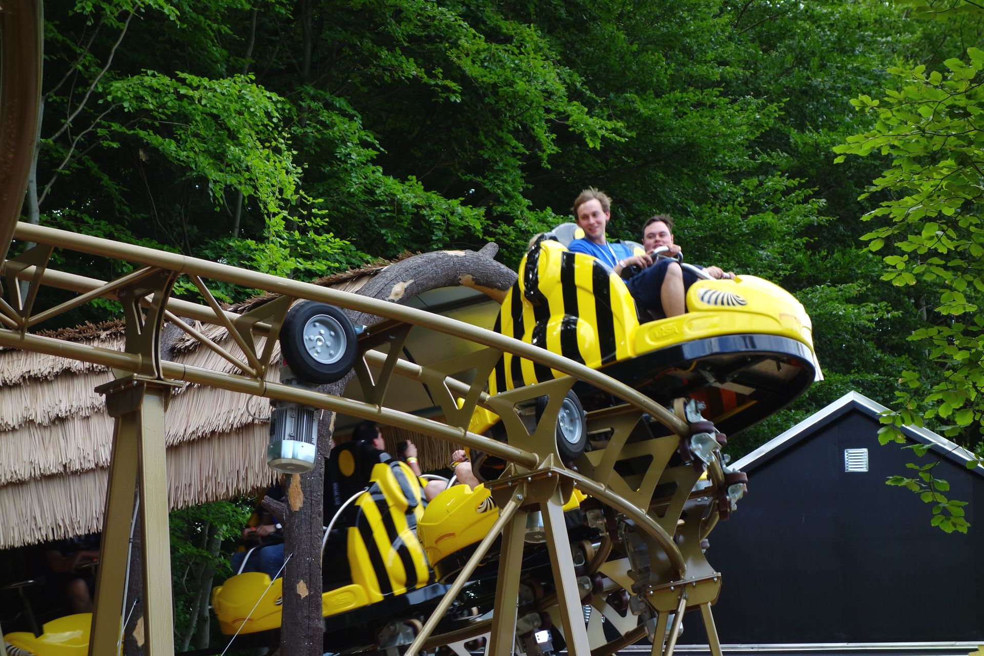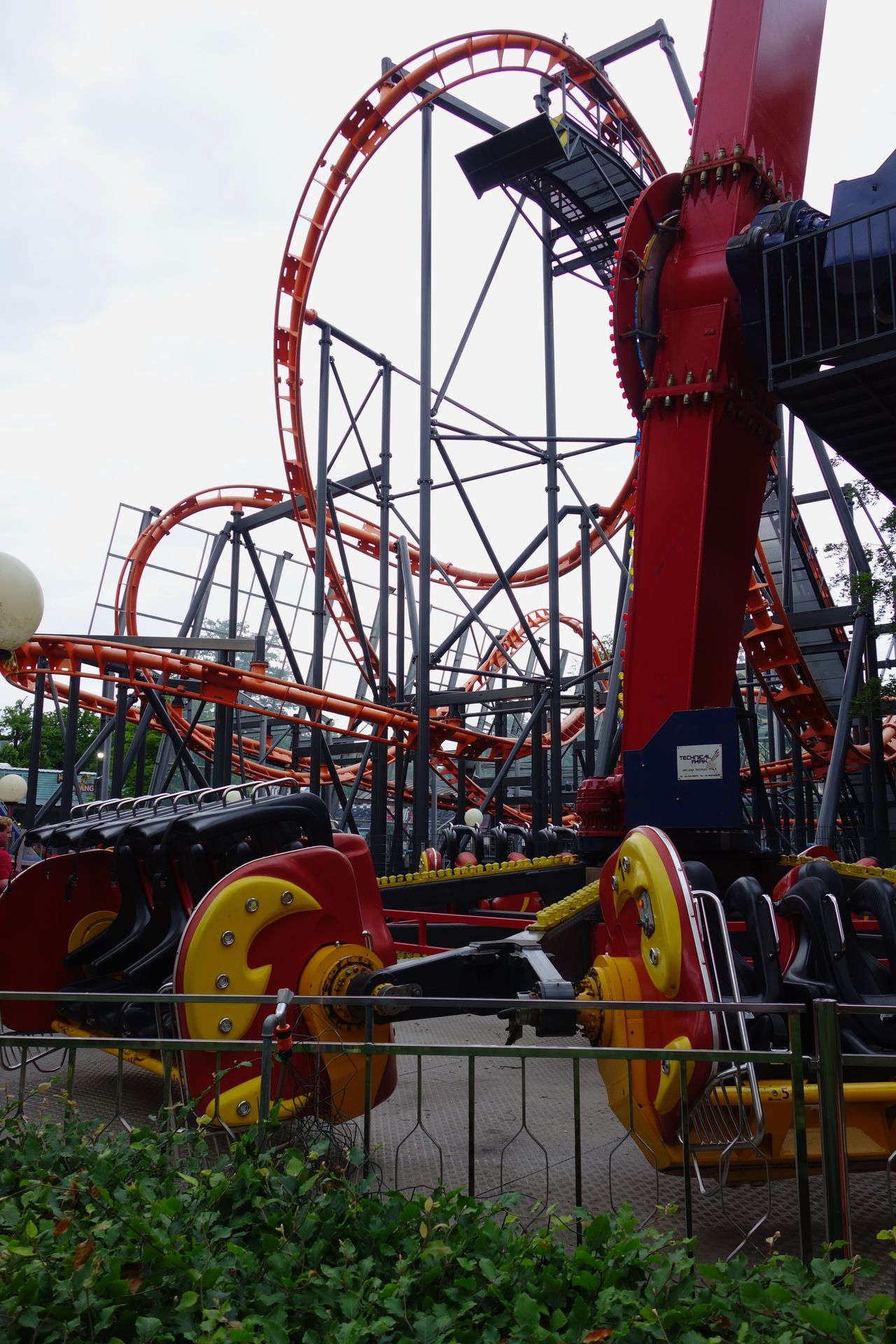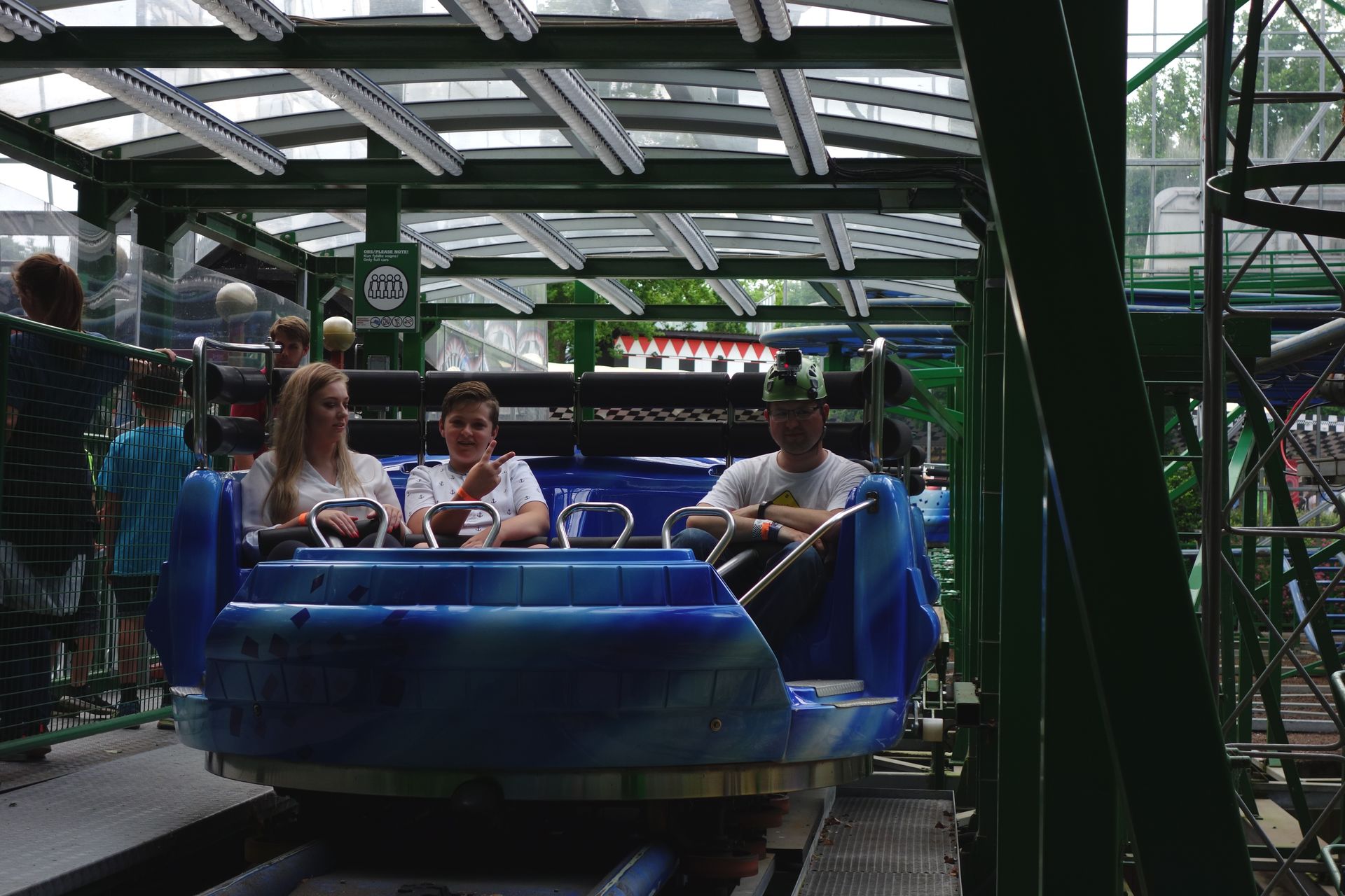 Leider hatten wir bei der ersten Fahrt keine gute Gewichtsverteilung und die Drehung hielt sich im Rahmen. Da die Warteschlange sehr kurz war, wagten wir noch einen zweiten Versuch. Diesmal tatsächlich mit ordentlich Spin, aber leider ohne Aufnahme auf Alex GoPro. Also noch eine Runde. Und wieder hatte die GoPro nicht aufgenommen...