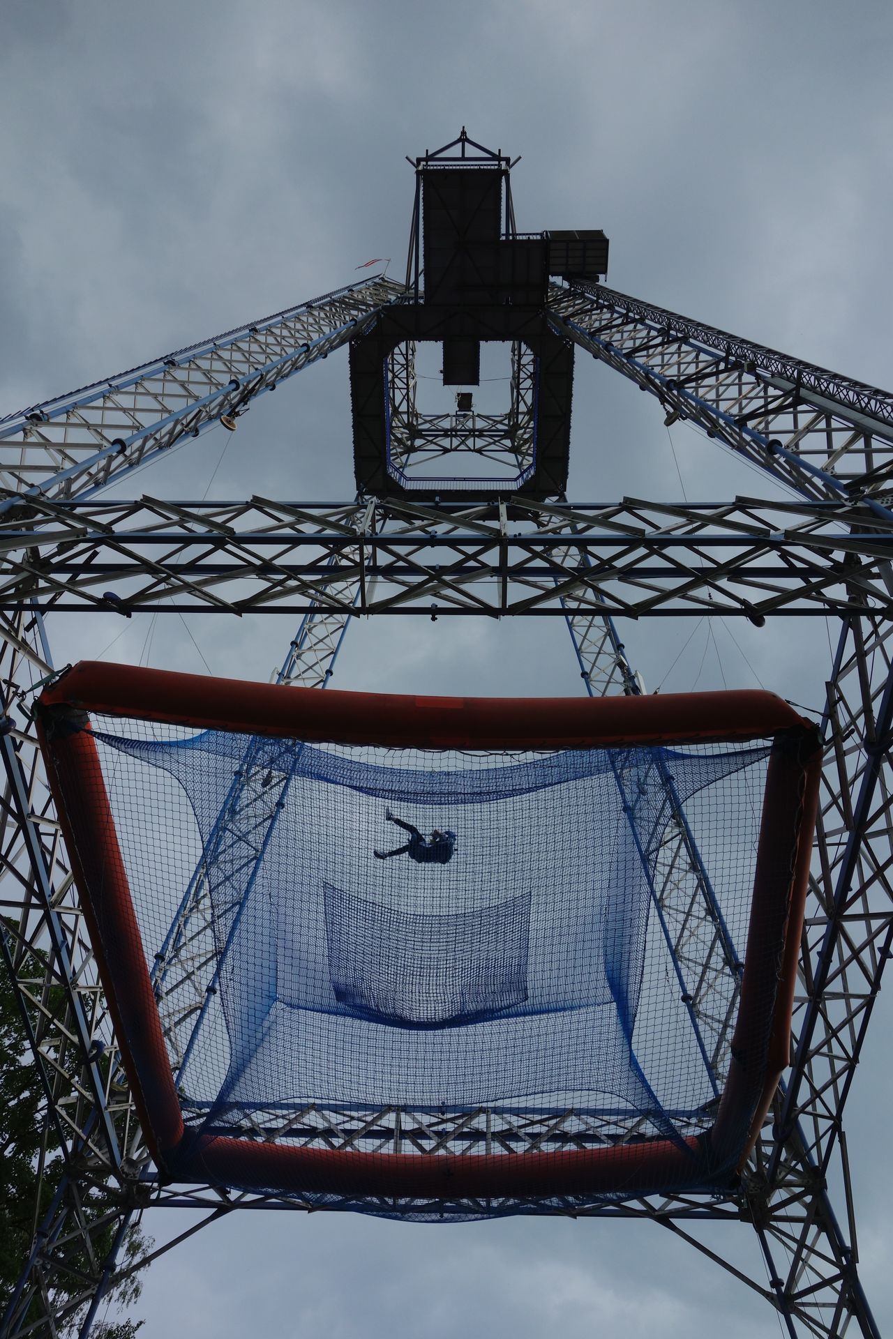 Immer schneller und schneller raste ich gen Boden, der Fall kam mir beinahe unendlich vor. Da kann jeder hundsgewöhnliche Freifallturm einpacken, auch wenn er noch so hoch ist. Mit einem leichten "Batch" landete ich schließlich im Netz und wurde sanft aber bestimmt gebremst. Dann senkte es sich zu Boden, bis man wieder auf eben jenem angelangt war und erstmal realisieren musste, was da gerade passiert war.