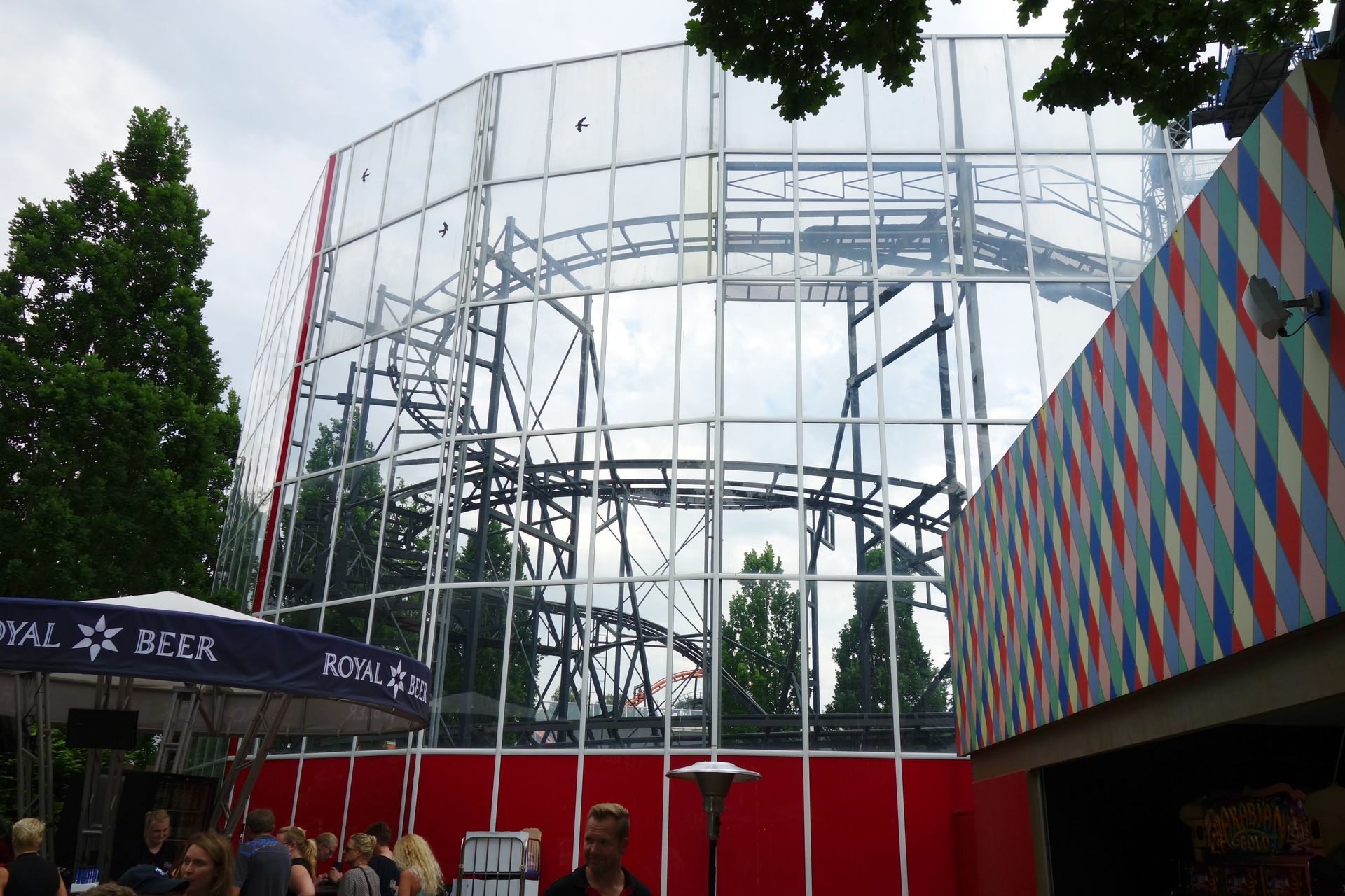Die Glasfassade hier ist aber vermutlich nur zur Anpassung an die übrigen Achterbahnen entstanden.