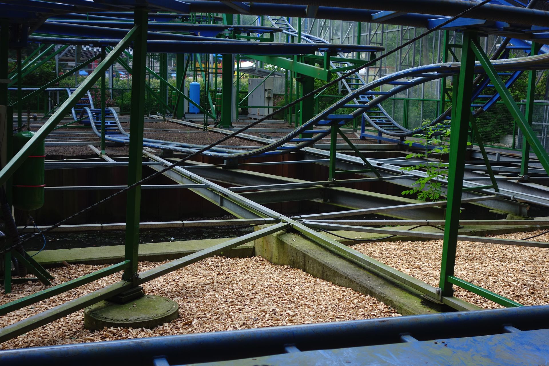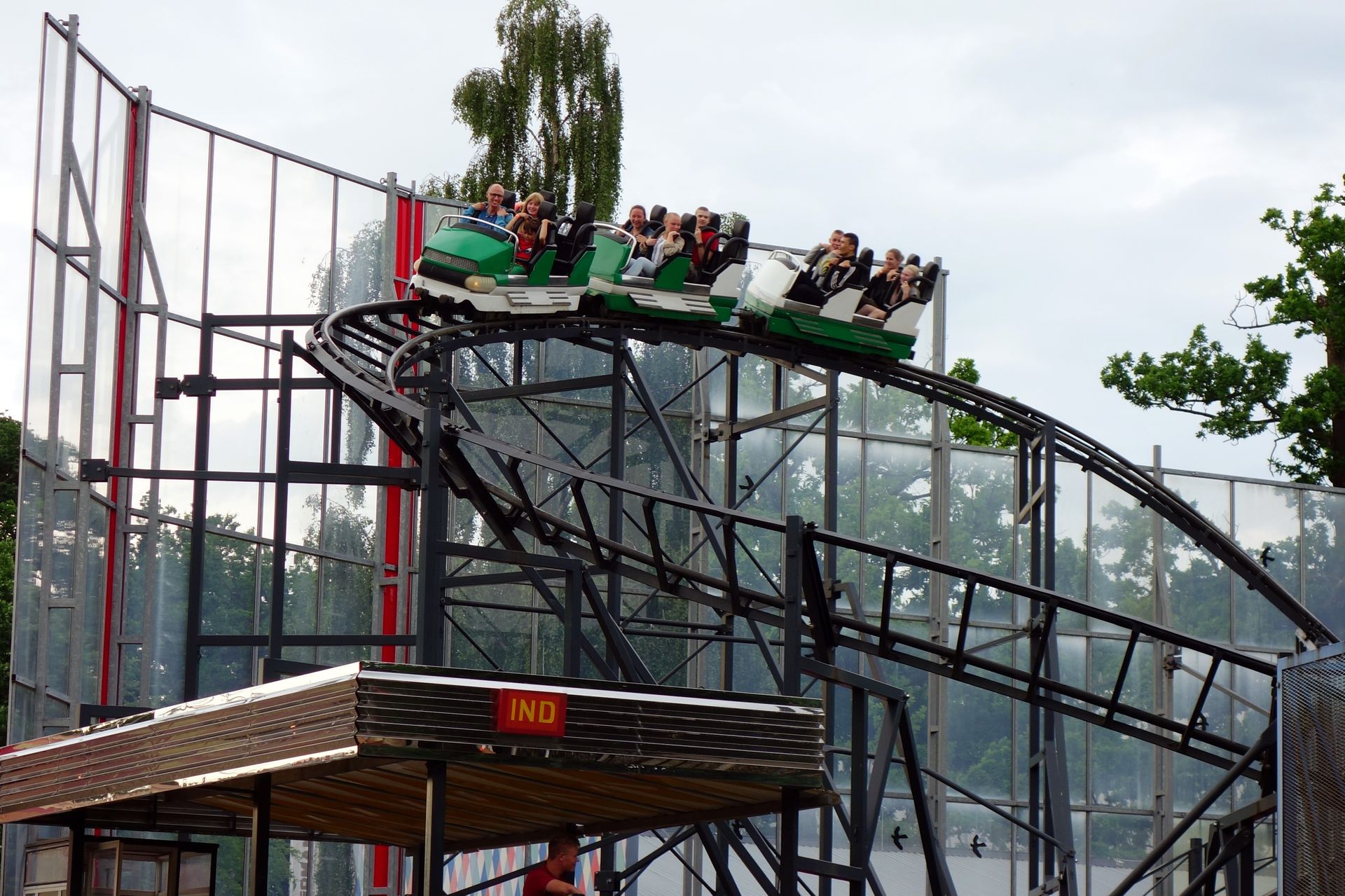Und wie alle Achterbahnen verbirgt sich auch dieses Modell hinter einer großen Glaswand zum Lärmschutz für die Nachbarn.