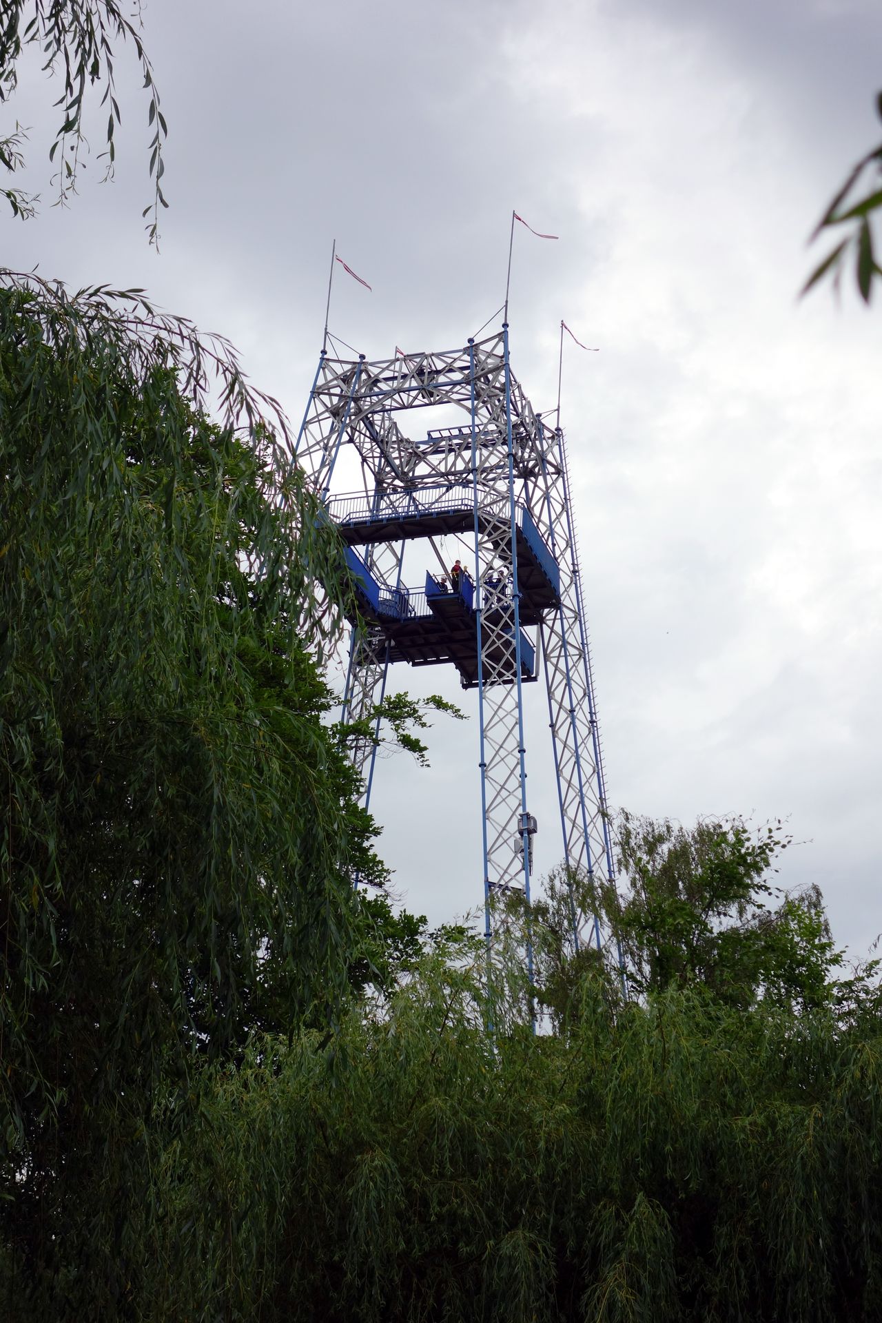 Nicolas wollte sich diese Besonderheit als Highlight für den Schluss aufsparen, sodass wir uns abermals trennten. Glück hatten wir dann als wir am Turm ankamen, denn ein paar andere Onrider wurden gerade vorbereitet und als wir sagten, dass wir dazu gehörten, ließ man uns schnell noch dazu. Doch was soll an diesem 50 Meter hohen Stahlgebilde nun so besonders sein?