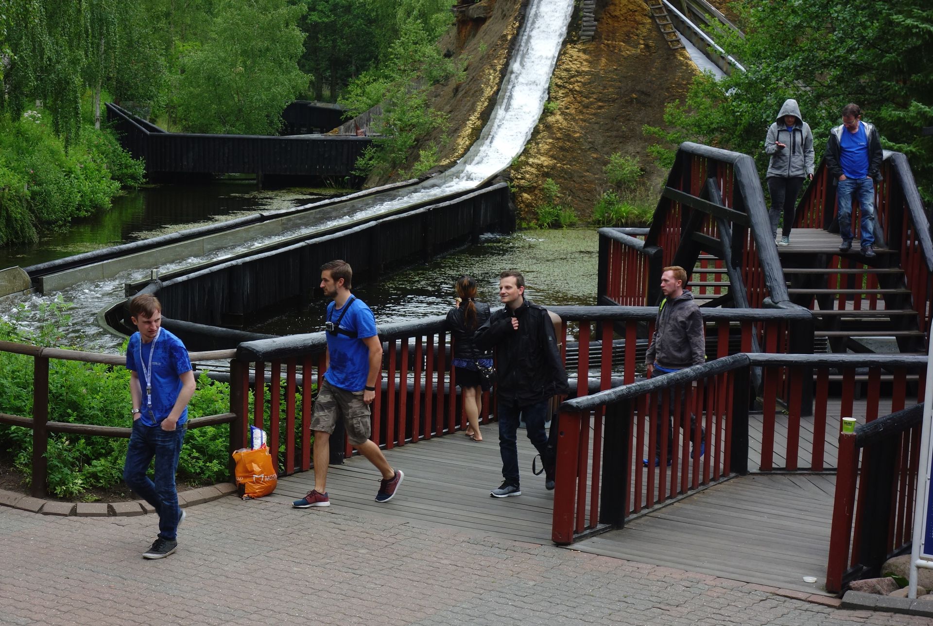 Während die Gruppe nun zu Wiederholungsfahrten auf Juvelen und Piraten aufbrechen wollte, kapselte ich mich dann doch nochmals ab und steuerte alleine den Wasserpark an. Aber nicht um ins Wasser zu gehen. Ich war den ganzen Tag schon nicht richtig auf der Höhe und in Kombination mit dem wechselhaften Wetter fühlte ich mich ziemlich platt. Daher wollte ich die wärmenden Sonnenstrahlen am Nachmittag nutzen, um mich auf einer der Liegen etwas auszuruhen. Das tat auch richtig gut, sodass ich erst wieder aufstand, als um mich herum bereits mit dem Aufräumen begonnen wurde. Deutlich fitter konnte ich dann auch direkt zum Treffpunkt für die abendliche Abschluss-ERT schlendern, wo nach und nach auch die übrigen Onrider eintrudelten.