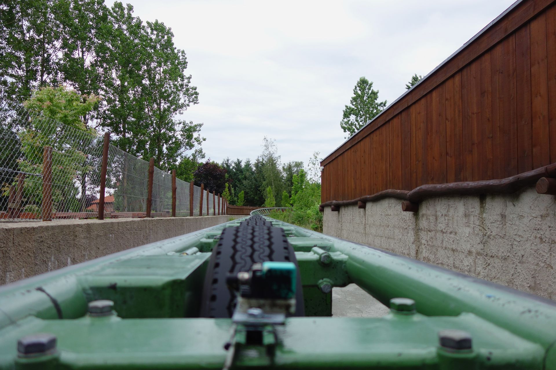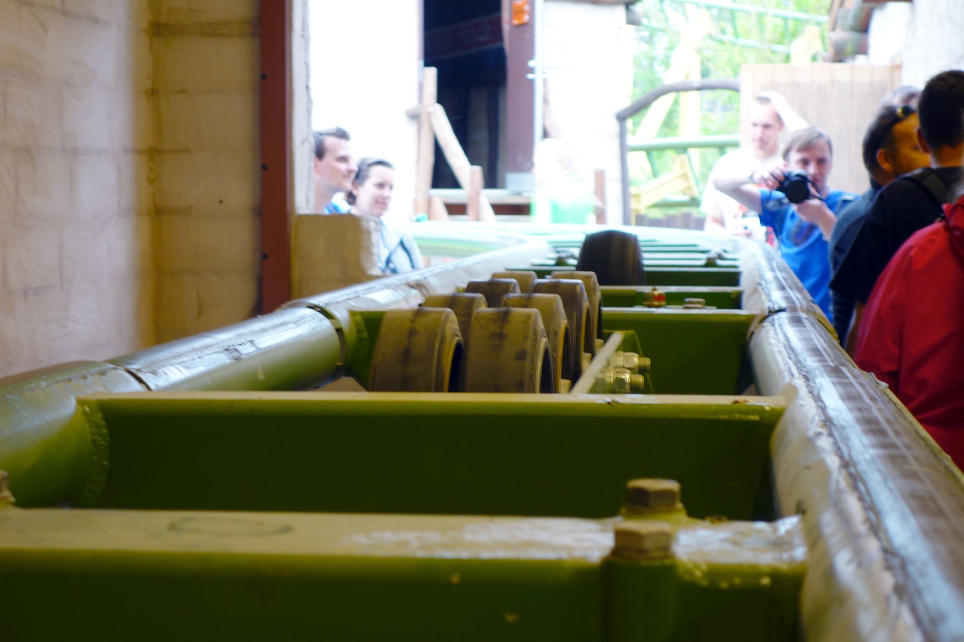 Erbaut wurde das Rafting 1998, über den Hersteller hatten wir uns vor Ort allerdings den Kopf zerbrochen. So sehr, dass Alex einfach mal beim Bediener nachfragte, der sogar extra die Handbücher raussuchte. Dort fand sich allerdings auch kein Hinweis auf den Hersteller. Die Jungs von Goggel haben uns inzwischen aber die gewünschte Info herausgesucht und verraten, dass es sich um eine Anlage von Interlink handelt. Die Strecke verläuft über 500 Meter relativ unspektakulär durch den Wald, wobei hier und da auch mal unerwartete Wassereinbrüche stattfinden können (die Abflüsse im Boden funktionieren nicht immer nur in eine Richtung