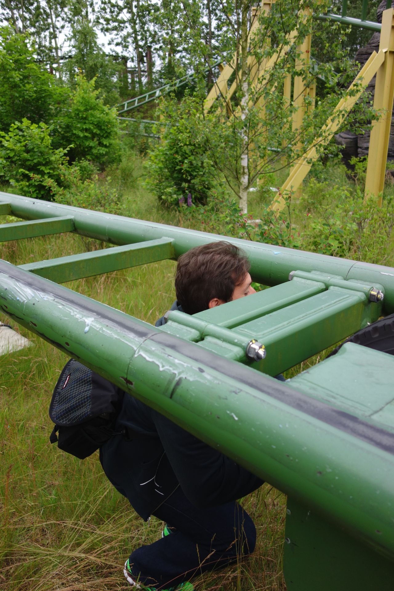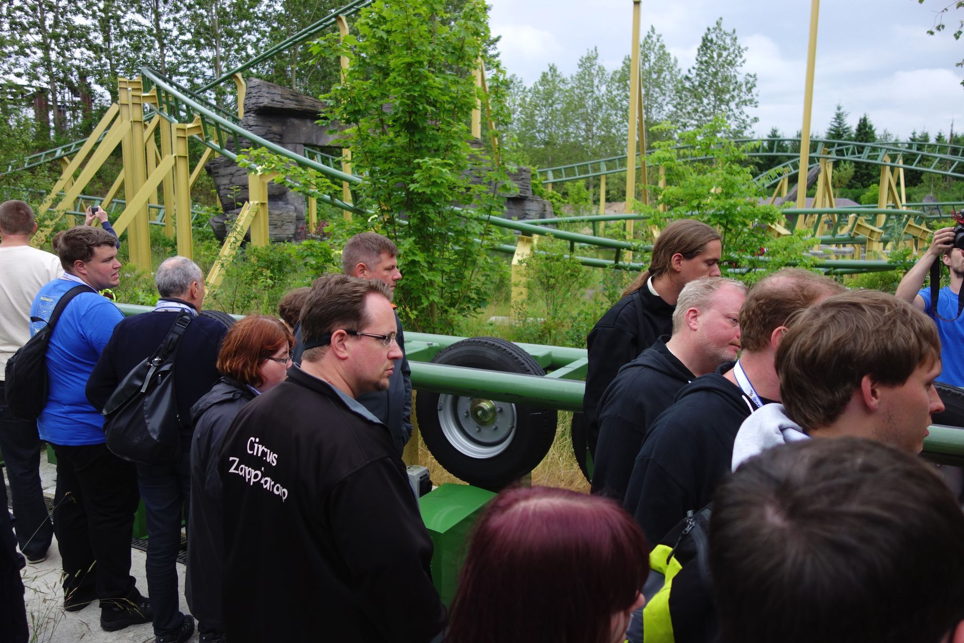 Und den Wartebereich der 2008 eröffneten Achterbahn geentert.