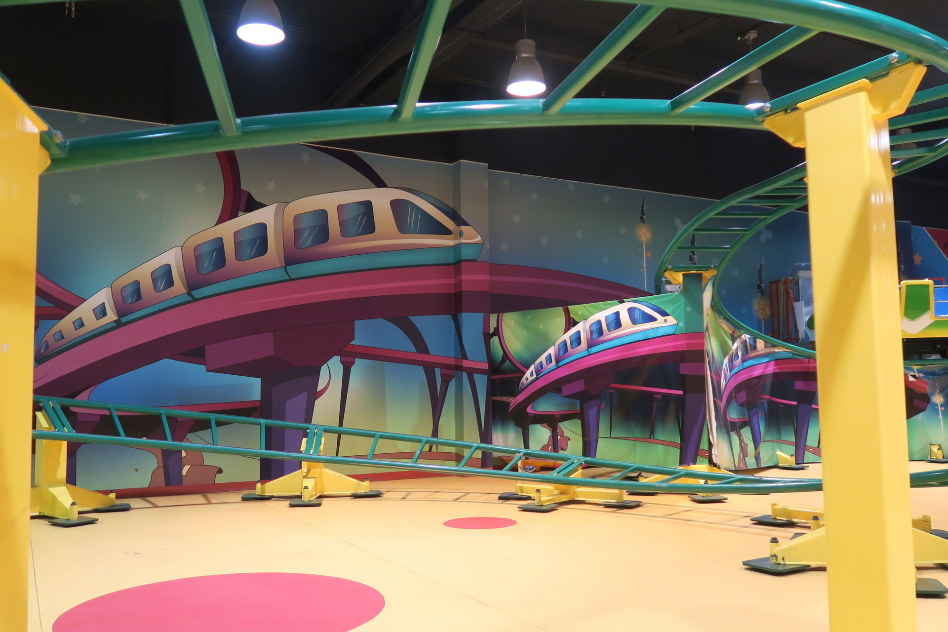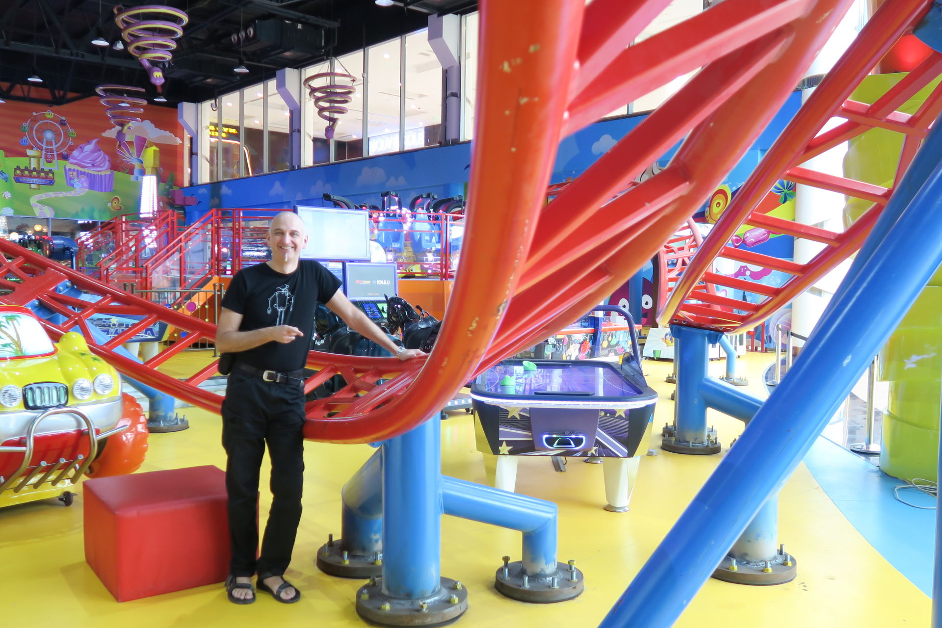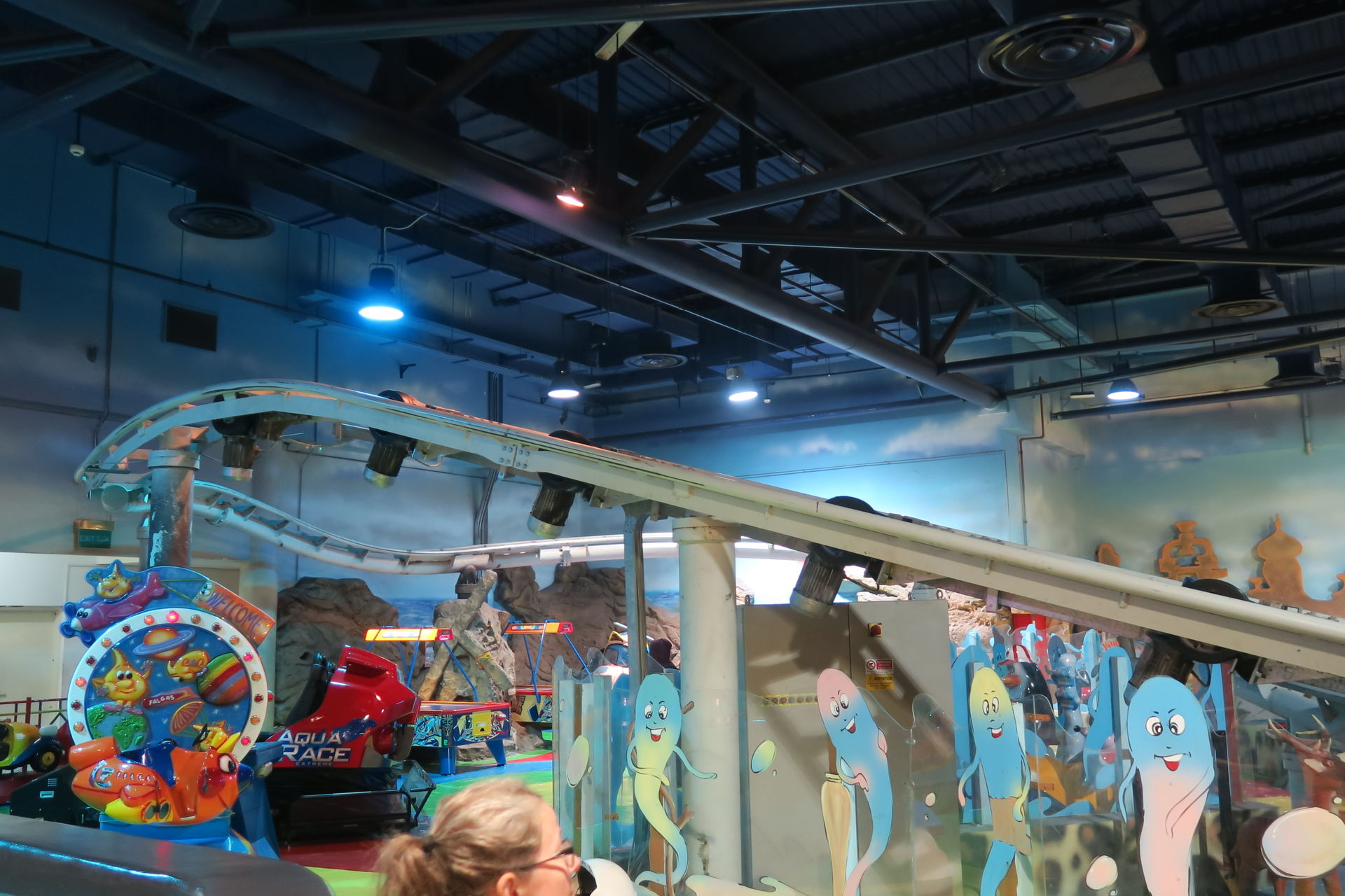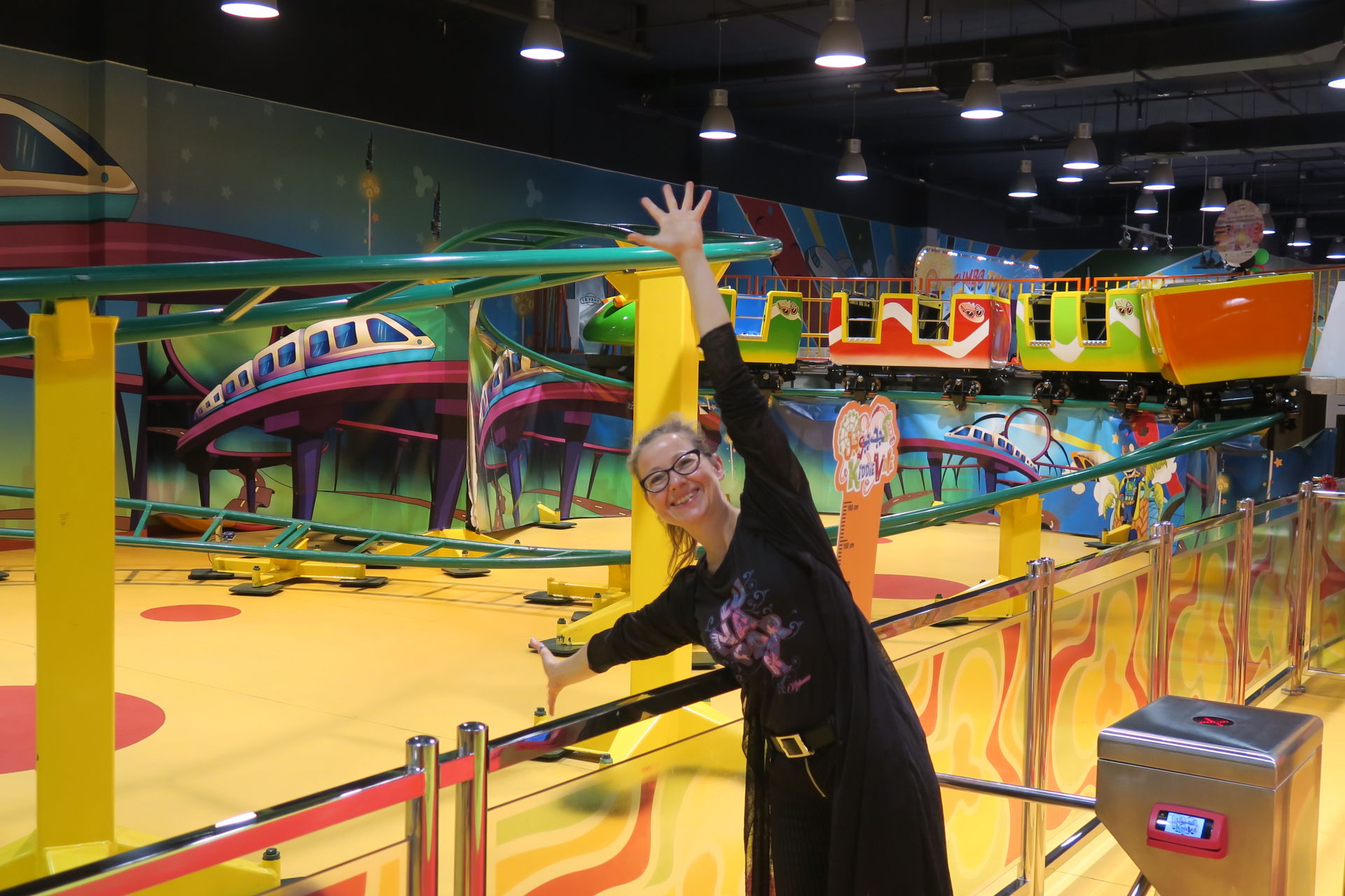 Mall Nummer zwei ist die Etihad Mall, die wir gestern aufgrund eines dicken Staus auf dem maßlos überfüllten Parkplatz doch nicht besucht haben. Sie hält eine Riesenüberraschung für uns parat. Im Kiddieville glänzt ein kleiner I.E. Park Rolly in seiner stylisch-spacigen Dekoration wie frisch aus dem Katalog geschlüpft.