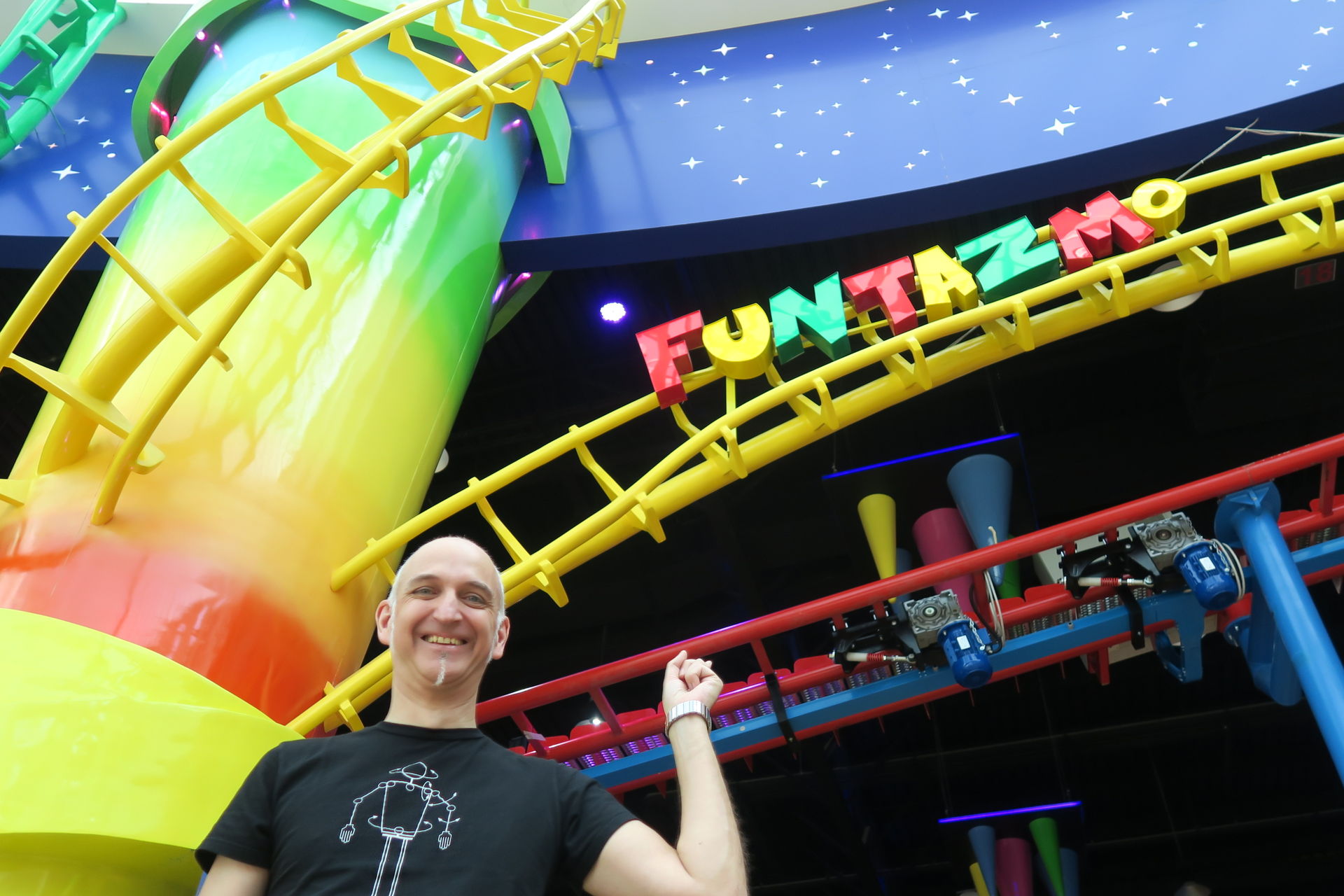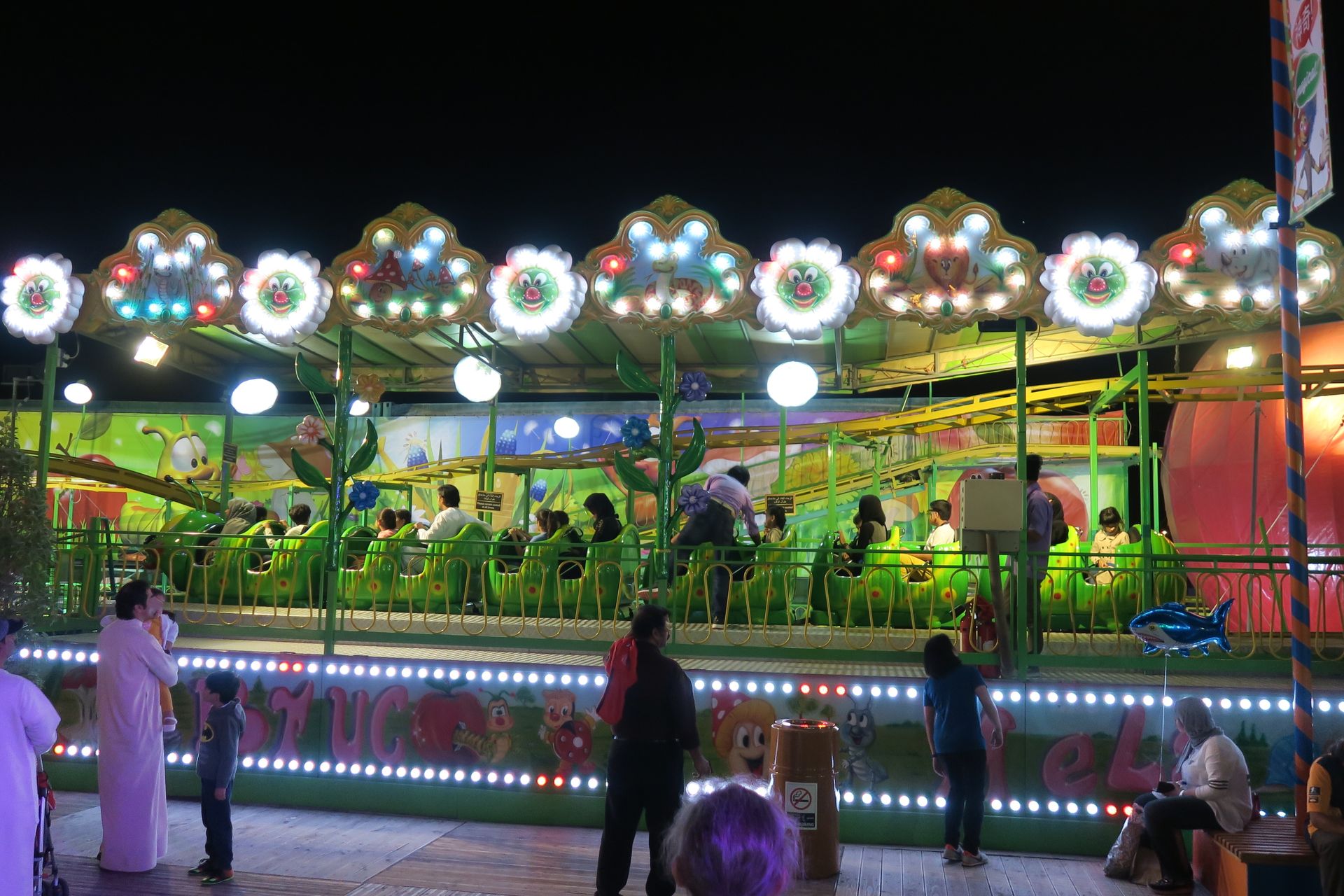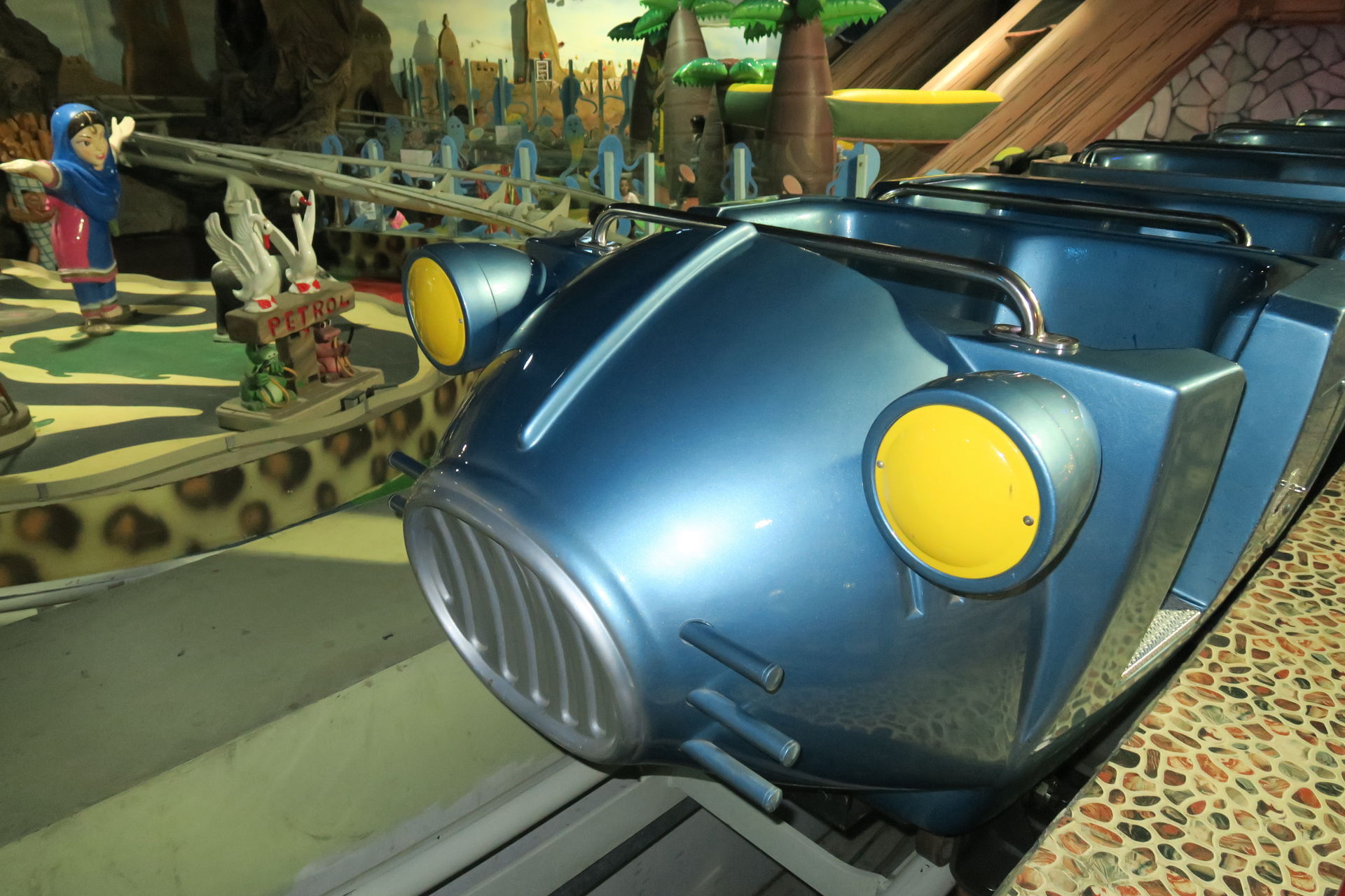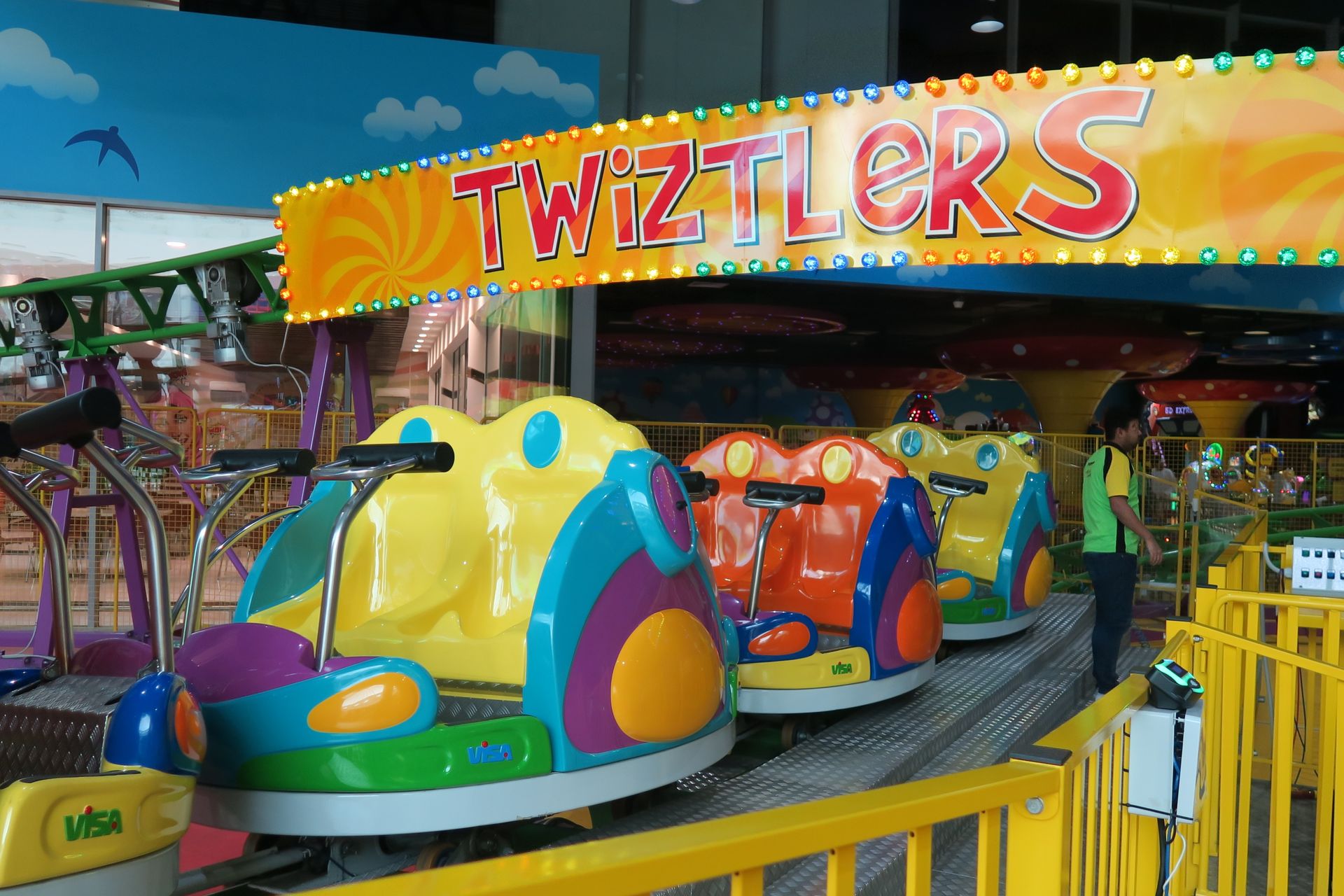Mall Nummer zwei ist die Etihad Mall, die wir gestern aufgrund eines dicken Staus auf dem maßlos überfüllten Parkplatz doch nicht besucht haben. Sie hält eine Riesenüberraschung für uns parat. Im Kiddieville glänzt ein kleiner I.E. Park Rolly in seiner stylisch-spacigen Dekoration wie frisch aus dem Katalog geschlüpft.