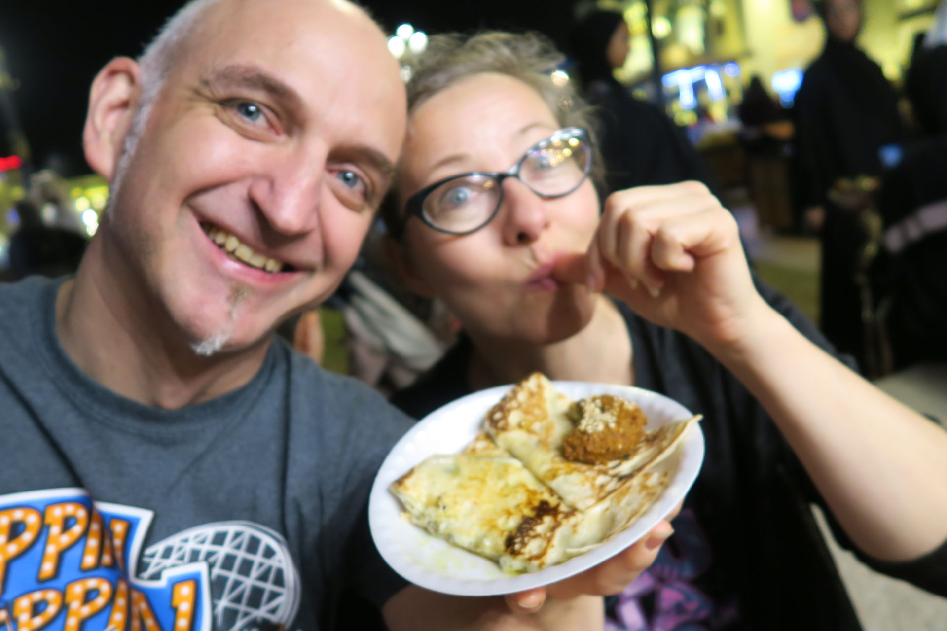 Kurz vor dem Abschied bleiben wir, da appetitliche und aufdringliche Gewürzaromen unsere Geruchsrezeptoren kitzeln, an einem unscheinbaren kleinen Stand hängen und bestellen Flafil mit Zaatar und Cheese
