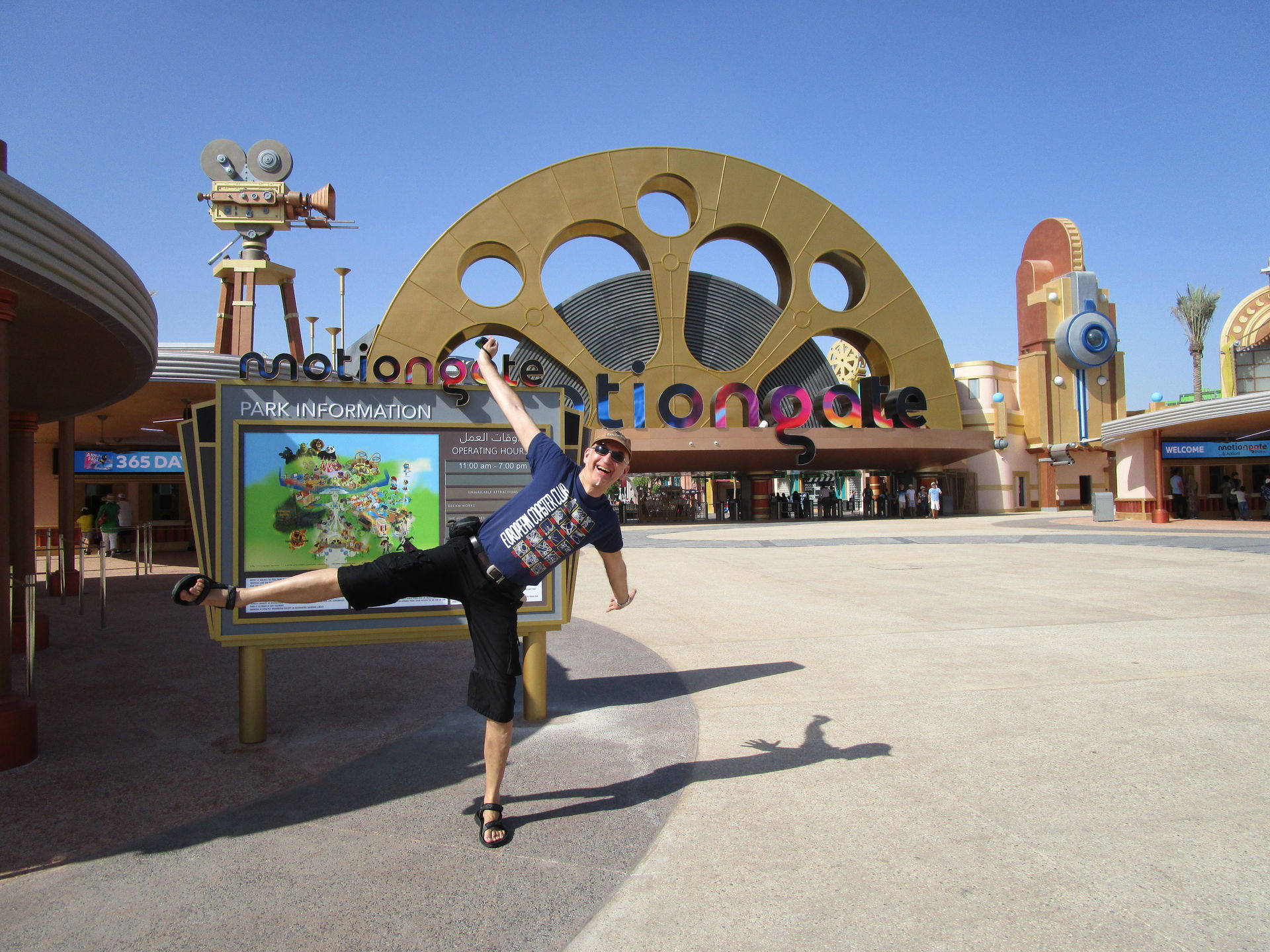 Lost Kingdom Adventure Shooter hat geöffnet. Da wir beide begeisterte Anhänger unpazifistisch angehauchter Fahrgeschäfte sind, ballern wir uns noch schnell durch die ägyptische Kulisse, bevor wir uns den weiteren Weg durch das Miniland zwecks fotografischer Archivierung der Architektur bahnen und dann zu Fuß Richtung Motiongate ziehen.
