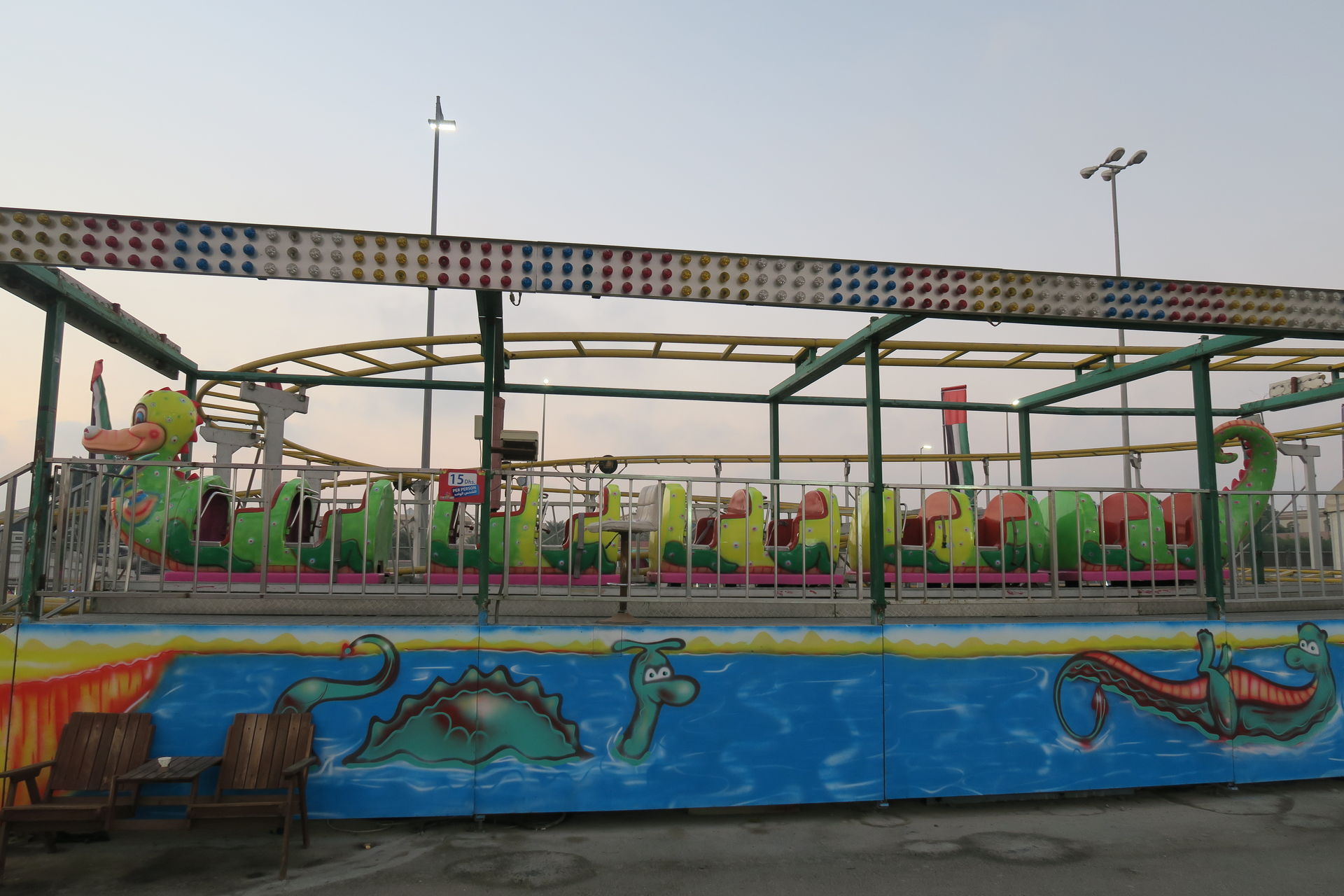 Direkt vor der Al Ghurair Mall müssen wir mindestens 16 Runden auf dem Mini Dragon aushalten, ...