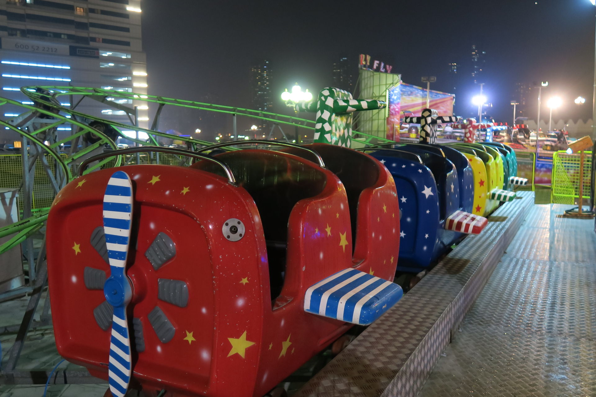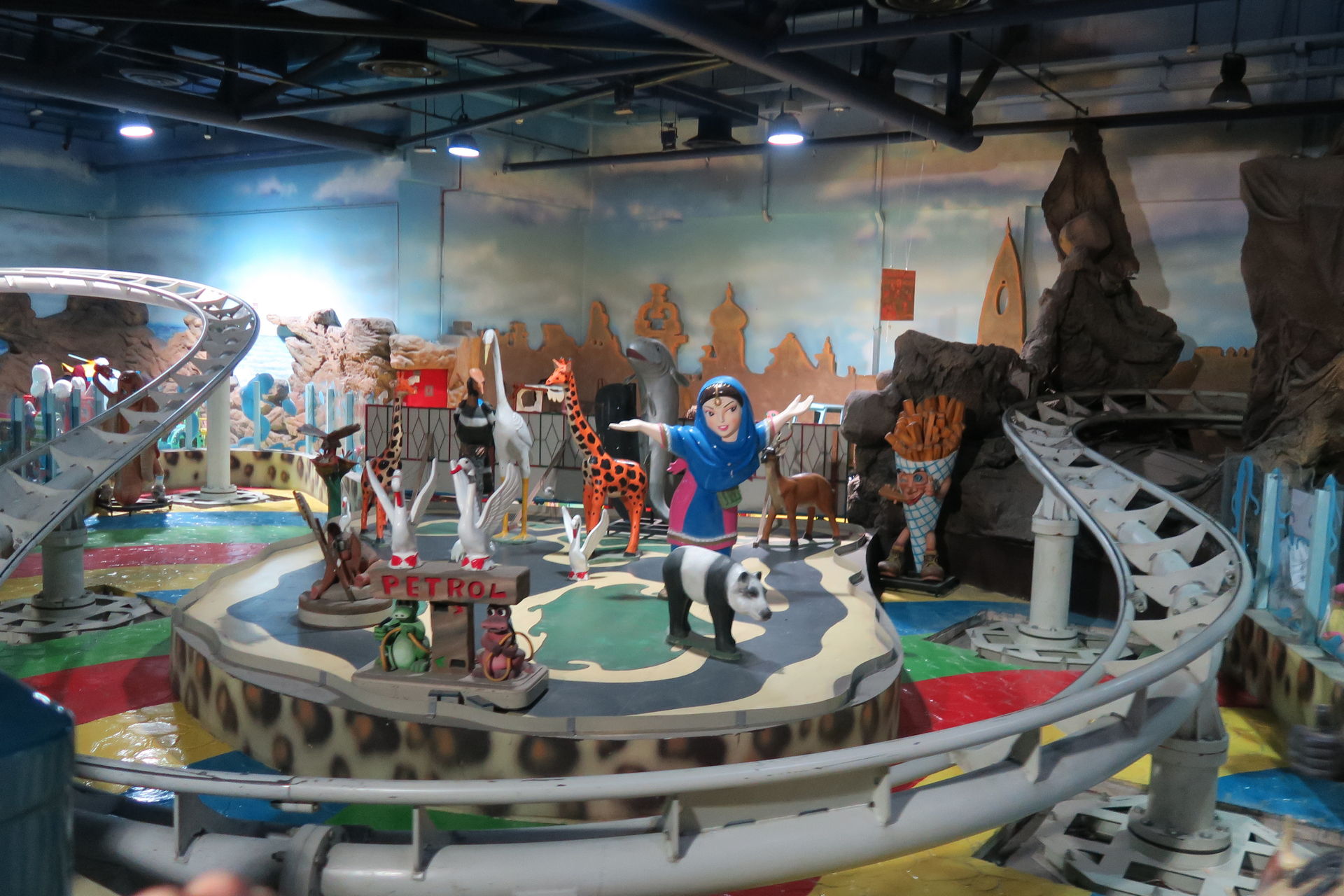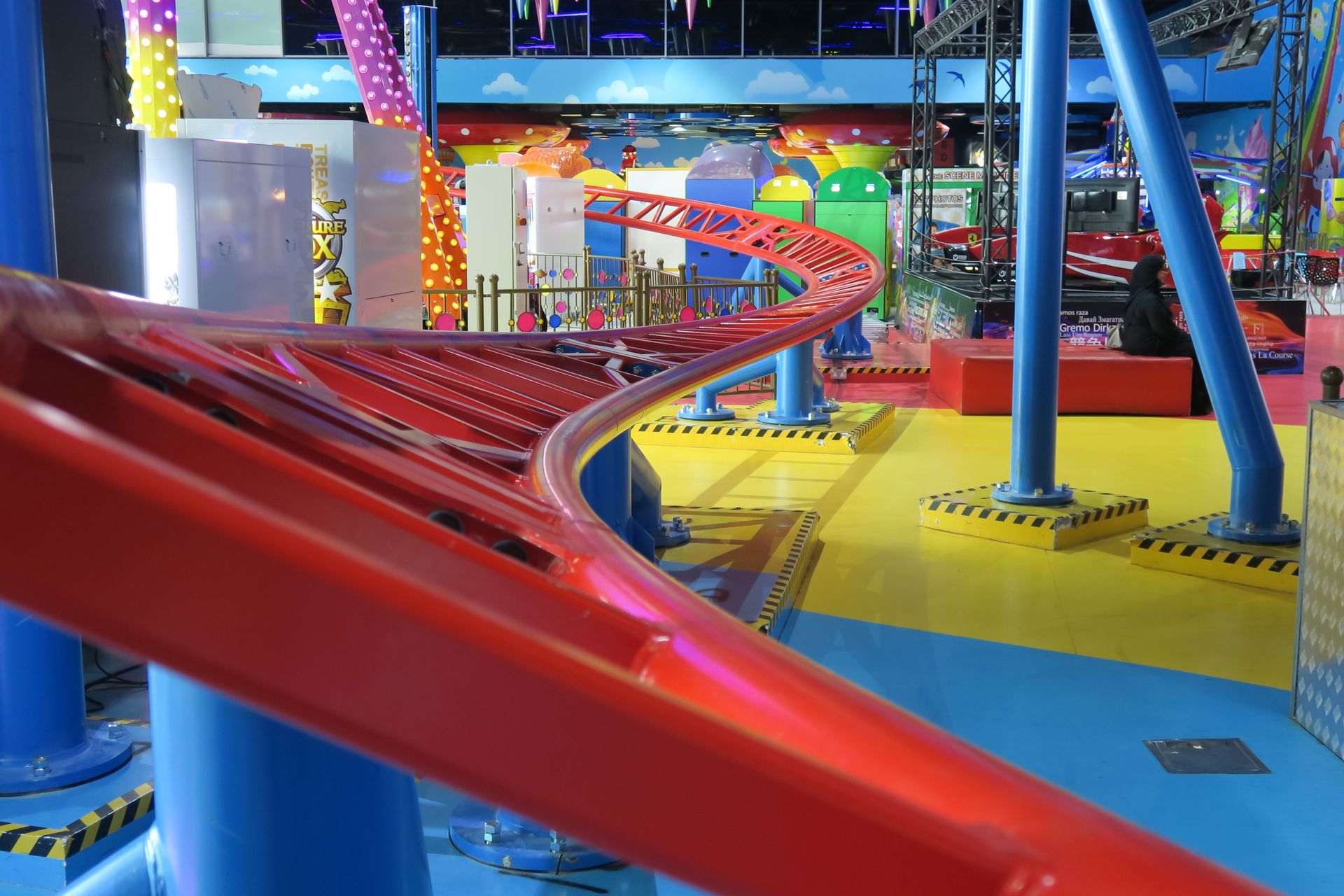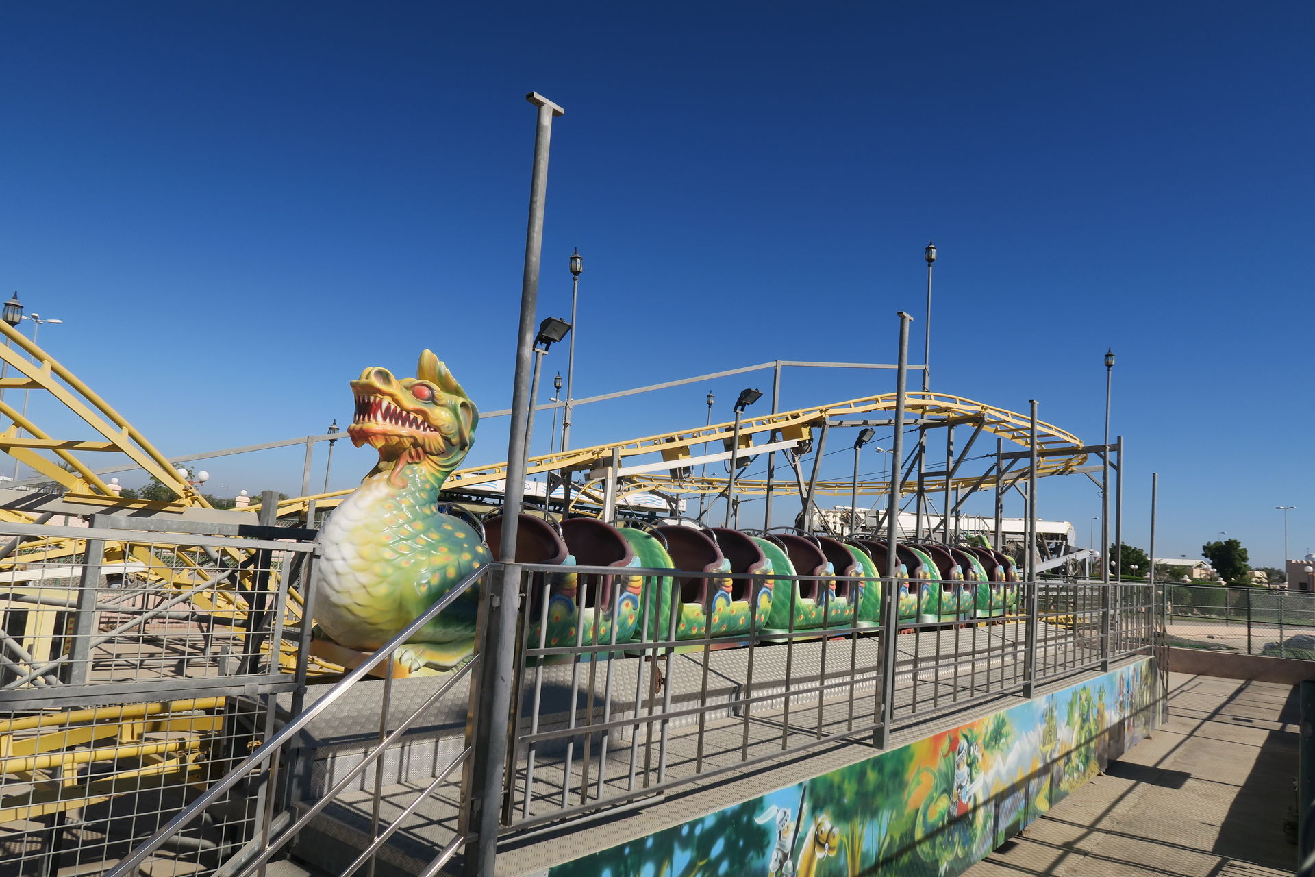 Auf dem Außenplatz, auf dem sich letztes Jahr noch Kirmesgeschäfte und zwei Achterbahnen von Freij drehten, gibt es neuerdings nur noch aufblasbare Kinderrutschen. Das Fabyland im zweiten Stock der Dubai Festival Mall ist zwar sehr reich an Attraktionen, aber leider komplett coasterlos.