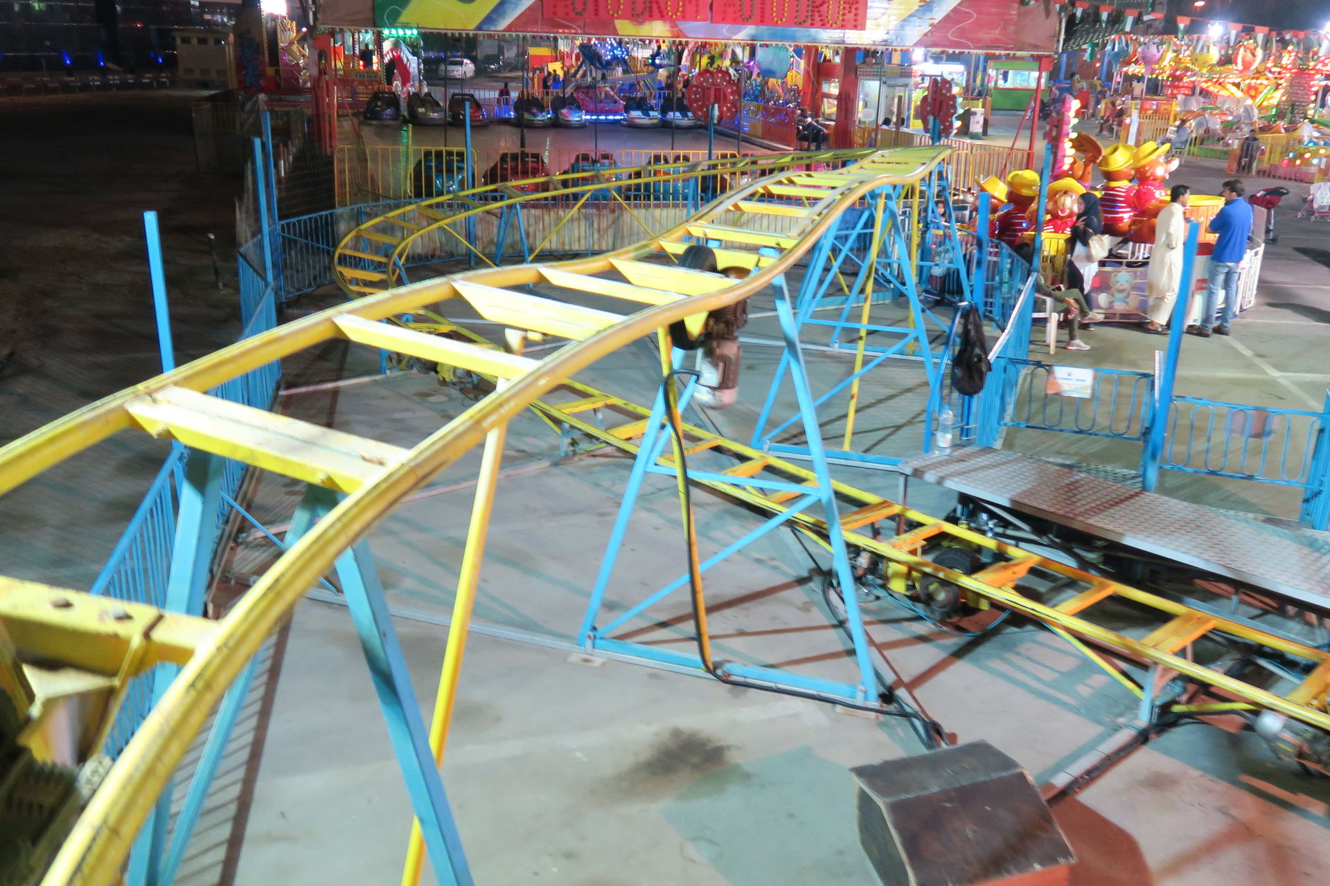 In der hinteren Ecke des Kirmesplatzes steht noch ein kleineres Gerät aus dem Hause Top Fun. Der überaus nette Ride Op kann uns auf die Frage, ob seine Achterbahn auch einen Namen hätte, nur auf Arabisch