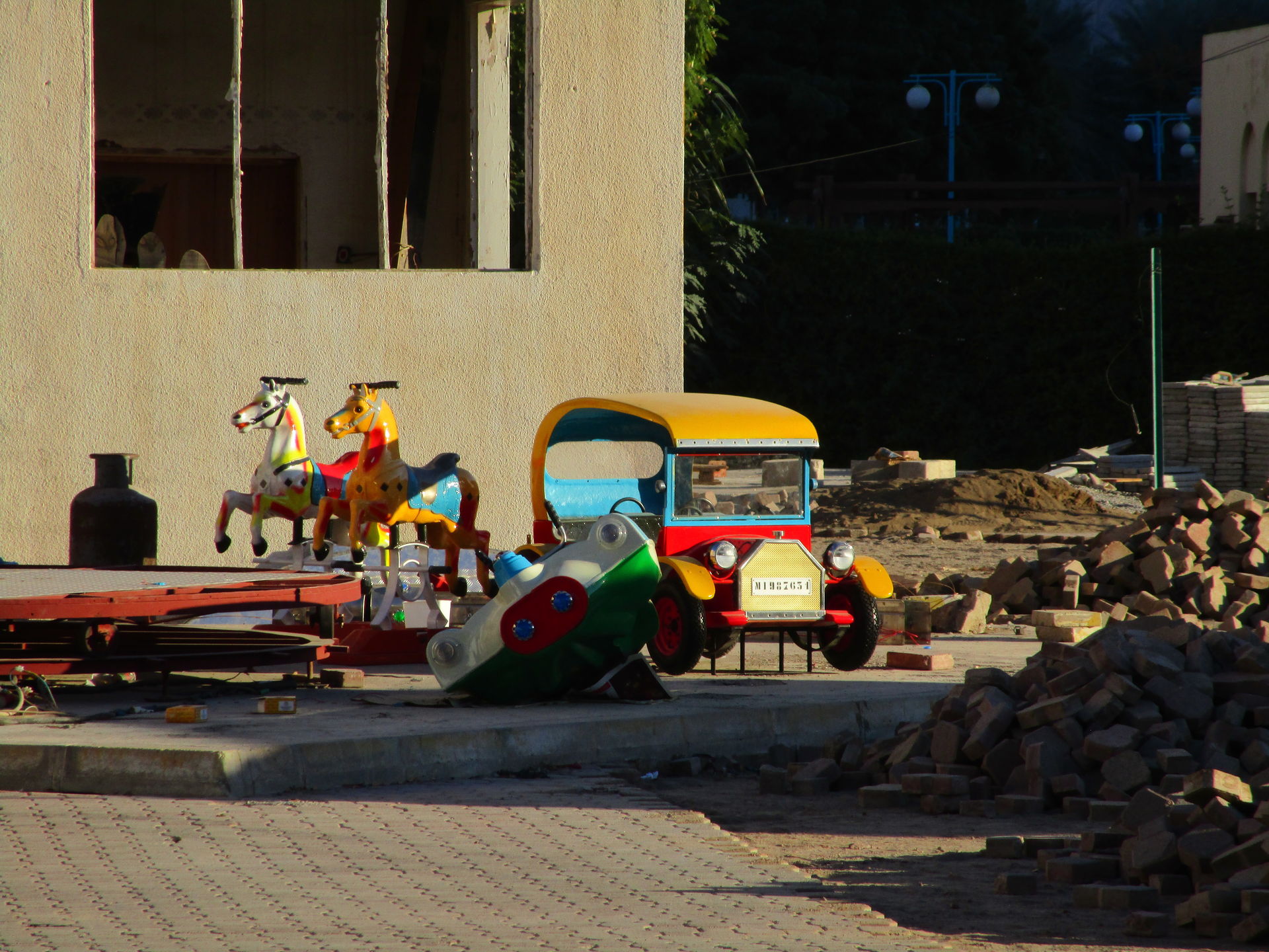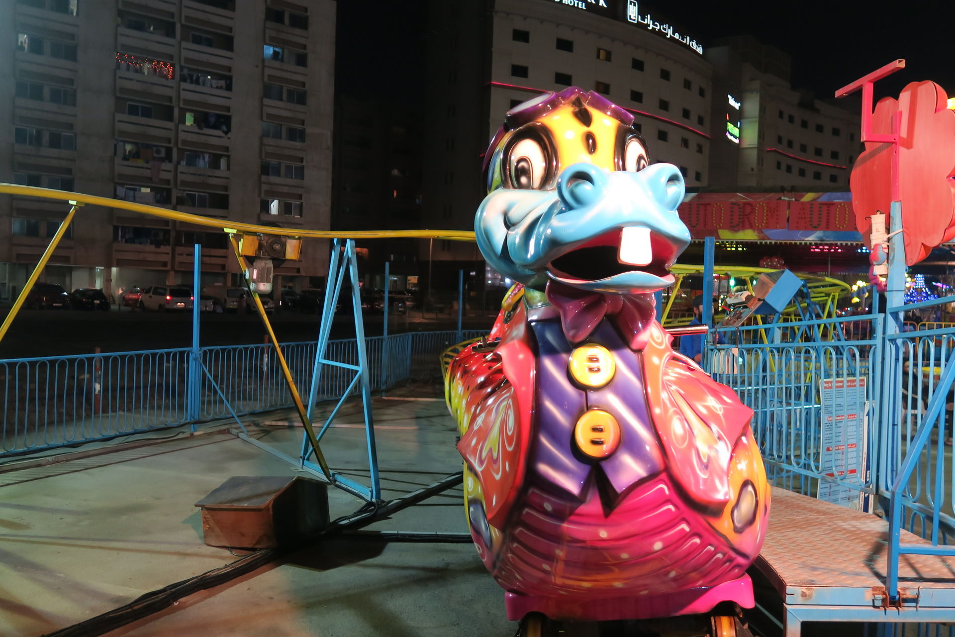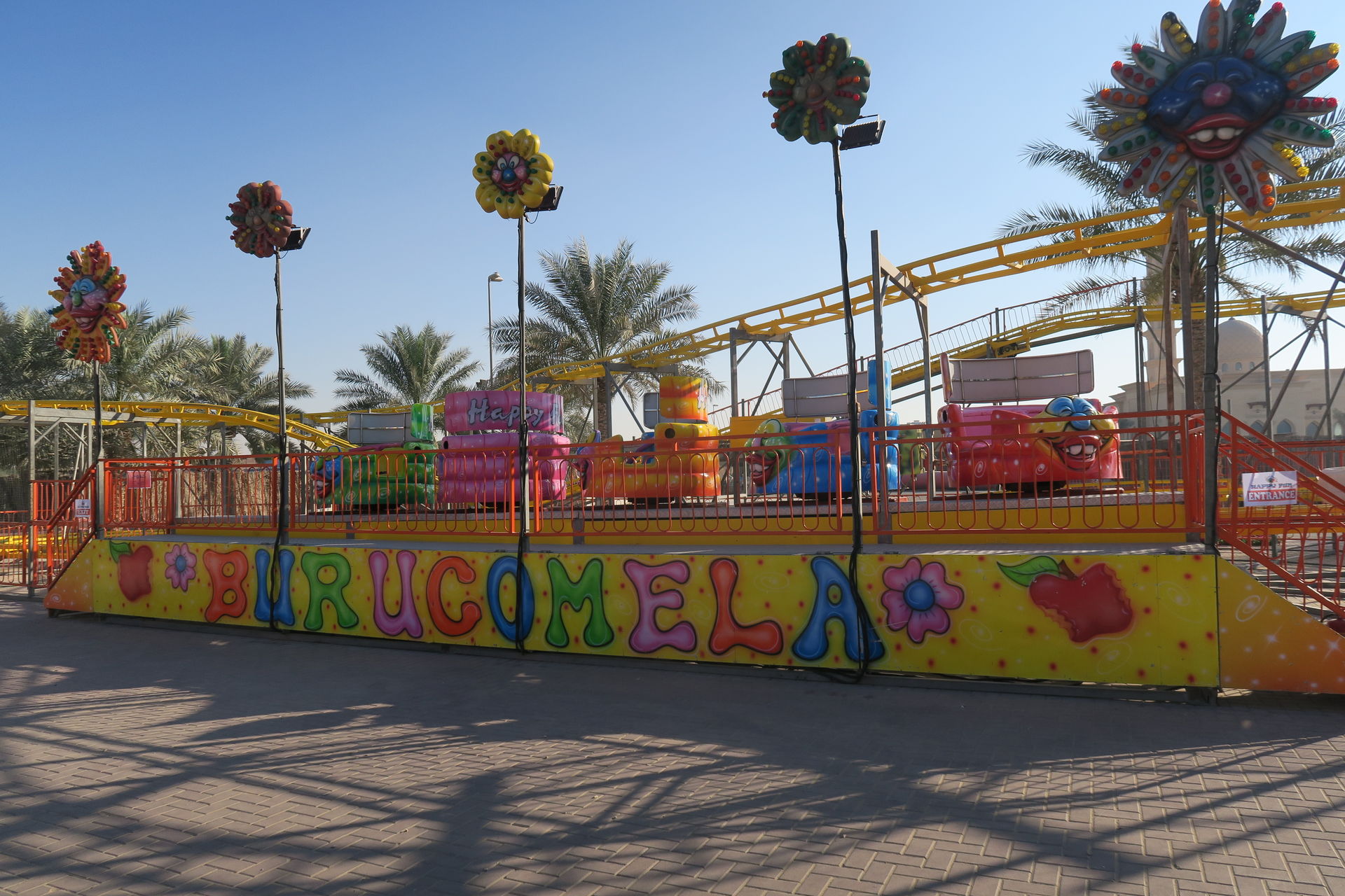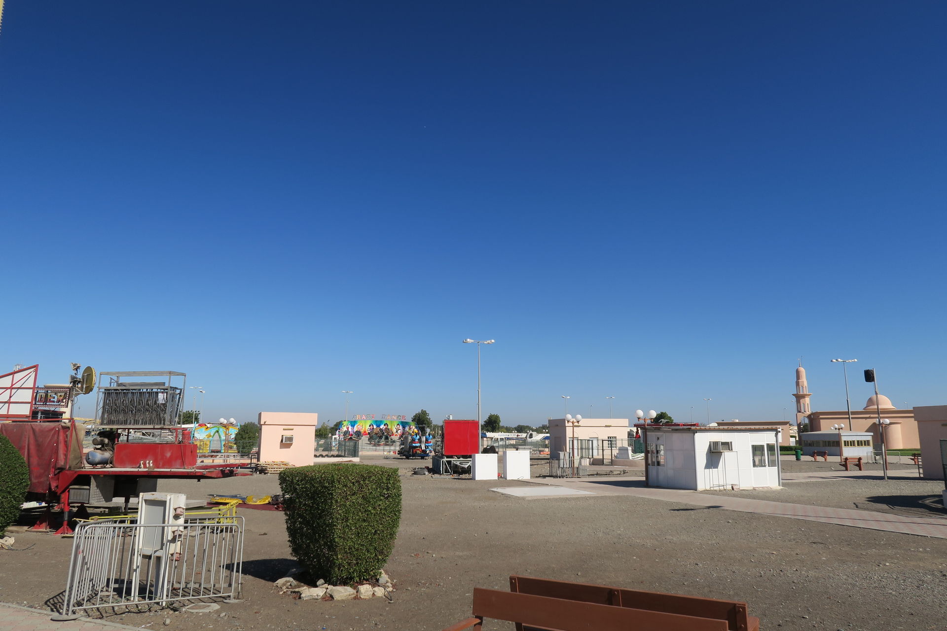Homepage Happy Funs, einem Schausteller aus den VAE, stammen. Ein Flughafenparkplatz direkt hinter einer Moschee ist so ziemlich der letzte Ort, wo ich eine Kirmes oder ähnliche Veranstaltung vermuten würde. Trotzdem überzeugen wir uns vor Ort und behalten blöderweise Recht. Hier is' nix!