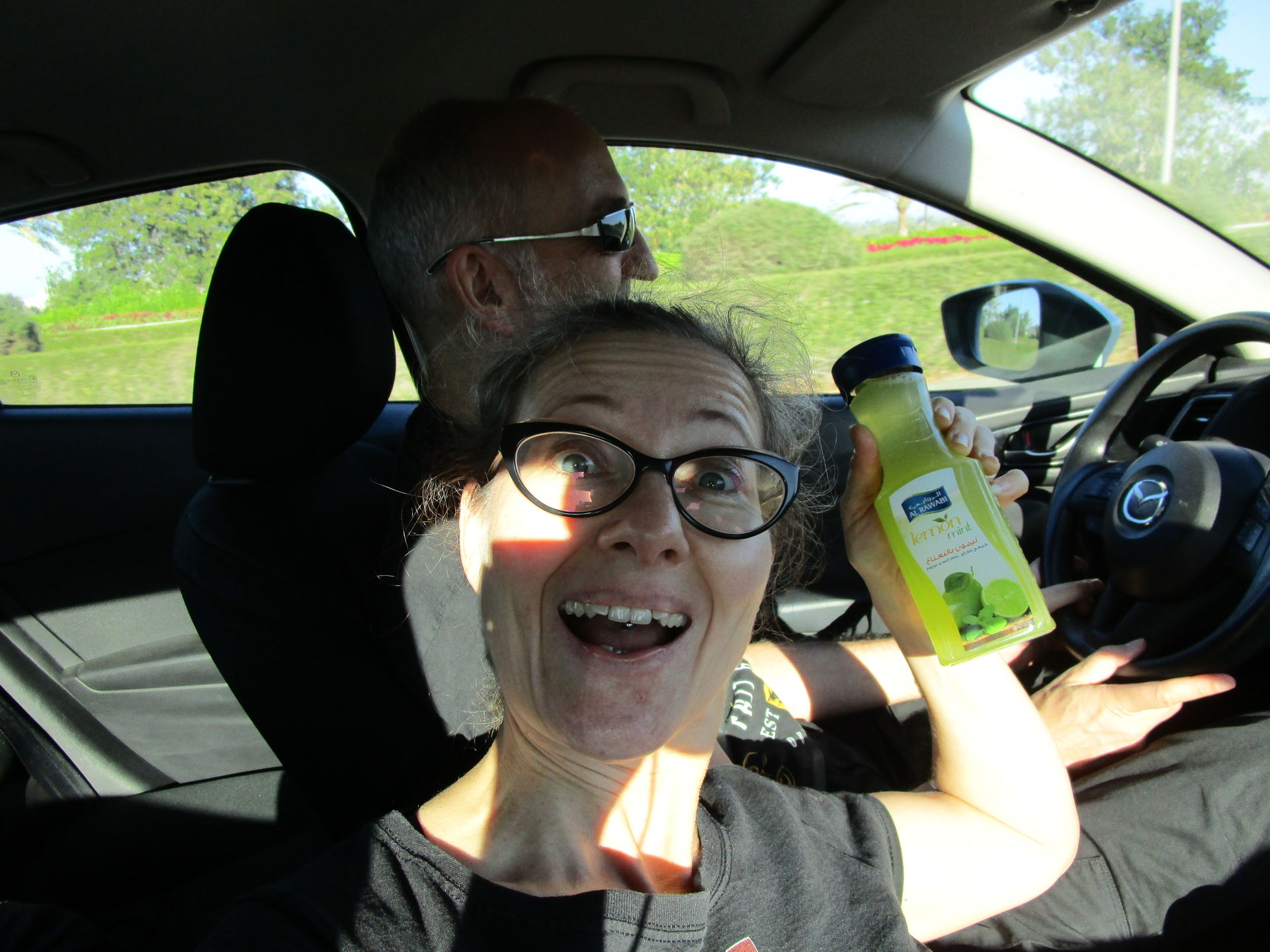 Um 6:15 Uhr Ortszeit landen wir planmäßig unausgeschlafen in Dubai. Nach superschneller Immigration durch die elektronischen Gates und Aufpicken unserer reiselustigen grünen Koffer sitzen wir mit einem Red-Velvet-Muffin und warmen Apfelstrudel mit Sahne samt riesigem Latte Macchiato im klimatisiertem Flughafen Café und genießen entspannt das kalorienreiche Frühstück. Zucker ist die einzige Form von Nahrung, die den Körper jetzt auf Touren bringt und erzeugt in der dargebotenen Form entgegen der aktuellen Außentemperaturen fast ein wenig festliche Stimmung. Ungewohnterweise haben wir es mal nicht eilig. Unser reservierter Mietwagen erwartet uns frühestens in einer dreiviertel Stunde!