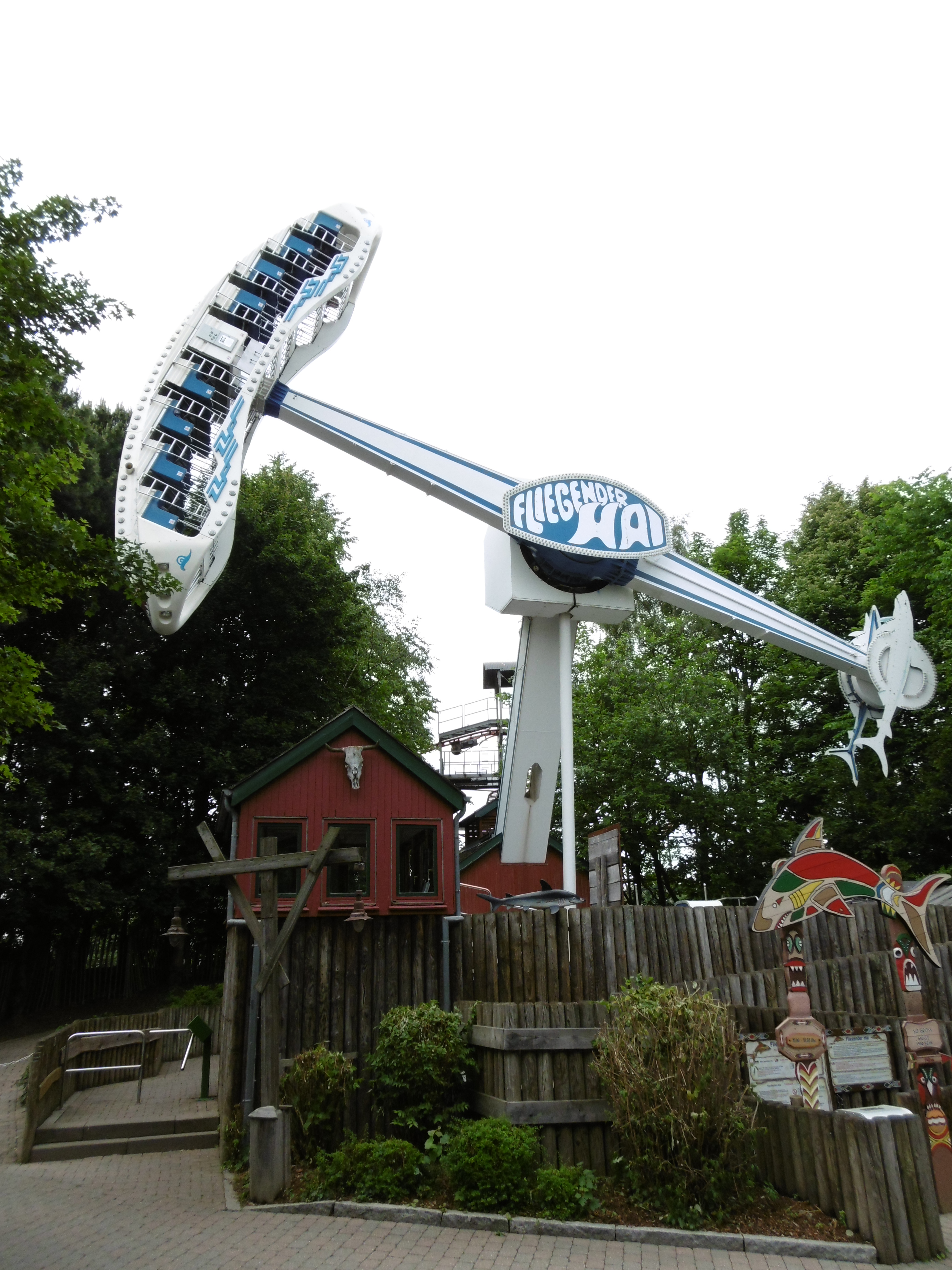 Ich fand beeindruckend wie es der Motor schafft ohne Aufschwung das Gerät zum Überschlag zu bringen. Quasi in einem Käfig Platz genommen wird der Fahrgast aber nur durch einen Beckenbügel gesichert. Nach dem Startschuss wird der Arm auf den Kopf gedreht, der Sitzkontakt nimmt ein weiteres Mal ab und ich bin dankbar für das Polster über meinem Kopf. Wie schon bei Nessie folgt aufgrund der geringen Sicherung eine Hangtime Euphorie die insbesondere bei Alex und mir zu einem fetten Lachflash führte, v.a. während der kurzen Verweilzeit in etwa 20 Metern Höhe. Diese Attraktion geht vermutlich bei vielen aufgrund der großartigen Attraktionsfülle im restlichen Park etwas unter, was jedoch extrem schade ist, da sie nach der Nessie zu meinen Lieblingen im Park gehört (steinigt mich). Ein Jammer, dass es von diesen Huss Ranchern nur noch wenige Exemplare gibt.