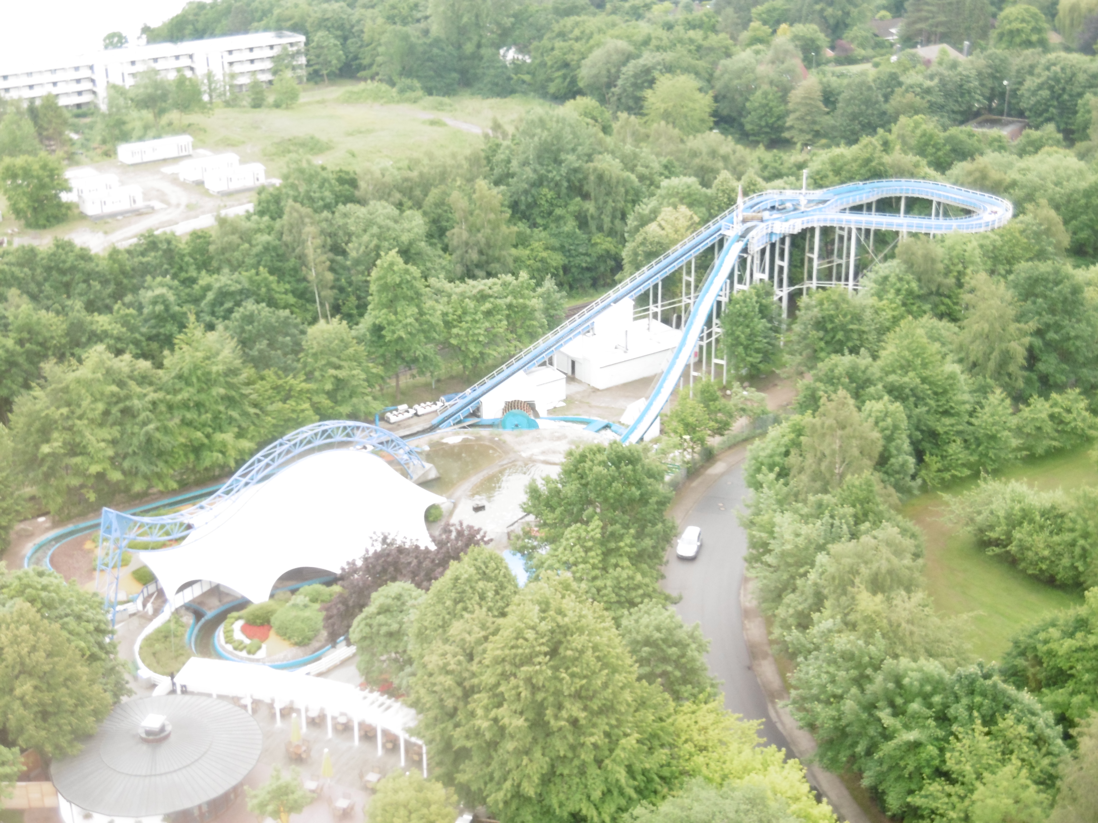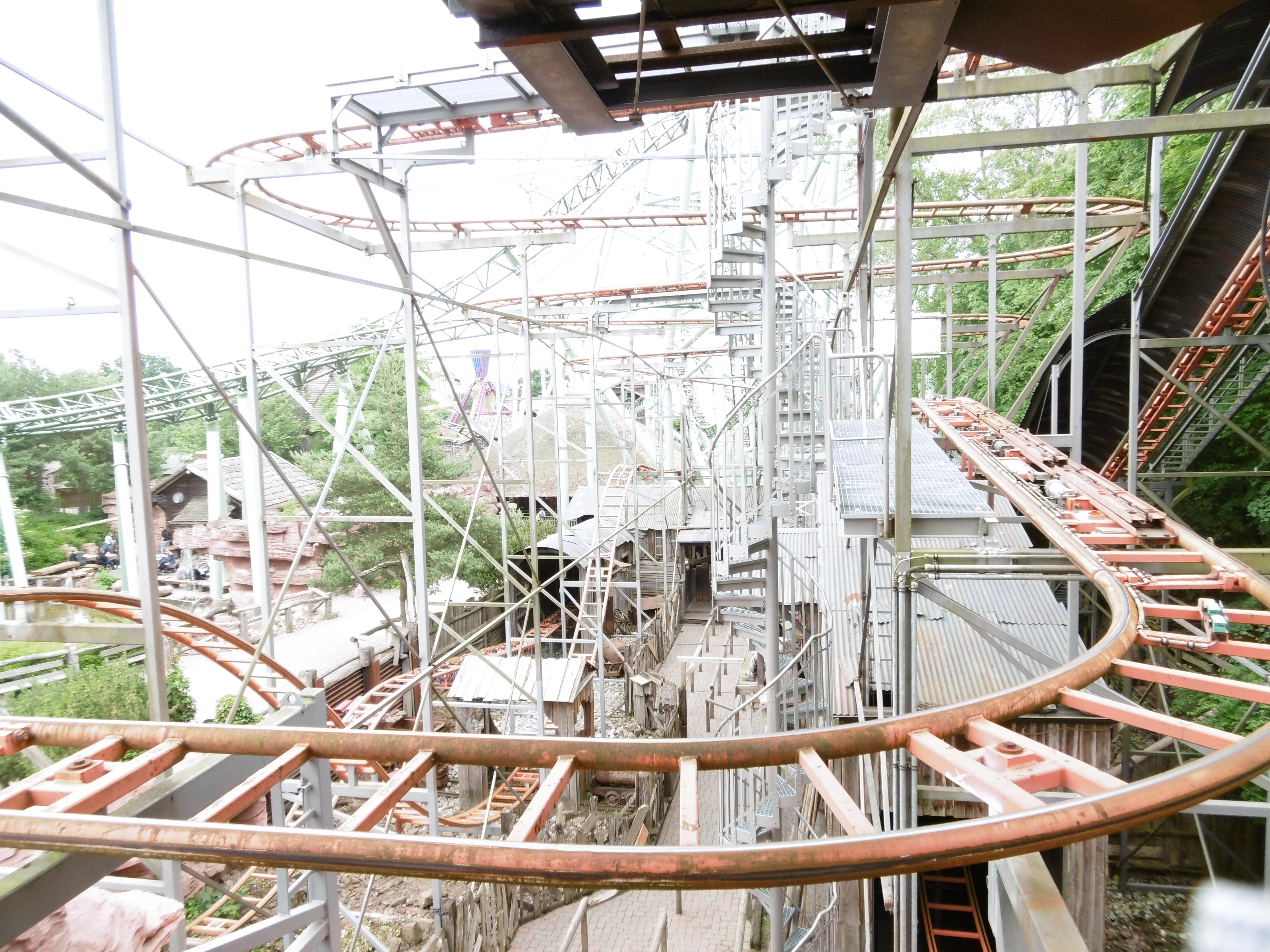 Zunächst ging es vorbei am damals fast fertigen Wellenflieger zu einer Fahrt mit dem Fluch und von dort zum Kärnan, wo wir mit einigen weiteren Onridern noch die eine oder andere Fahrt unternahmen. Nachdem uns das Lotto eine hintere Reihe erbrachte, erblickte ich in der 1. Reihe auf dem linken Außenplatz einen freien Platz. So ließ ich mir noch ein letztes Mal die Augen trocknen.