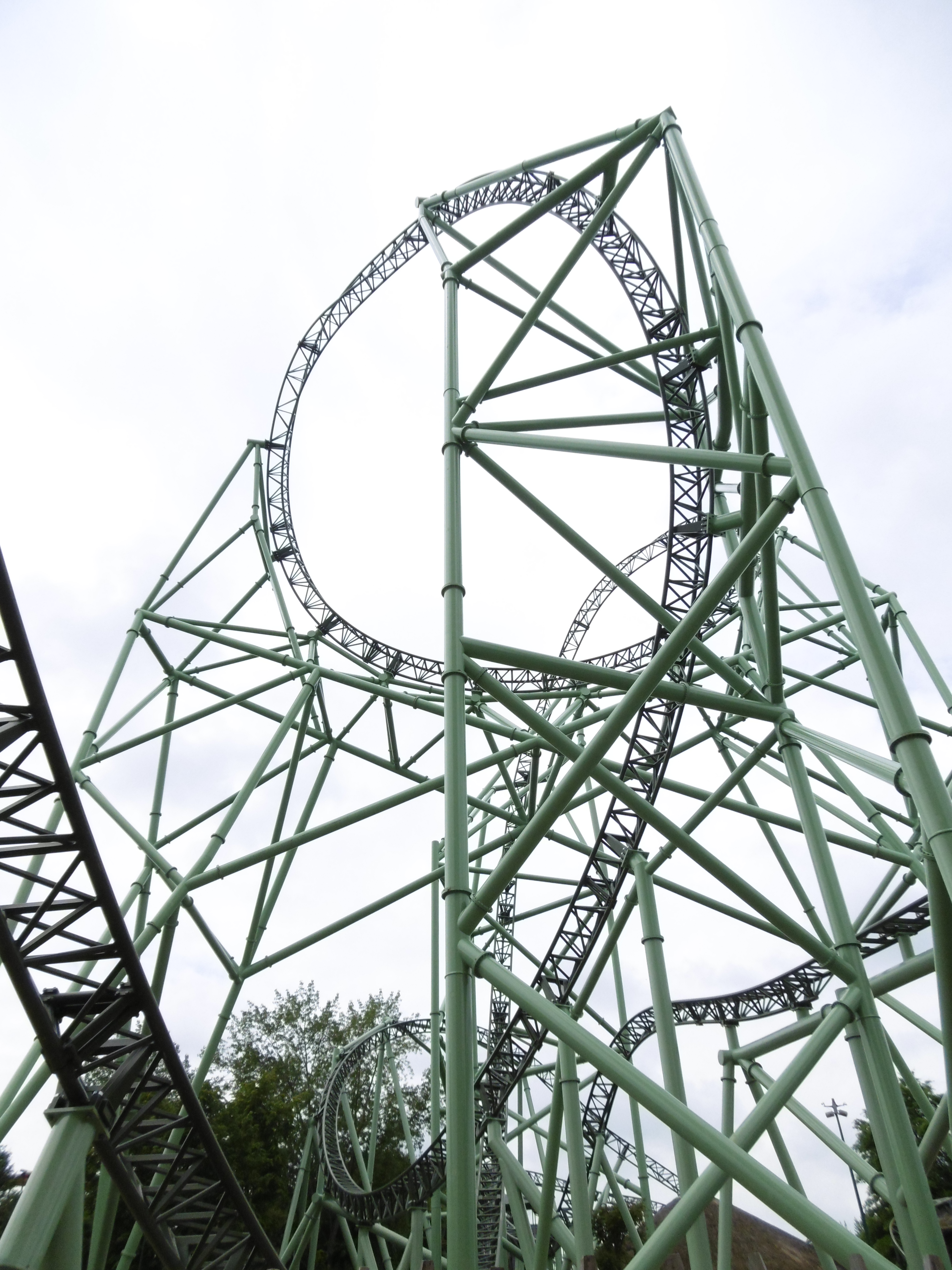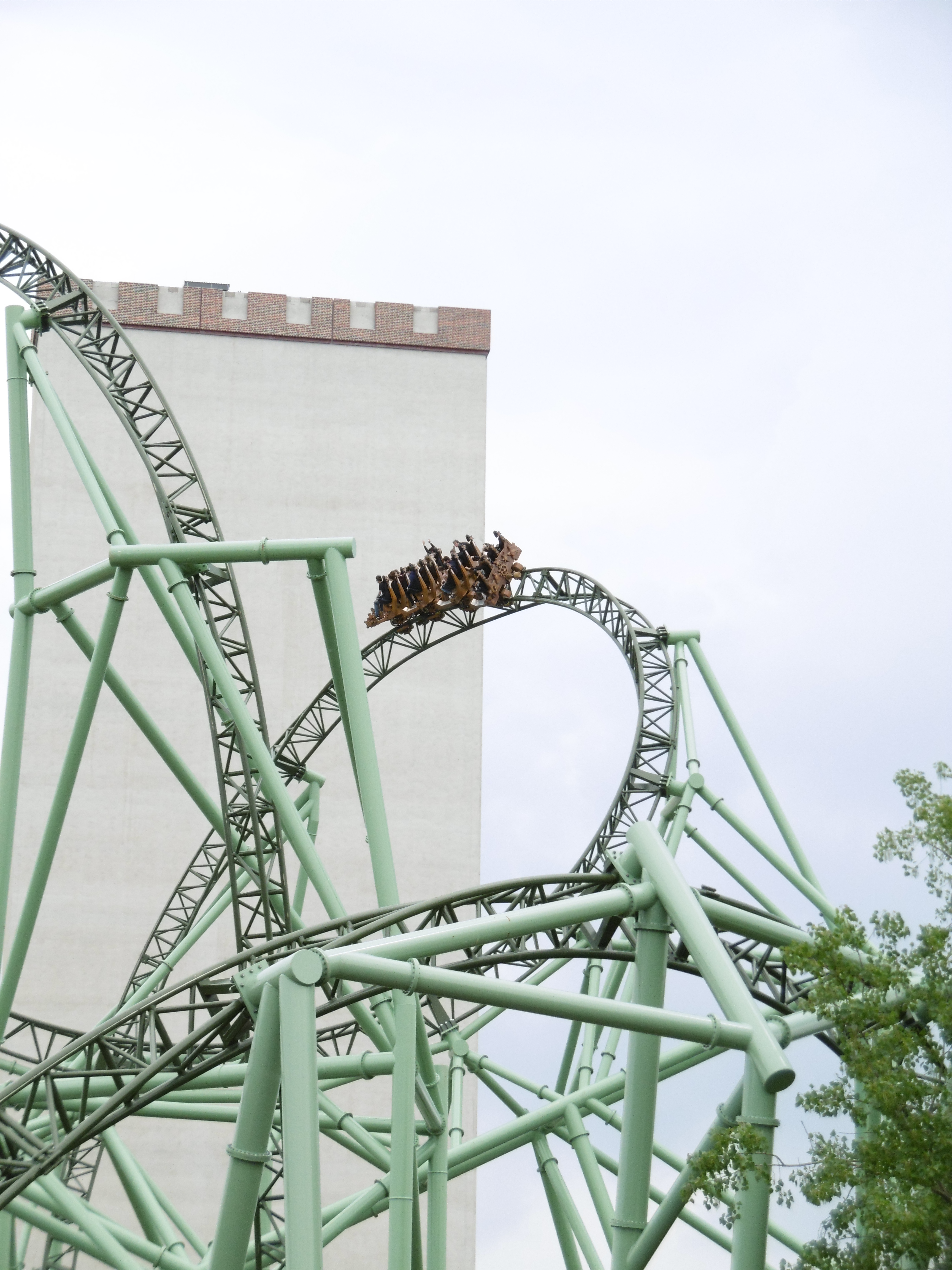 Der Drop hinunter gefällt mir um einiges besser als beim ähnlichen Modell bei mir um die Ecke. Wie sich die Bahn dort unten aber schon nach erst einem Jahr fährt fand ich ein wenig erschreckend und hoffe, dass es sich nicht noch weiter verschlimmert. Ebenso weiß ich nun, warum die Mitarbeiter den Bügel nicht zudrücken brauchen, da es die
