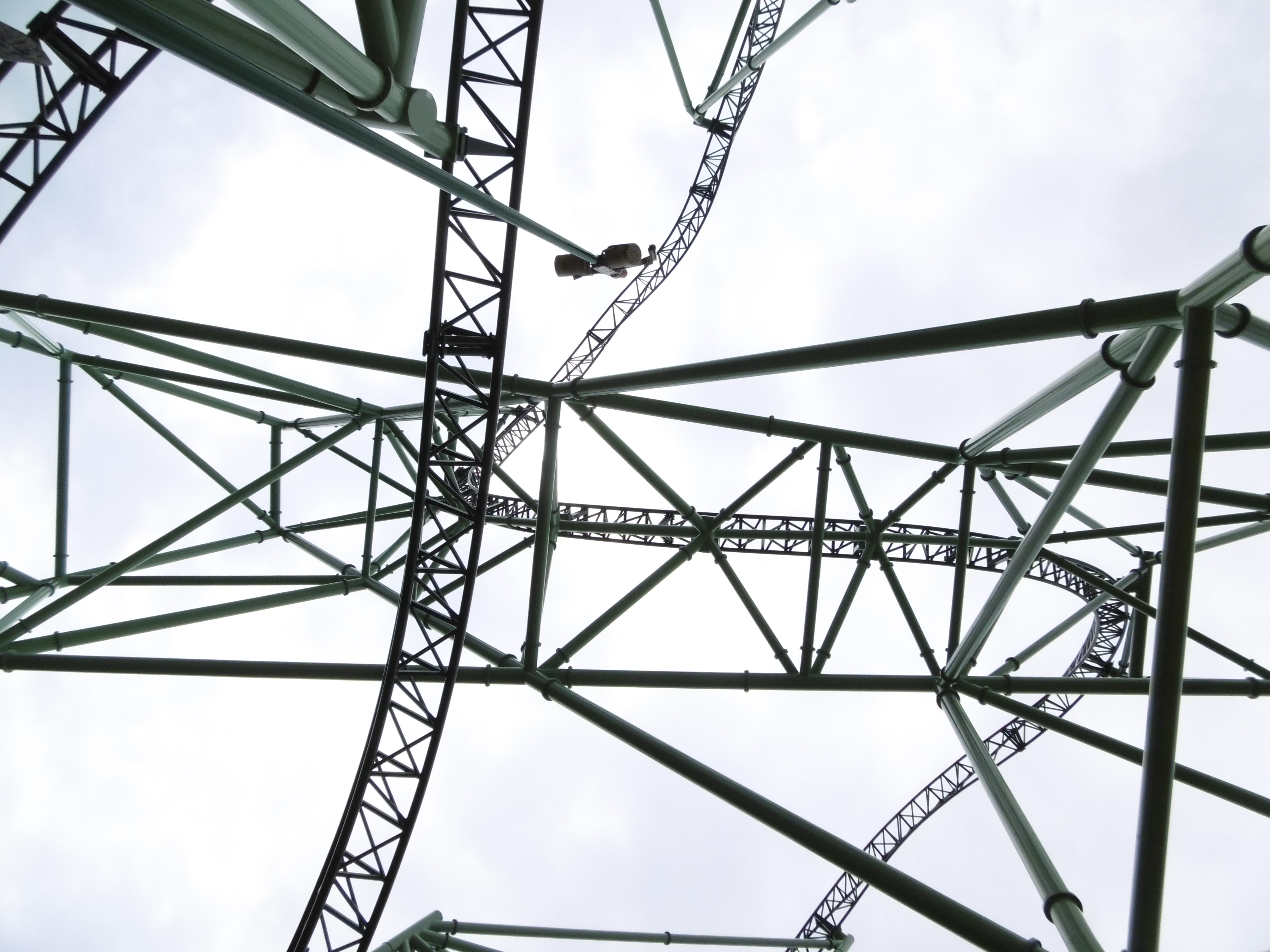 Imascore typisch folgt ein famoser Spannungsaufbau bis der Lift fast oben angekommen stoppt. Und dann verliert der Rücken seine Lehne und der Körper wird erst durch den in einiger Entfernung befindlichen Beckenbügel in den Abgrund mitgenommen. Ich hätte nicht gedacht, dass es auch in einem großem Achterbahnzug zu einem netten Bauchgribbeln kommen kann, wozu aber die neue Erfahrung des auf dem Rückenliegens erheblich beigetragen hat. Dass es nun weiter nach unten gehen wird, wird mir vermutlich aber nicht viel ausmachen, da ich auch bei Freefall-Towern den Moment des Ausklinkens am meisten mag. Nachdem es erneut hinauf auf 73 Meter ging …