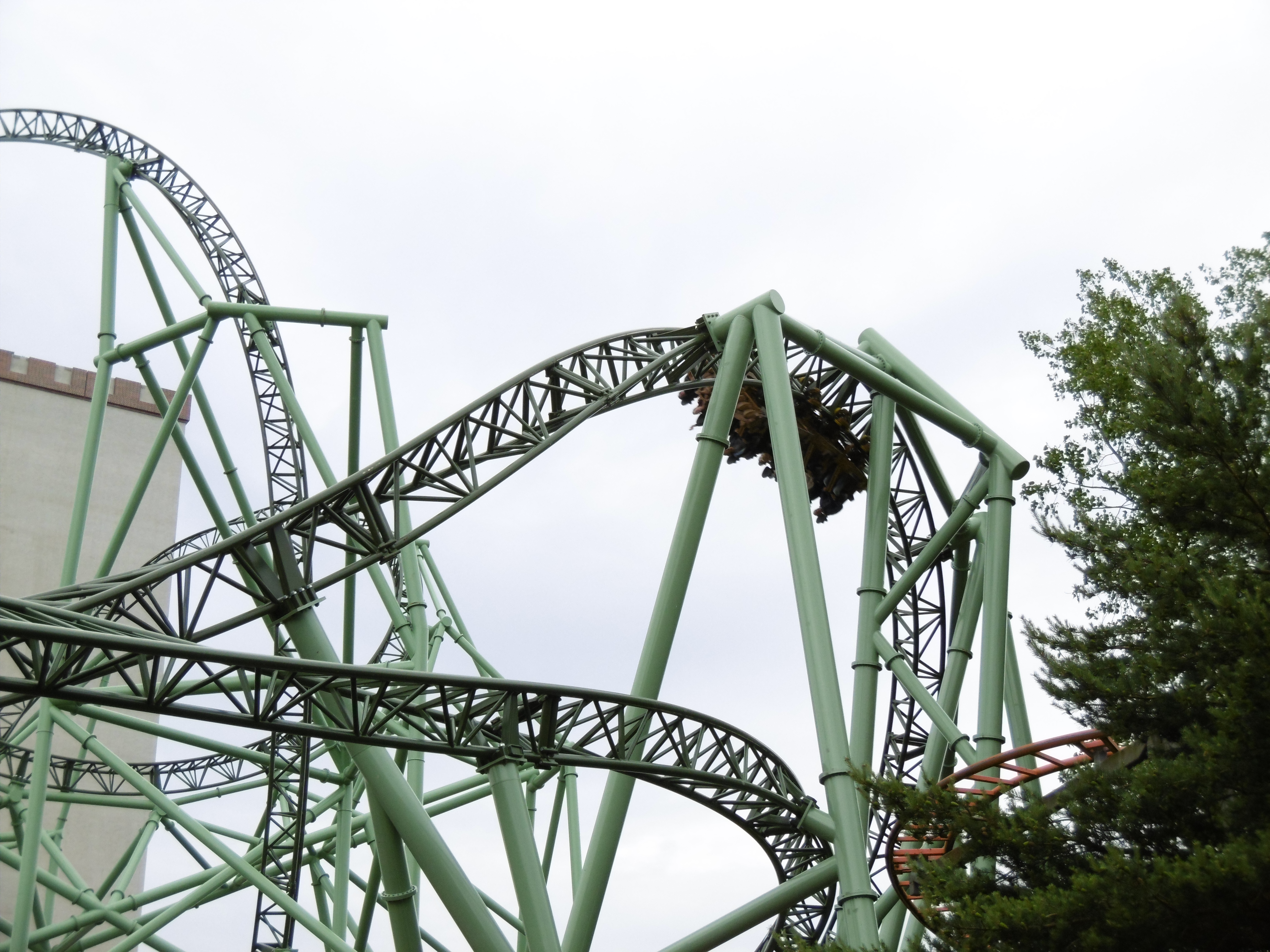 Hört sich doch eigentlich garnichtmal so schlecht an. Für mich als Umschwungfan (ich sage nur Furius Baco) auch endlich ein Hypercoaster, der nicht nur hoch und runter fährt. Dazu noch dieses sonderbare Erlebnis auf dem Rücken liegend senkrecht nach unten zu rauschen. Durch meinen Radsport habe ich jedoch dickere Oberschenkel und durch den immer weiter schließenden Bügel war irgendwann ein Druck erreicht, der das Fahrerlebnis etwas trübte und irgendwann nur noch für Schmerzen sorgte. Laut Erzählungen soll das gegenüber einer Bahn im Hershey Park noch angenehm sein, dann weiß ich aber schonmal, welche Bahn ich dort nicht so häufig fahren werde. Beim