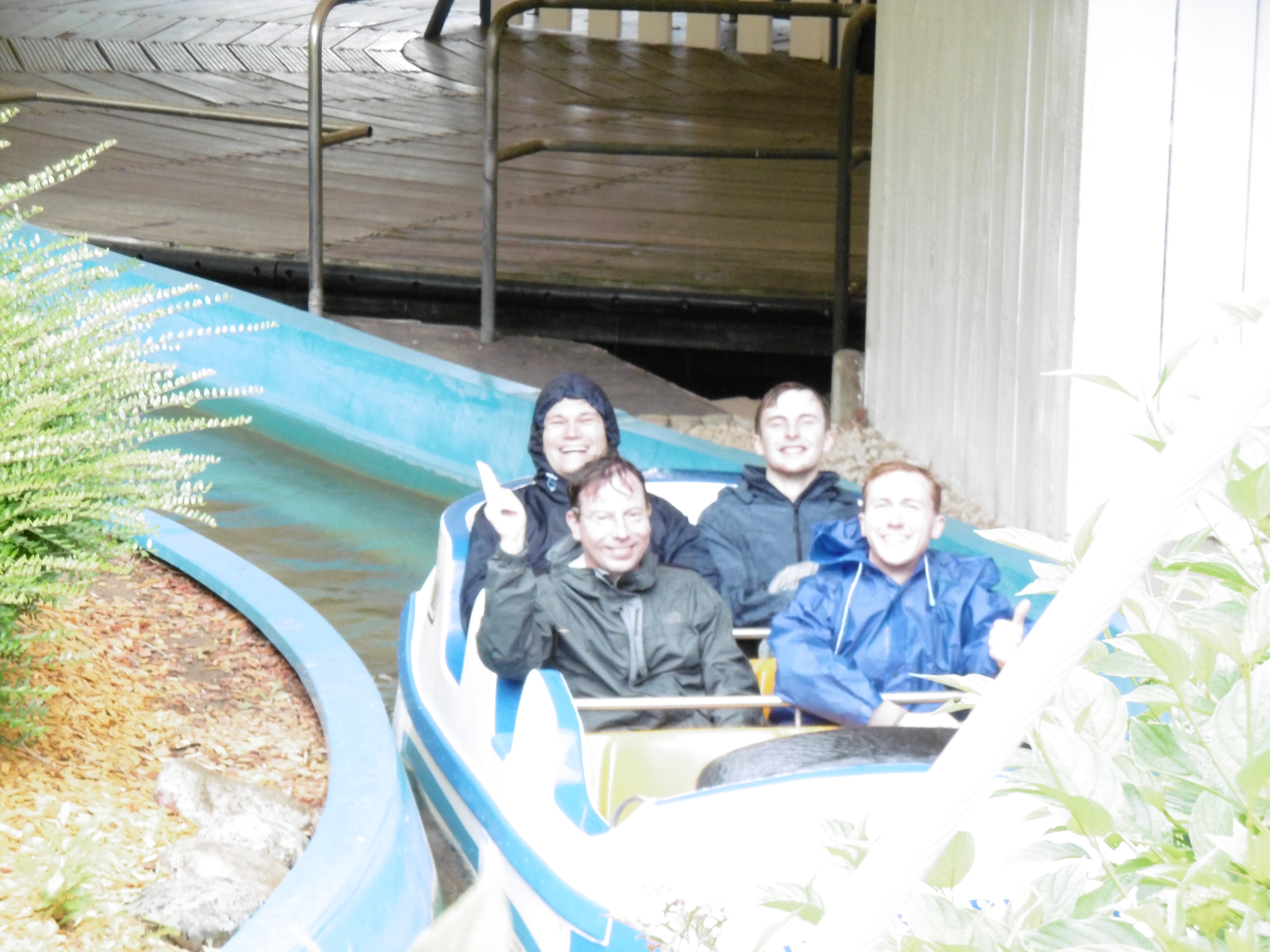 Auch wenn das Wetter nicht das Beste war, wollten Dominik und Alex unbedingt noch die beiden Wasserbahnen beim Fluch fahren. Kevin und meine Wenigkeit zierten sich zunächst etwas, aber zu einer Fahrt konnten wir uns doch noch überreden. Warum wir uns dann für den vermutlich deutlich nasseren
