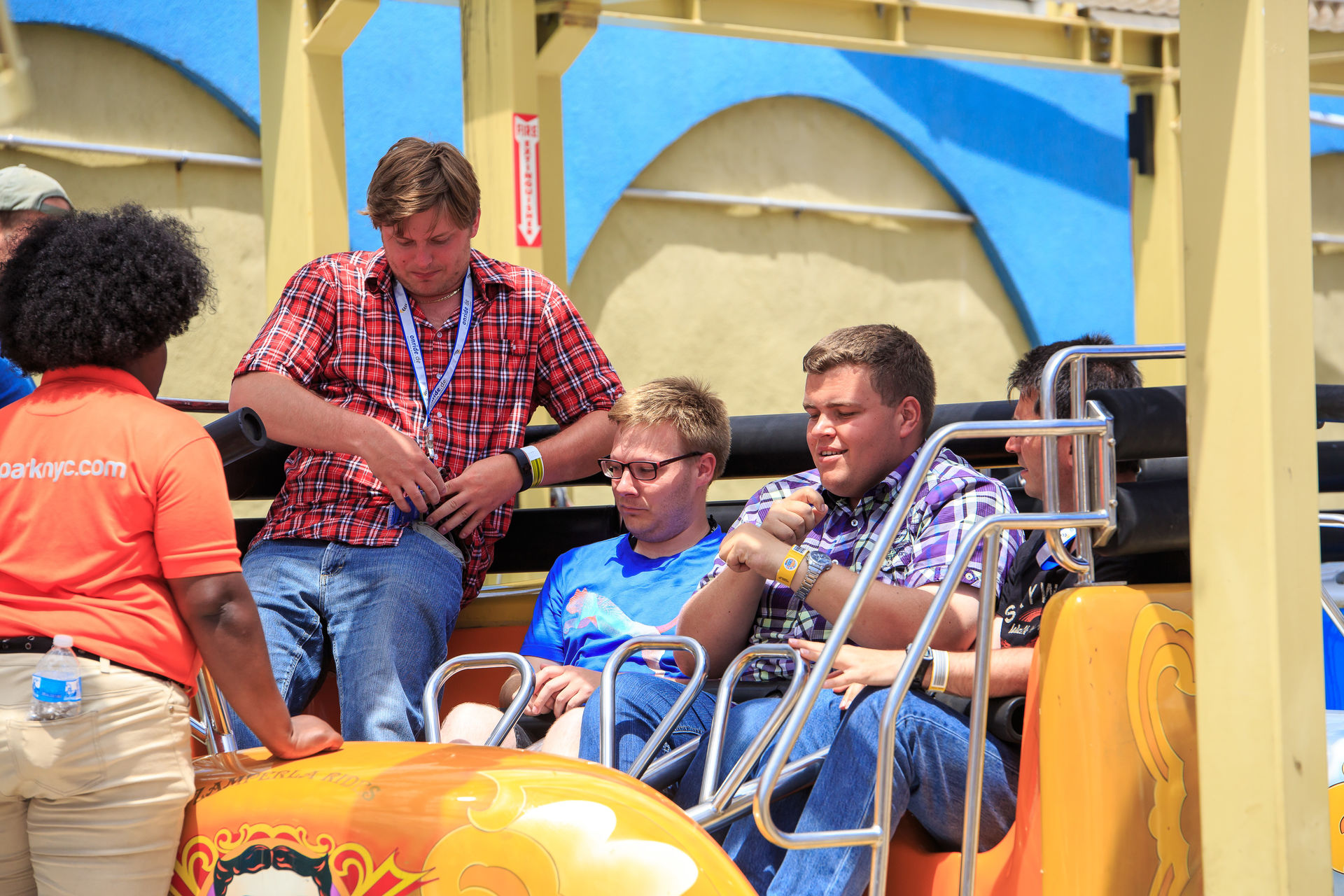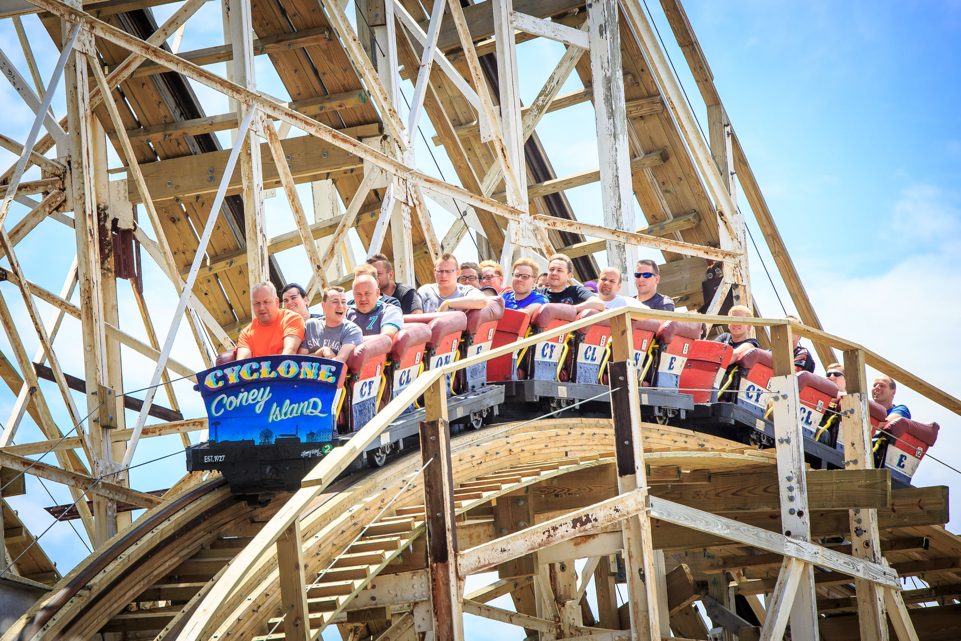 Ein Zug voller Onrider - und keiner hat die Arme oben.