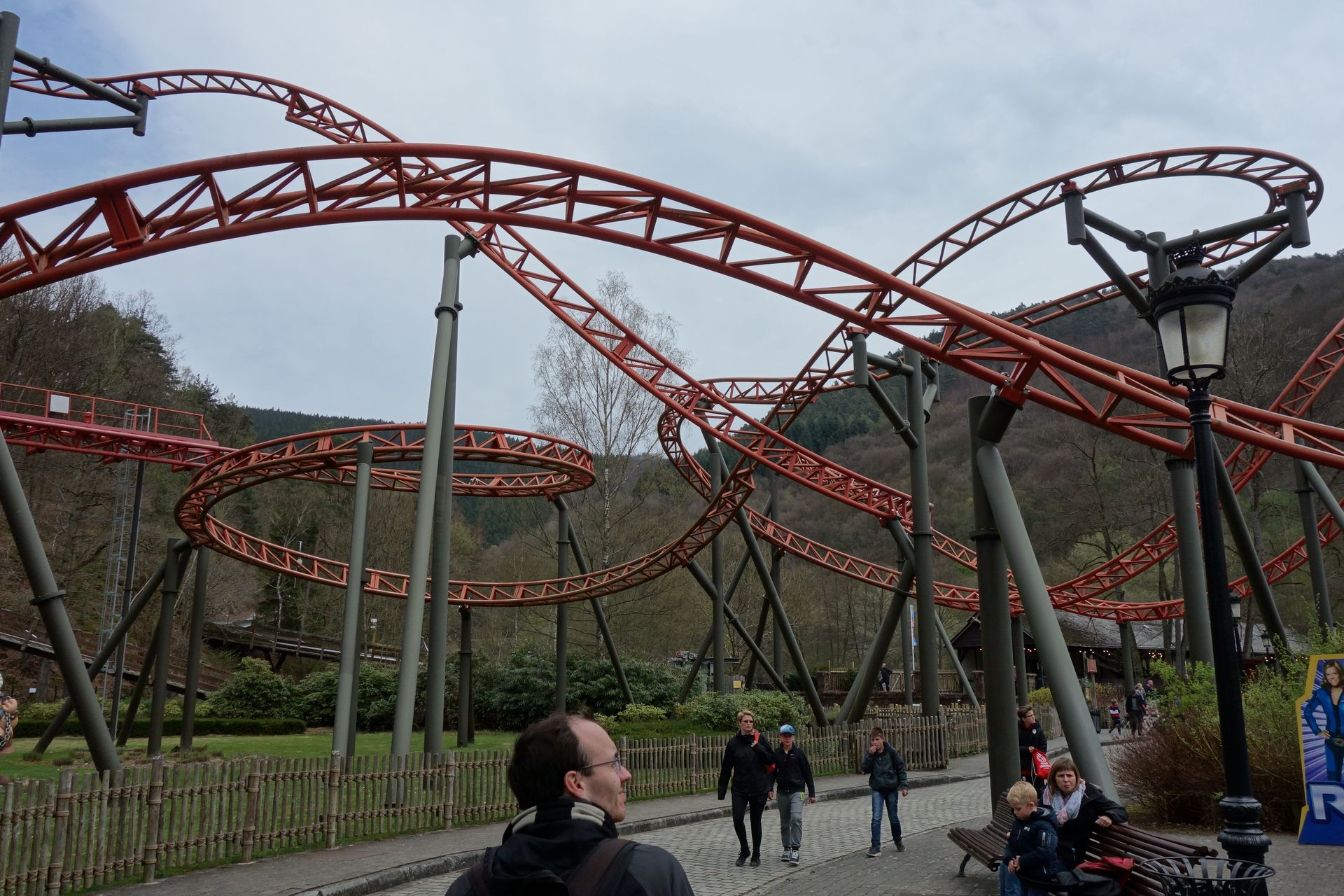 Eigentlich hatte ich ja schon Ende August des letzten Jahres nach Belgien gewollt, um die beiden neuen Counts dort abzuhaken. Mit Nicolas hatte ich auch eine passende Begleitung gefunden, doch dann kam uns das Fantreffen im Wiener Prater dazwischen - von der auf 2017 aufgeschobenen Eröffnung des Heidi-Woodies im Plopsaland ganz zu schweigen. Es wurde also umgeplant und die Osterferien als Termin ausgemacht, wobei ich zu Ostern selbst wieder zuhause bei der Familie sein wollte. Die ursprünglich dreitägige Tour wurde im Zuge dessen auf eine ganze Woche mit ausschweifendem Frankreich-Teil ausgedehnt. Für Nicolas ergab sich dann allerdings die Gelegenheit, im angedachten Zeitraum den Osten unserer schönen Republik zu besuchen, sodass wir letztlich wieder auf eine immerhin viertätige Tour zurückwechselten. Das Wochenende vor Ostern verbrachte Nicolas somit in Belantis und dem neuen Freizeitland Geiselwind, während ich seine Holly im Eifelpark begrüßte. Unser gemeinsames Programm startete dann am Mittwoch, dem 12. April, einen Tag vor dem Beginn der "heiligen drei Tage" (lat. Triduum Sacrum, auch Ostertriduum genannt) am Gründonnerstag Abend. Die Tour habe ich nun entsprechend Osterquatriduum genannt.