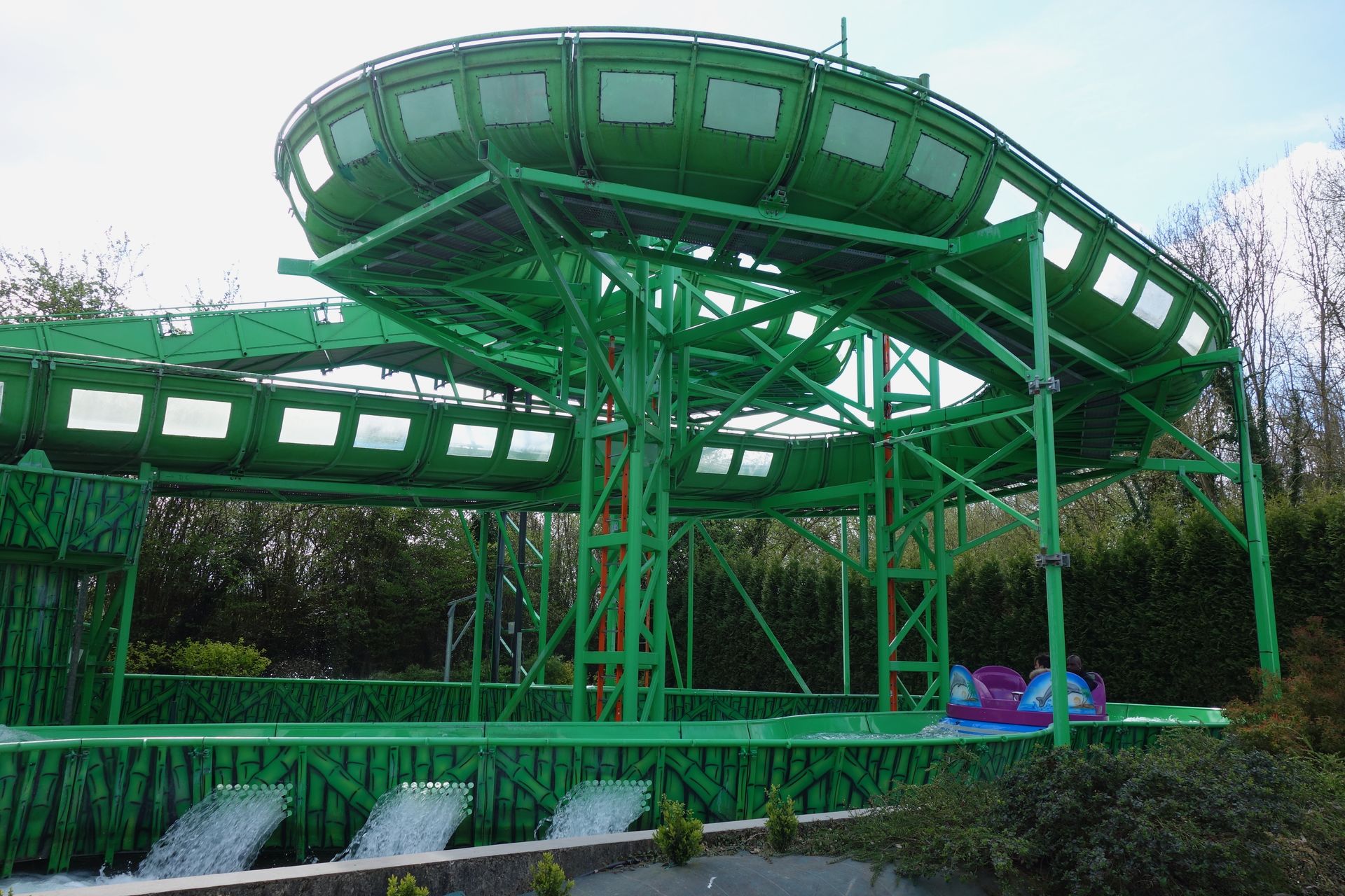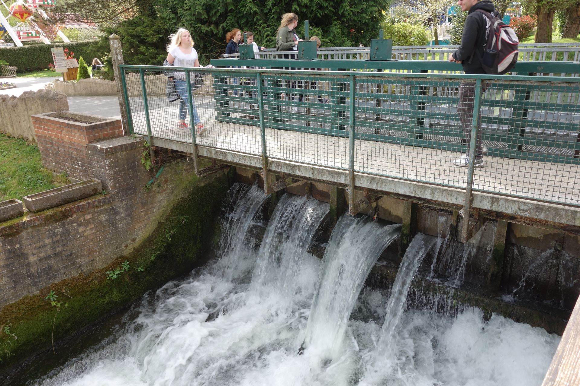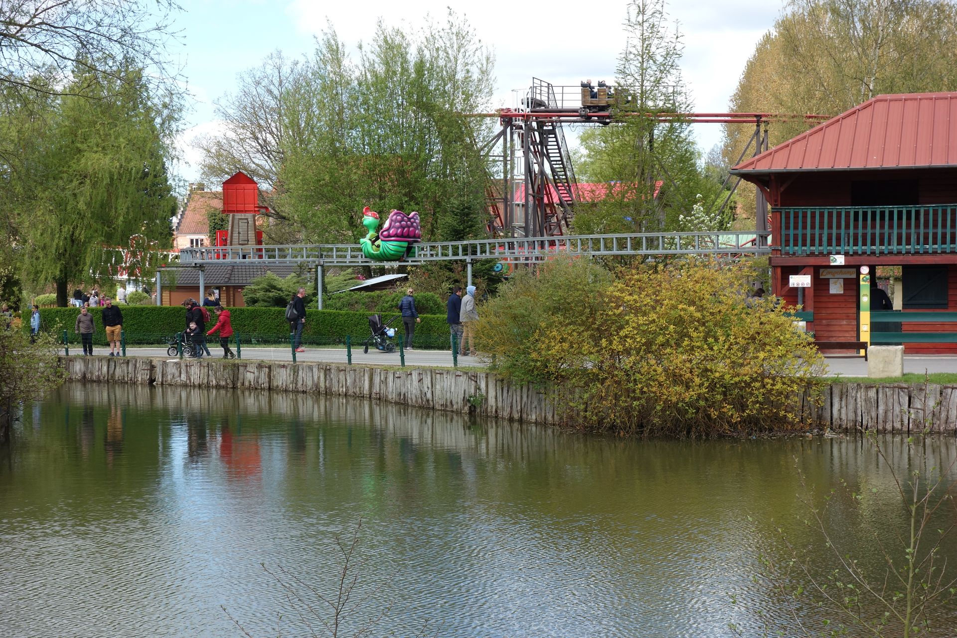 Wenn man die Lys oder Leie im Deutschen überquert, sieht man auch schon die erste Achterbahn des Parks.