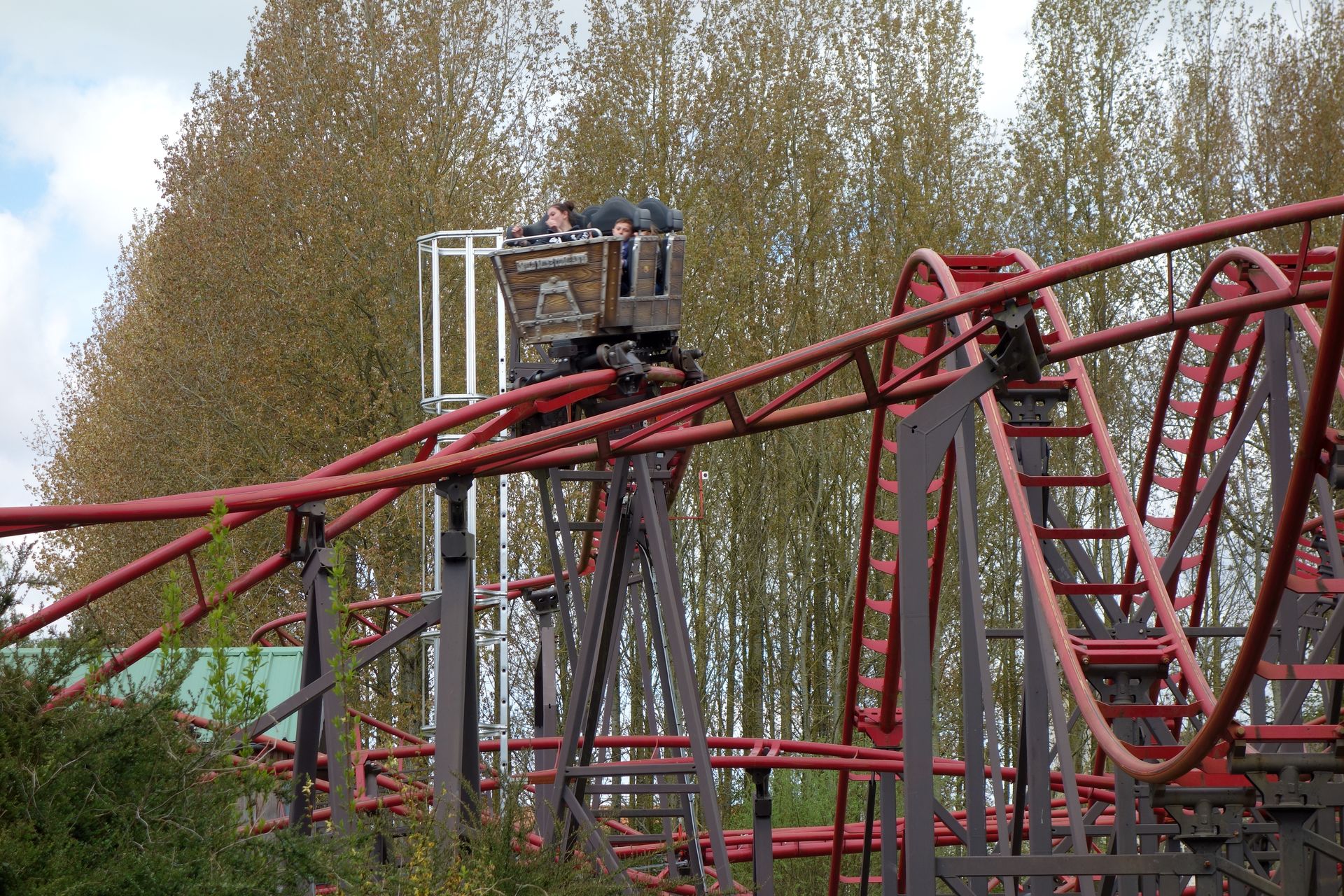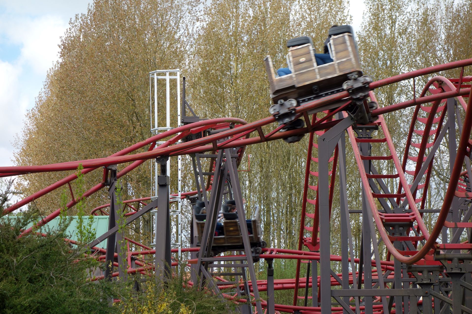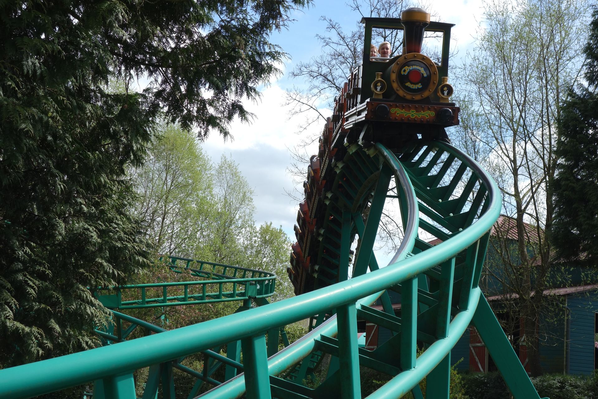 Die Finalkurve dieser Spur ist übrigens nahezu perfekt. Wäre die ganze Bahn so sanft wie diese letzte Kurve, wäre das eine tolle Achterbahn. Gut, irgendwie machte die ruppige Fahrweise auch den Charme dieser Bahn aus, Nicolas hatte da richtig Freude dran. Und ich fand die Anlage jetzt auch nicht schlecht. Dauerfahren würde ich darauf zwar nicht unbedingt, aber es ist doch irgendwie eine witzige kleine Anlage für Zwischendurch - zumindest in einem Park wie diesem.