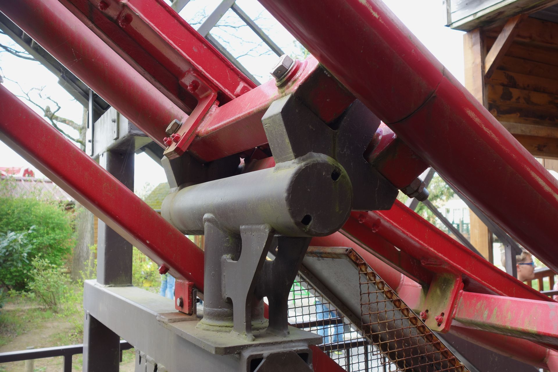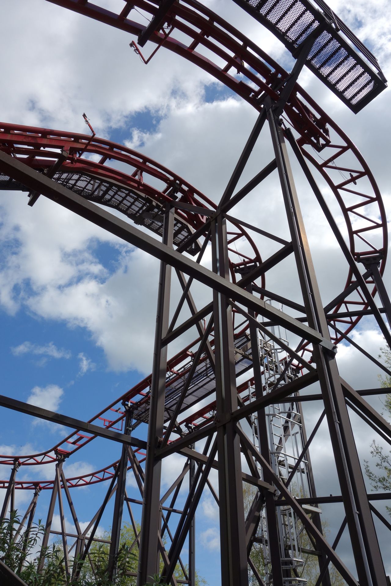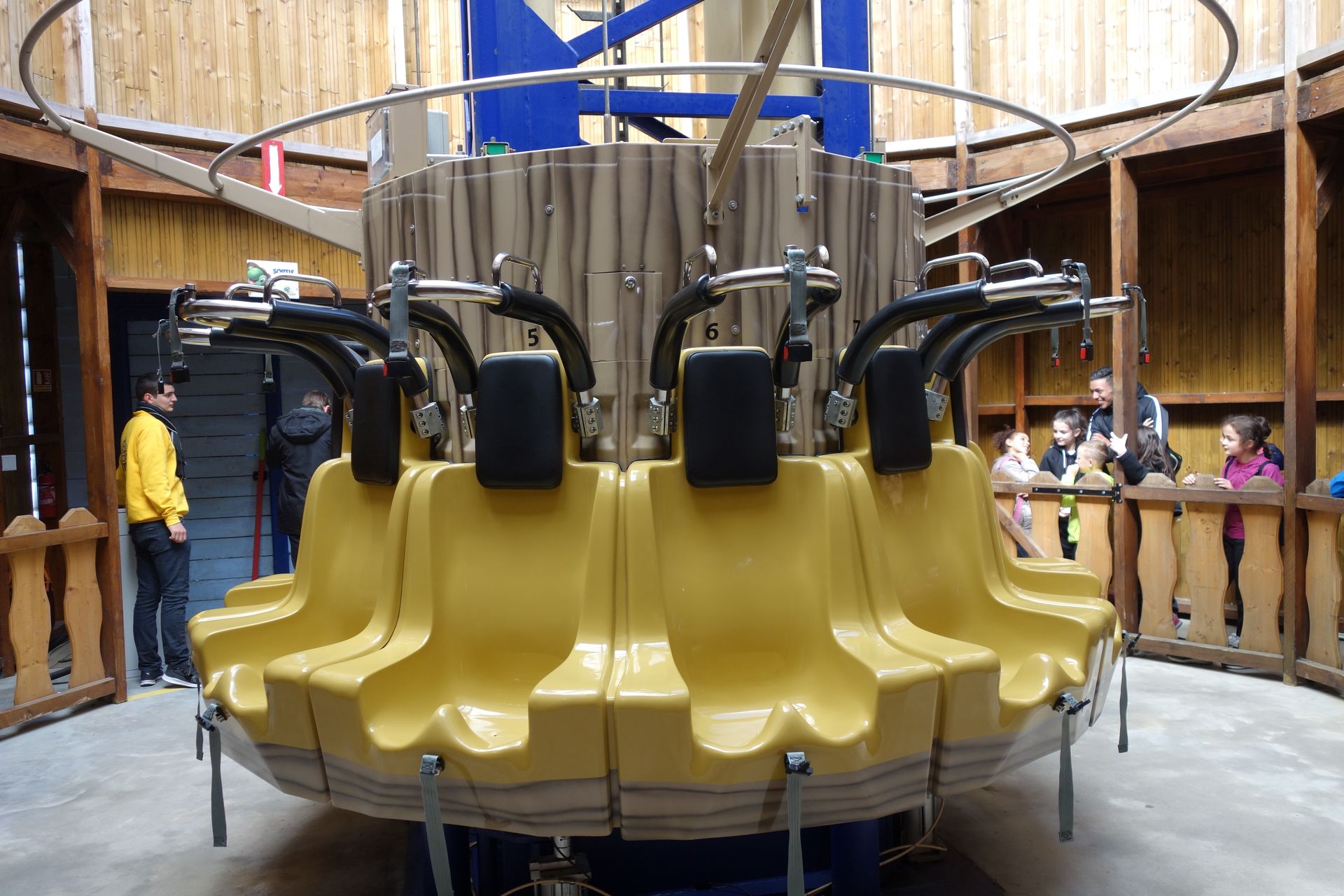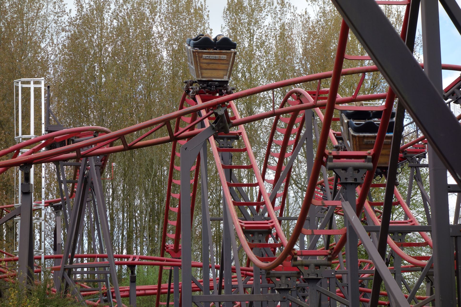 Am auffälligsten ist natürlich die einfache Zweigurt-Schiene anstelle des Dreigurt-Profils der Konkurrenz. Außerdem ist die Anlage auf festen Fundamenten errichtet statt auf Sohle. Weitere Unterschiede zeigen sich am Ende der Fahrt, wenn der Zug nicht direkt am Lifthill gestoppt und abgelassen wird, sondern noch ein wenig auspendelt. Dafür muss der Operator die Wagen nicht von Hand ausrichten, da sie von eingebauten Motoren selbstständig in die korrekte Ausstiegsposition gedreht werden. Eine schöne kleine Familienbahn, die mir insgesamt noch etwas besser gefällt als die inzwischen immer öfter verkauften Konkurrenzprodukte - auch wenn sich der Spin in ähnlichen Grenzen hielt.
