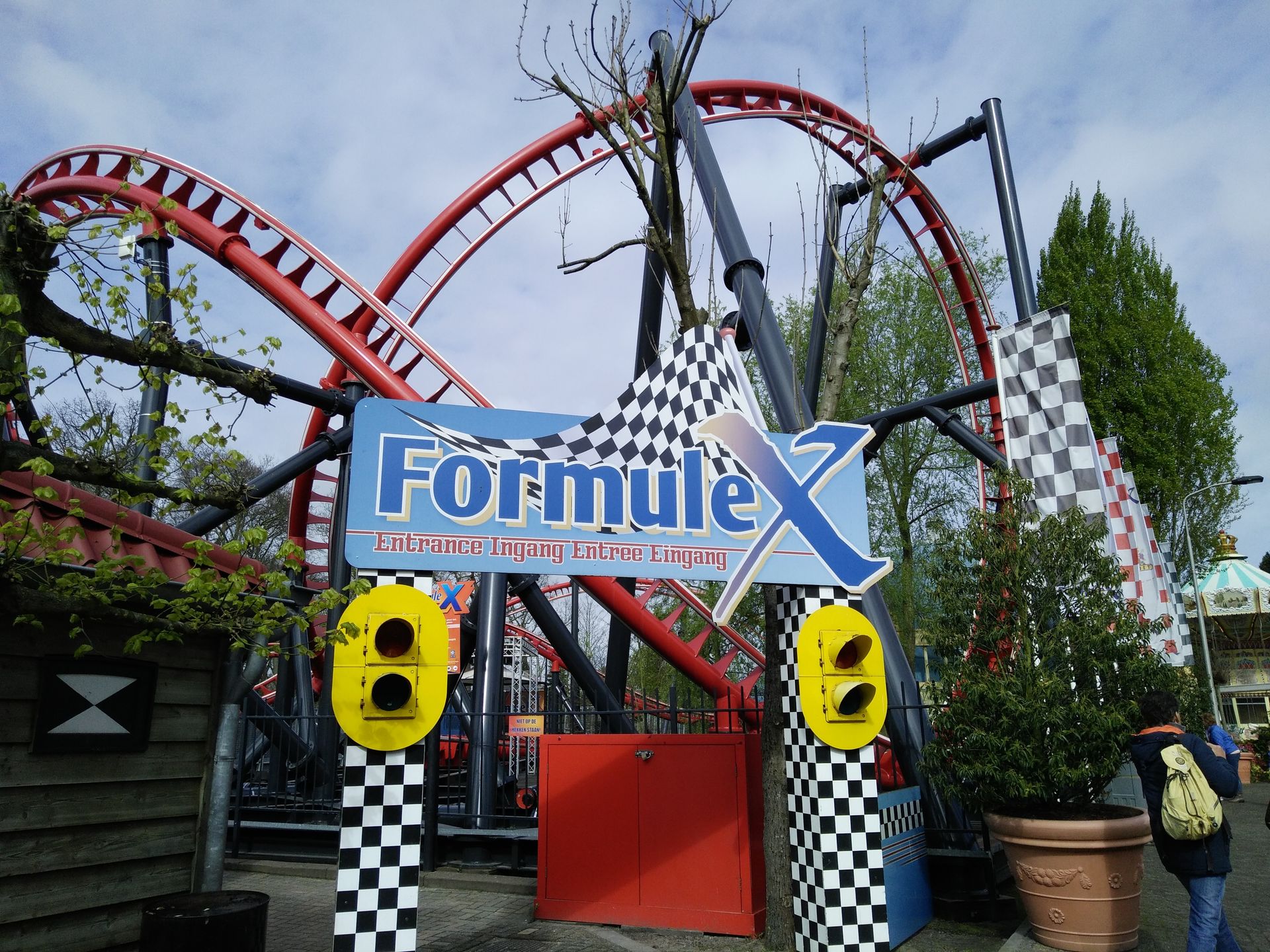 Nicht weit entfernt von der ersten Achterbahn befindet sich direkt das Highlight des Parks: Formule X. Dann schauen wir mal, was das Ding kann.
