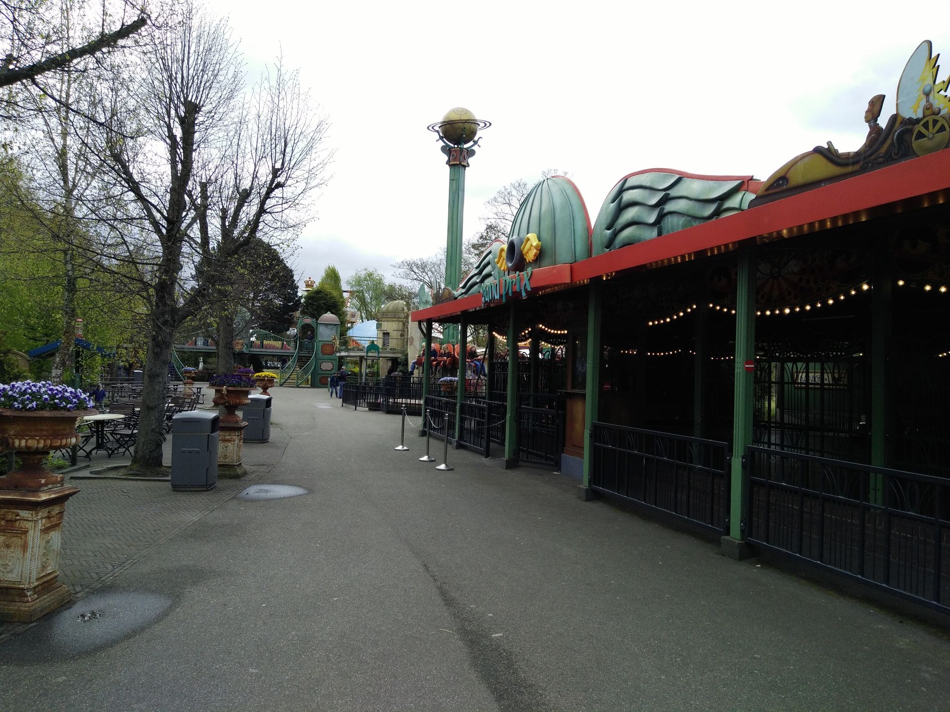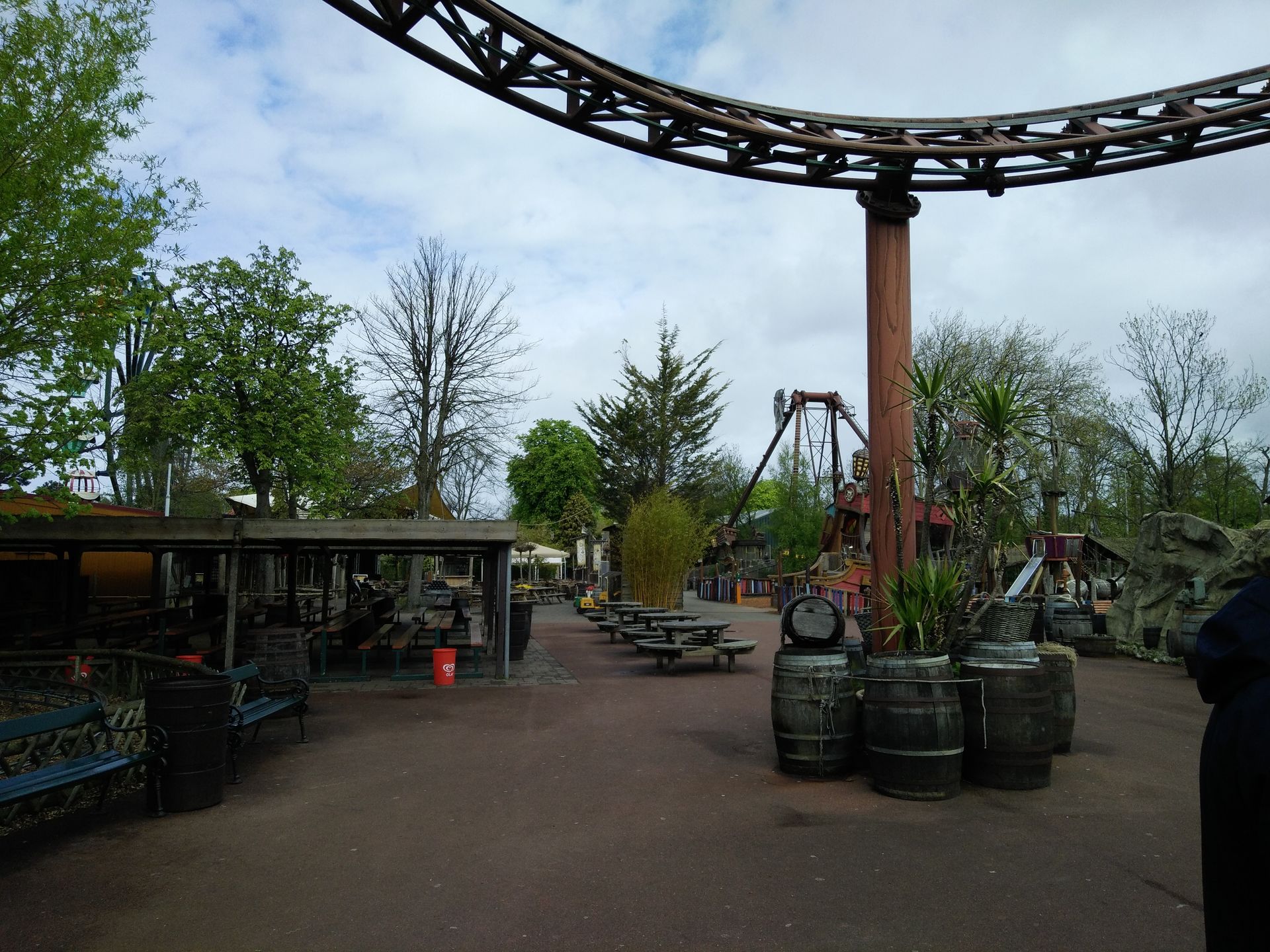 Kaum aus der Bahn raus führten und die hier sichtbaren Schienen zum nächsten Coaster des Parks, wieder nur einen Steinwurf von der vorherigen Bahn entfernt. Wo ist denn hier der Eingang ?