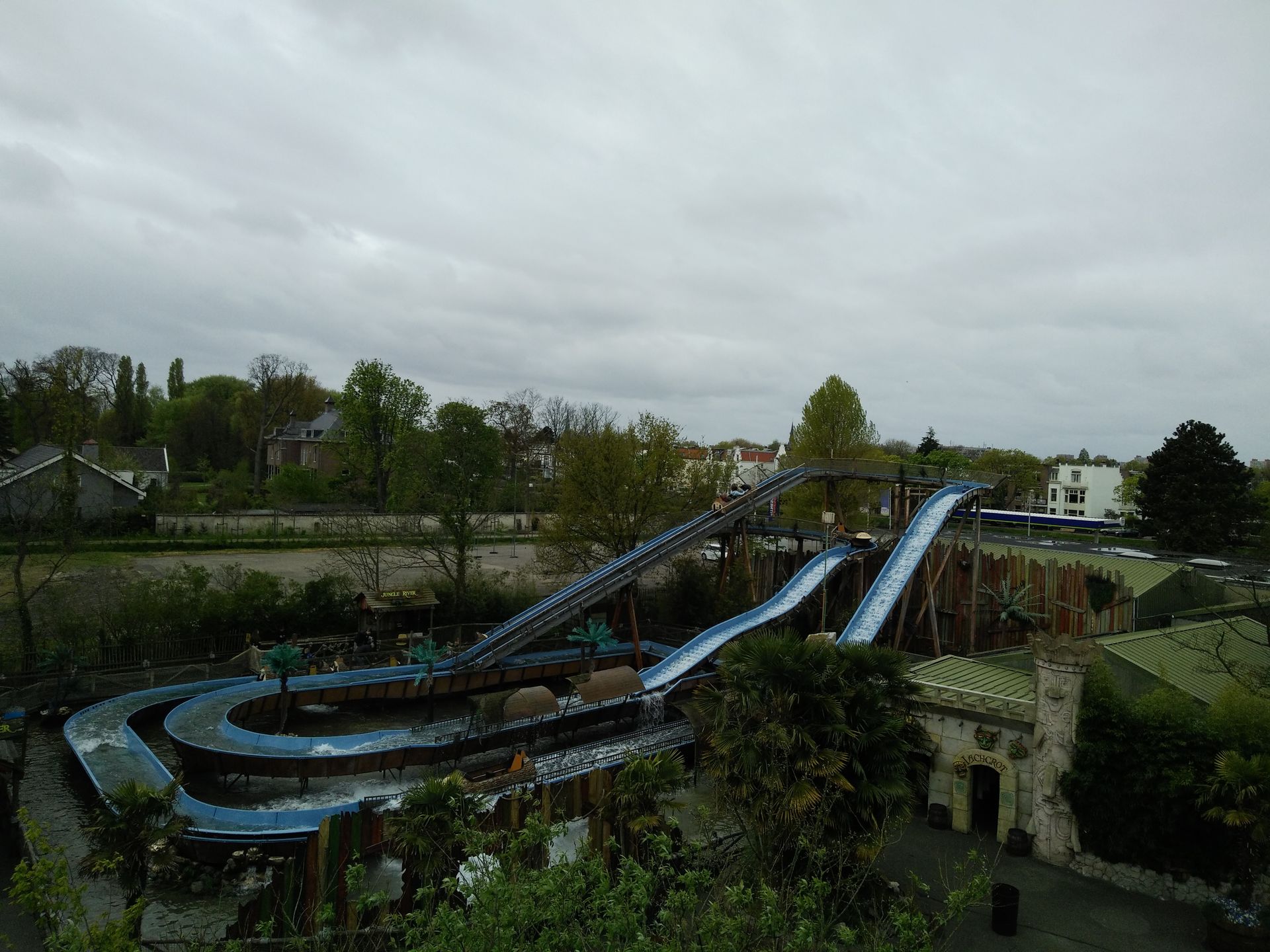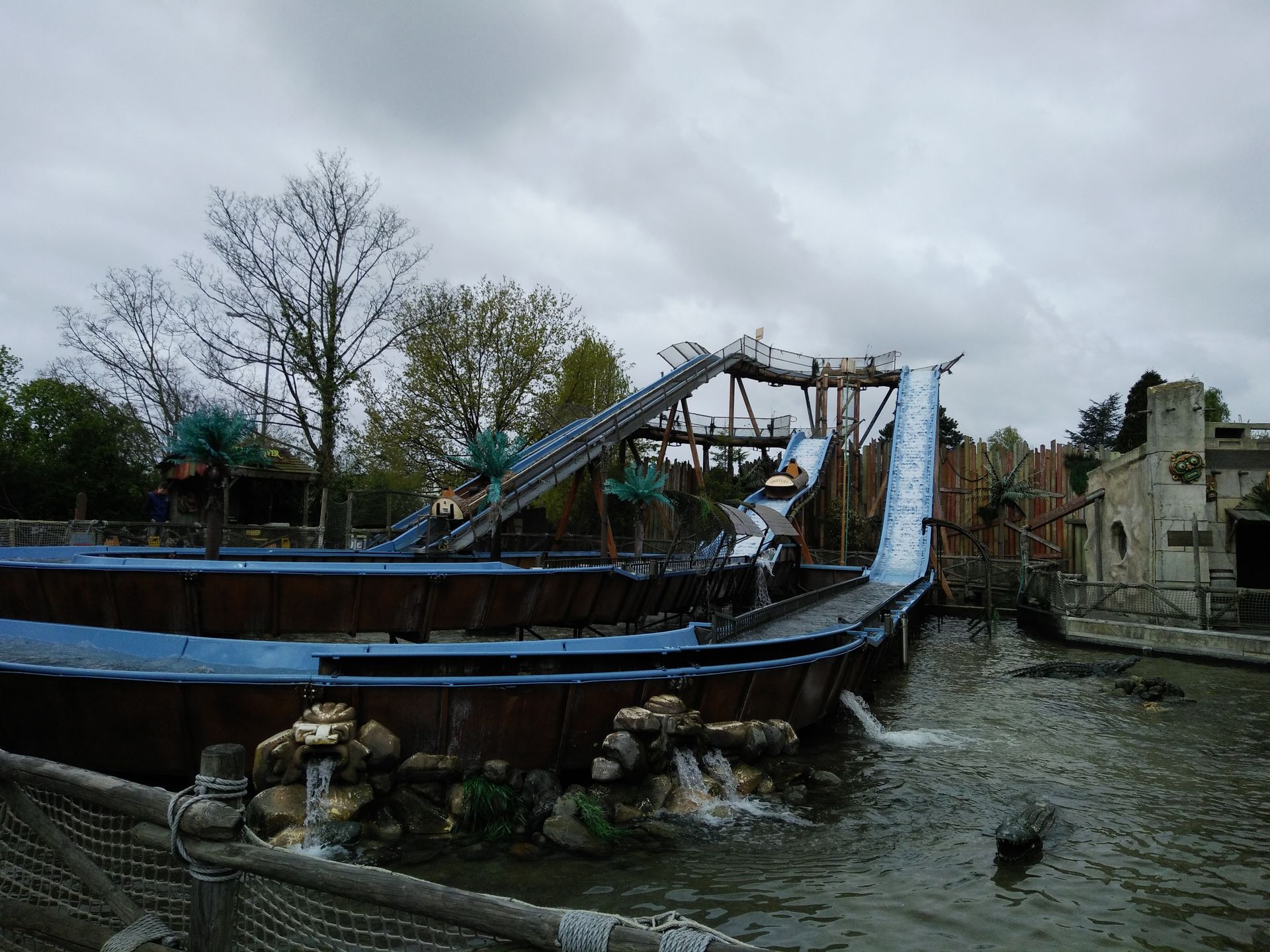 Ebenfalls hier hinten: Die Wasserbahn des Parks. Einer der bekannten Reverchon Log Flumes. Auch hier sind einige gute Themingansätze erkennbar. Die werden dann durch die Aussicht während der Fahrt etwas zu nichte gemacht. Nässegrad: Leichte Erfrischung.