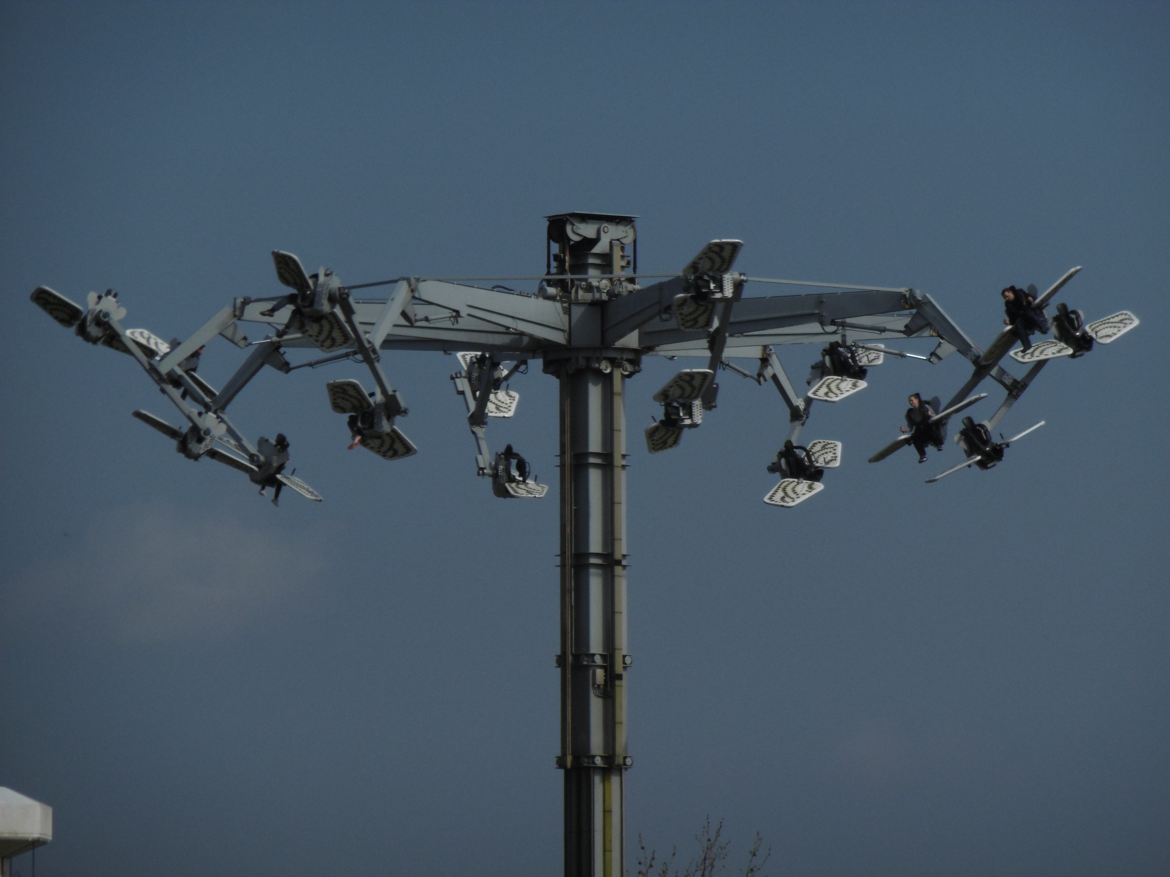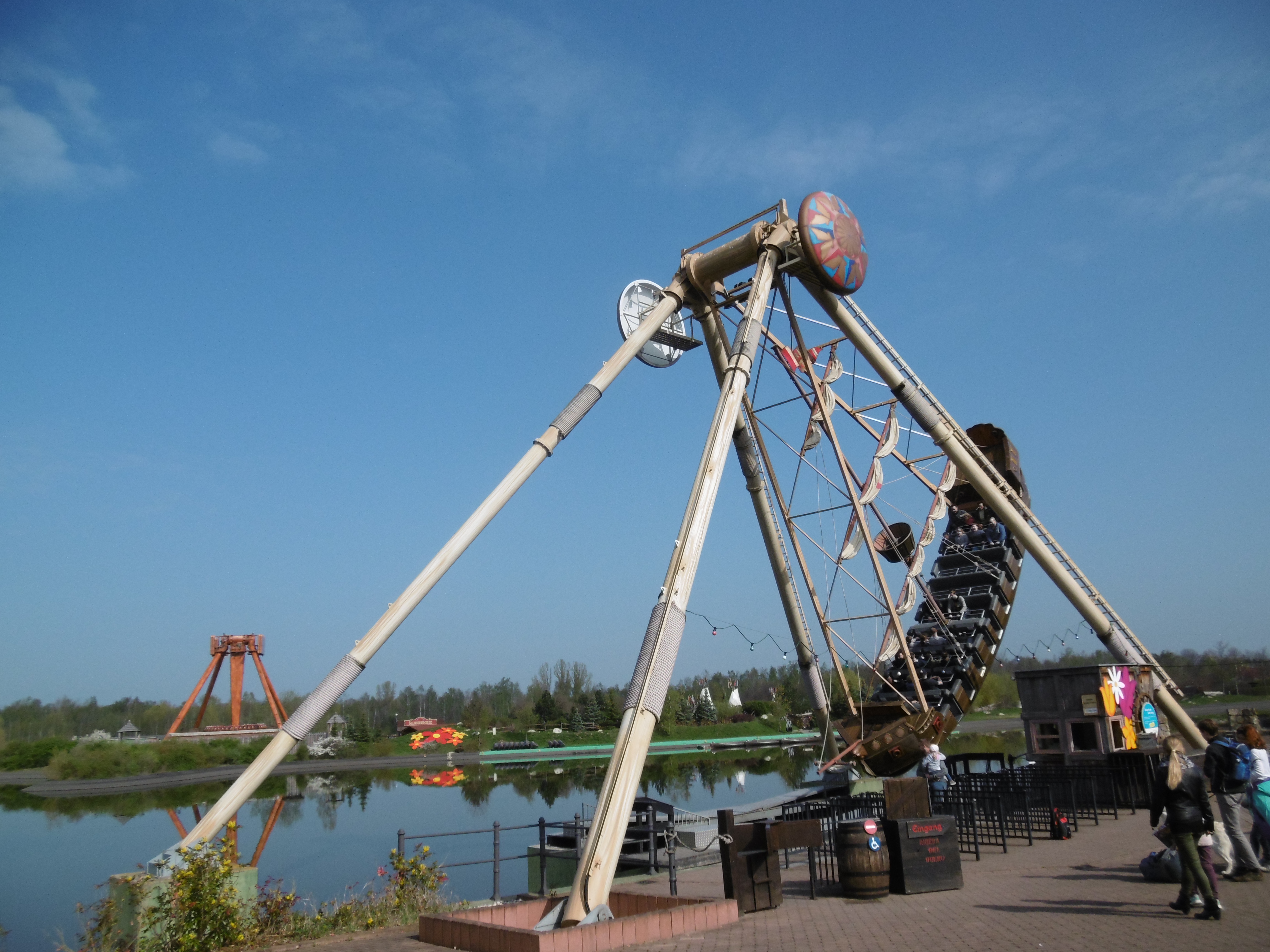 Finde ich schön, dass auch kleinere Kinder mit einer abgeschwächten Variante fahren dürfen. Denn die Rache des Huss Frisbees lässt nicht lange auf sich warten. Von Anfang an gibt das Gerät Gas und verdreht so manchem Fahrgast die Sinne. Dazu schwingt die Gondel auch richtig weit aus, wodurch es am Scheitelpunkt zu mehreren kleinen Magenhüpfern kommt. Eine sehr witzige Fahrt, die nicht nur bei mir zu gehobenen Armen führte. Da mein Kollege auch hier nicht mitfahren konnte, bin ich nur einmal gefahren und habe es irgendwie versäumt Bilder zu machen.