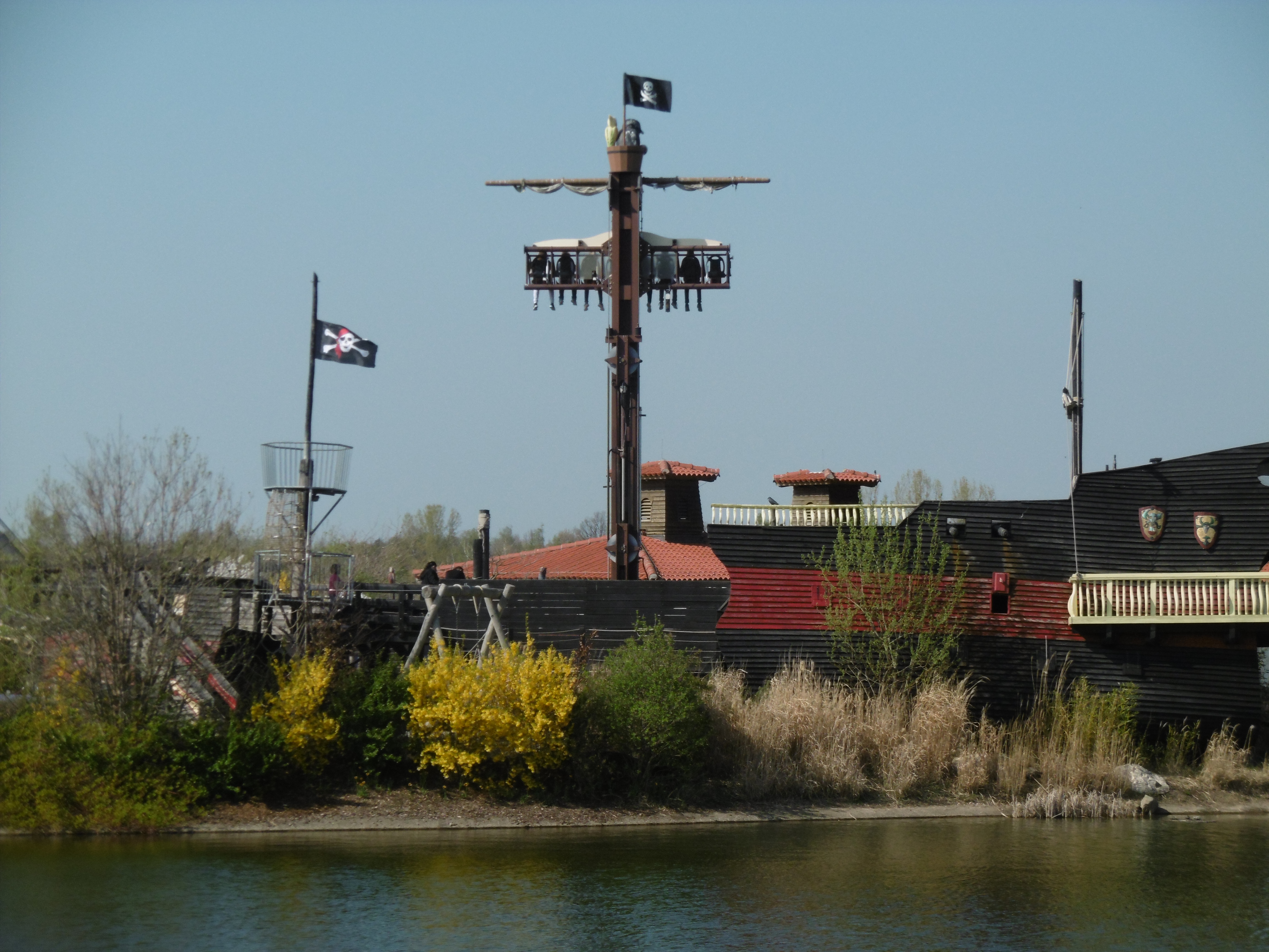 Hinter dem Fahnenmast verbirgt sich ein Freifallturm.
