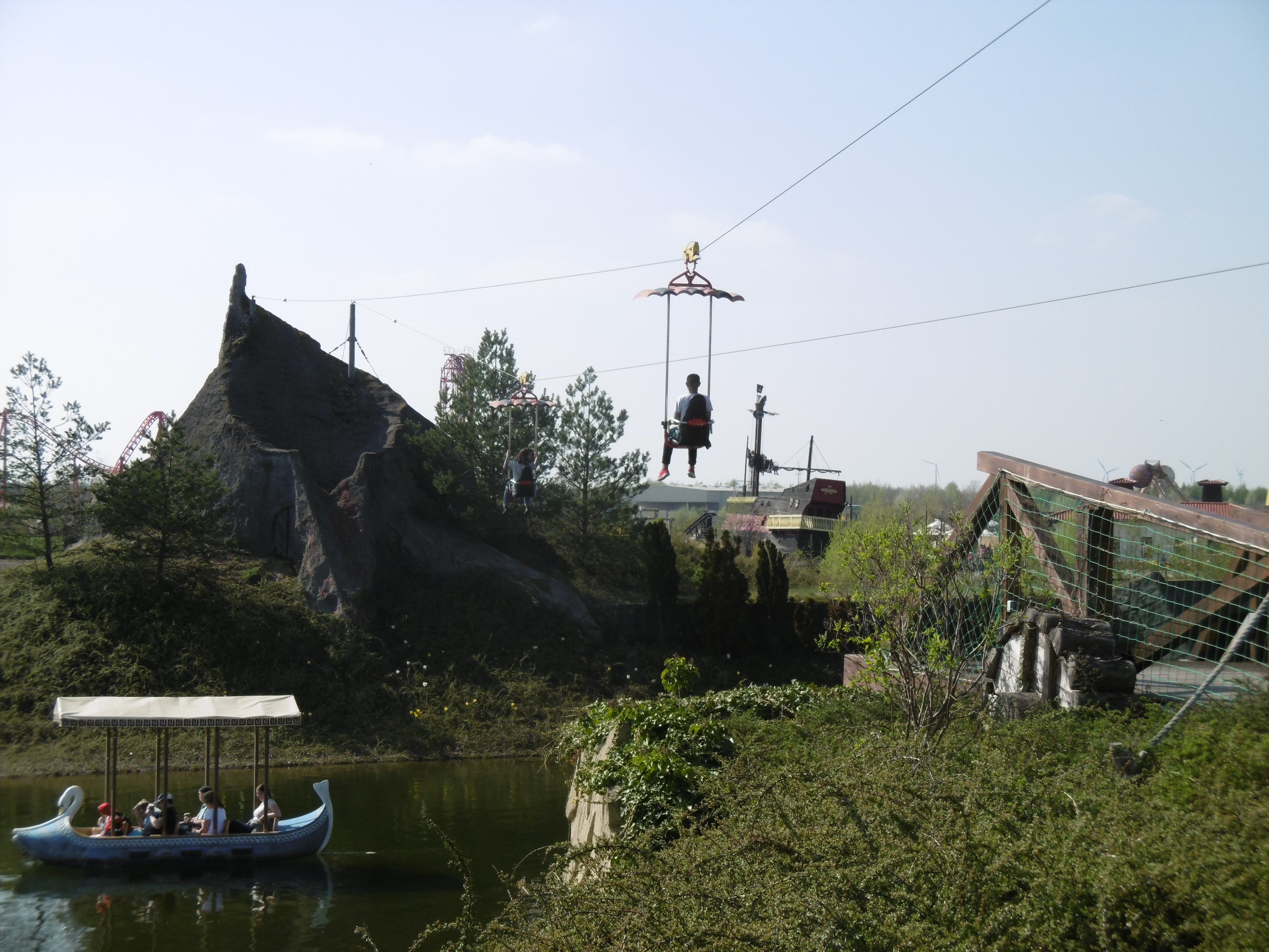 Zusätzlich gibt es dort oben ein Restaurant mit einem schönen Seeblick zu beiden Seiten und einen an diesem Tag gut besuchten Wasserspielplatz. Uns zog es aber weiter durch den europäischen Teil des Parks. Der Schlenker auf die Insel der Ritter blieb uns vorerst verwehrt, da der Bereich erst später öffnete.