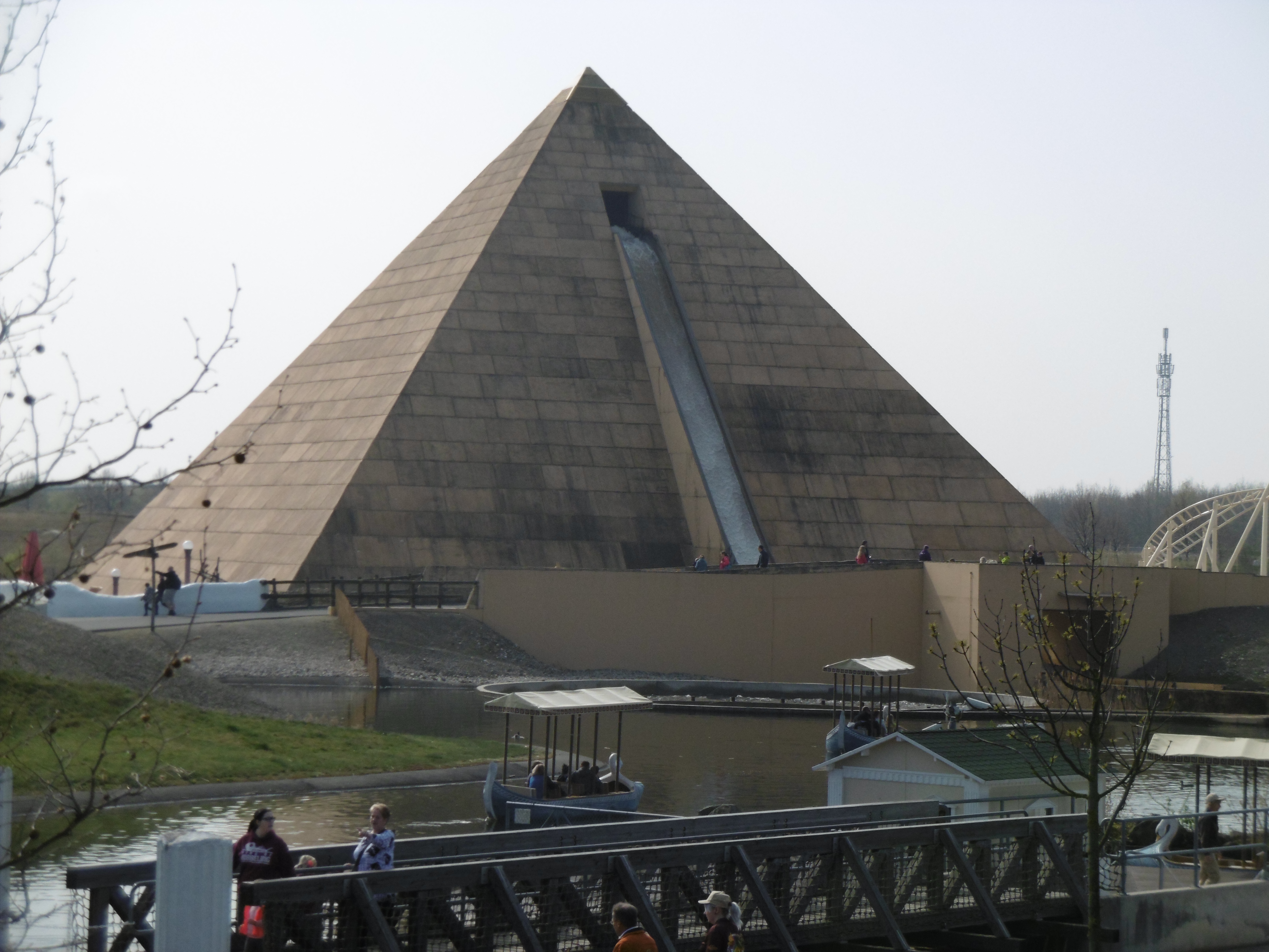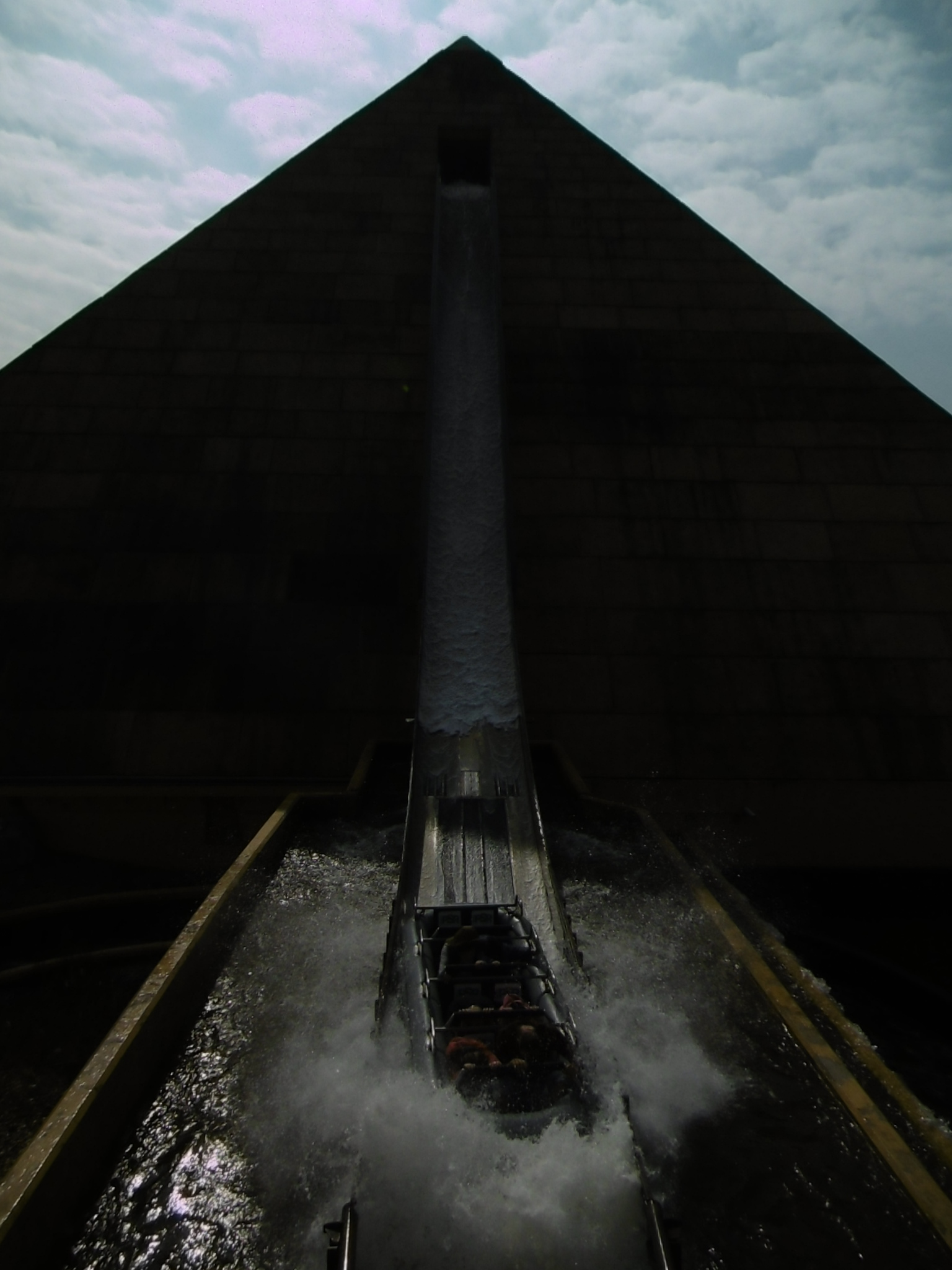 Die meisten Boote des Tages waren meist nur mit 2 oder 4 Menschen besetzt und laut meinem Kumpel sollen die Fahrgäste auch etwas Wasser abbekommen während der Fahrt. Da trifft es sich ja gut, dass direkt vor uns 6 Leute anstanden und nur noch die Front Row übrig blieb und ich ihn etwas zu seinem Glück zwingen musste und nicht auf das nächste Boot zu warten. Wie schon im Hansa Park finde ich diese Schlauchboote (hier von Hafema – kann also nur gut werden!) einfach sehr lustig. Jede Unebenheit spürt der Mitfahrer sofort unterm Hintern und es entwickelt sich ein richtiges Wildwasserfeeling. Dann wird die Pyramide erreicht und es geht hinauf auf 26 Meter.