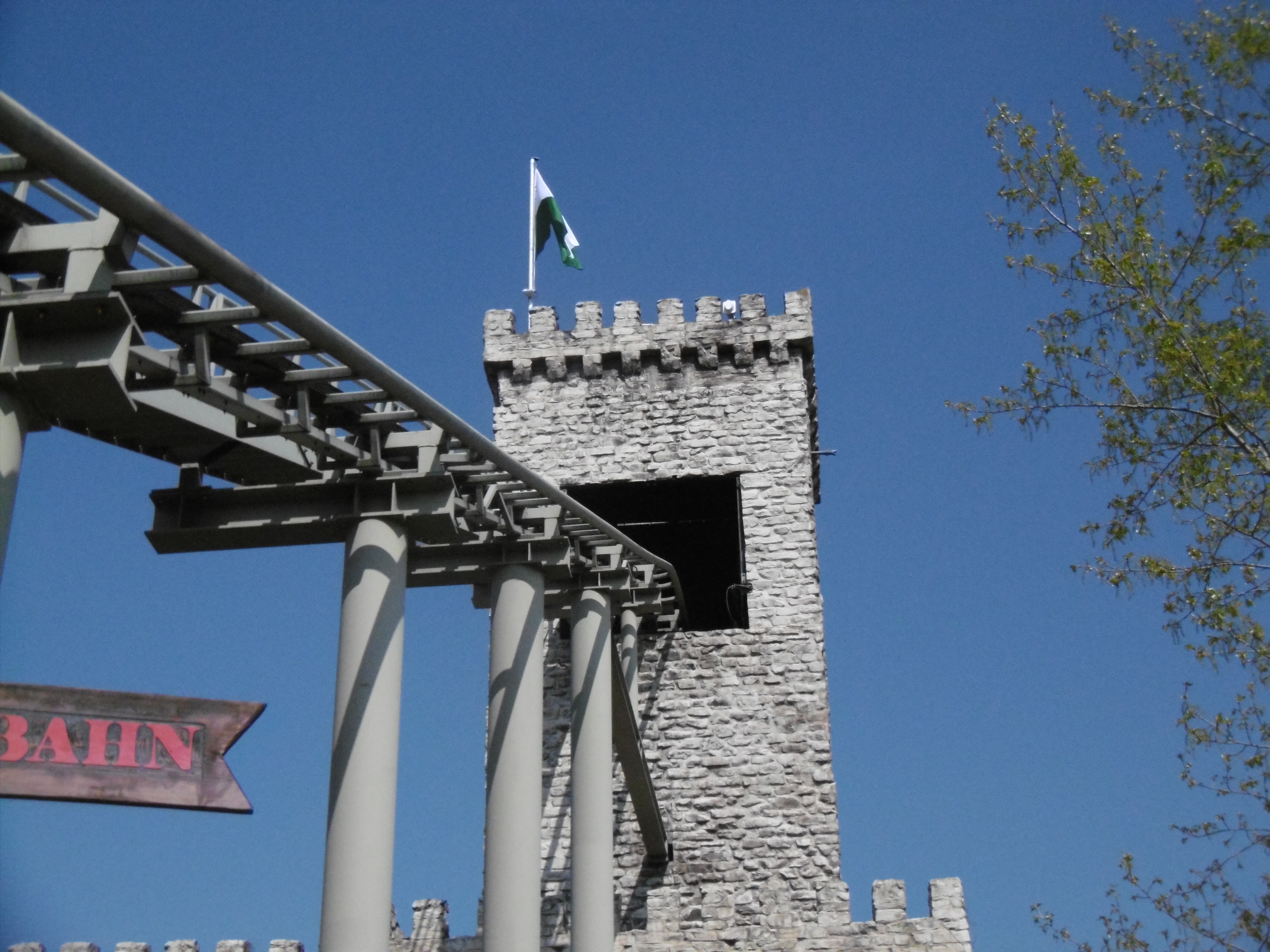 Nachdem mich die Tage zuvor viel Regen, Kälte, Schnee und reichlich Wolken begleitet hatten, beglückte uns an diesem Tag die Sonne mit nur wenigen Quellwölkchen. So hatte ich doch ein paar Befürchtungen, dass es im Park etwas voller werden und ich mit vergessener Sonnencreme einen dicken Sonnenbrand mitnehmen könnte. Glücklicherweise hat sich dann nur zweiteres leicht eingestellt. Auf der Fahrt sind wir noch an einer mir unbekannten Sommerrodelbahn vorbeigekommen, die aber leider morgens noch und abends wieder geschlossen war. Schade …