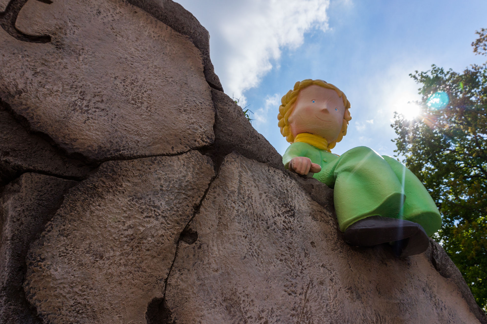 Vorbei an der Seilbahn-Achterbahn „La Tyrolienne“, die sich jedoch zu unserem Besuch noch in Wartung befand, zog es uns in das riesige 3D Kino des Parks, wo der sehenswerte Film „Le Petit Prince 3D“ (unter anderem auch in Deutsch) gezeigt wird. Gemeinsam mit der Hauptfigur des Parks und seinen besten Freund dem Fuchs, bereist man verschiedene Planeten auf der Suche nach seiner Rose.