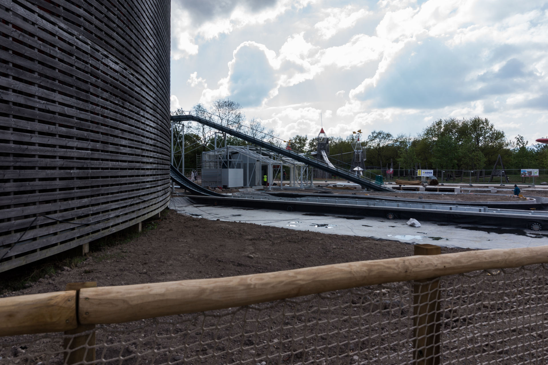 Folgt man den Wegen findet man sich schnell in einer kurzen Sackgasse wieder, wo sich mit dem Vulkan ein überdachter Kinderspielplatz mit verschiedenen Hüpfburgen befindet, aber auch die diesjährige Neuheit Le Serpent und der Bahnhof des Petit Trains.
