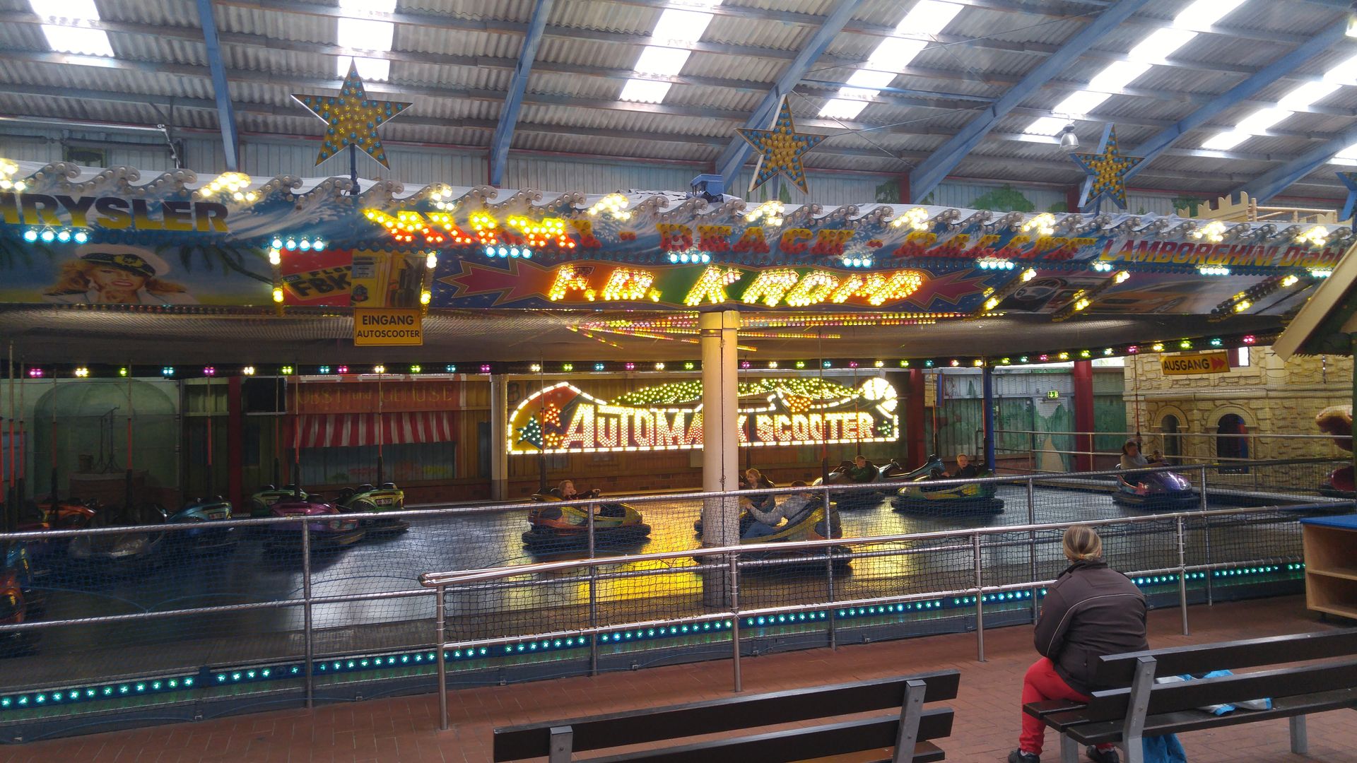 Nebenan befindet sich auch die Upcharge-Ecke mit Pferdereitbahn, Elektroautos und kleinem Zug, sowie ein Spiegelkabinett und ferngesteuerte Autos. Wichtigste Attraktion für mich dort ist der Metallica-Pinball, leider wird da um 18 Uhr alles dicht gemacht. Und man müsste in das Gerät etwas Liebe, Reinigungsmittel sowie neue Coil-Stops und Hülsen verbauen, da in dem Zustand kaum mehr Highscores möglich sind. Aber Freispiele kann man immer noch sehr gut erreichen.