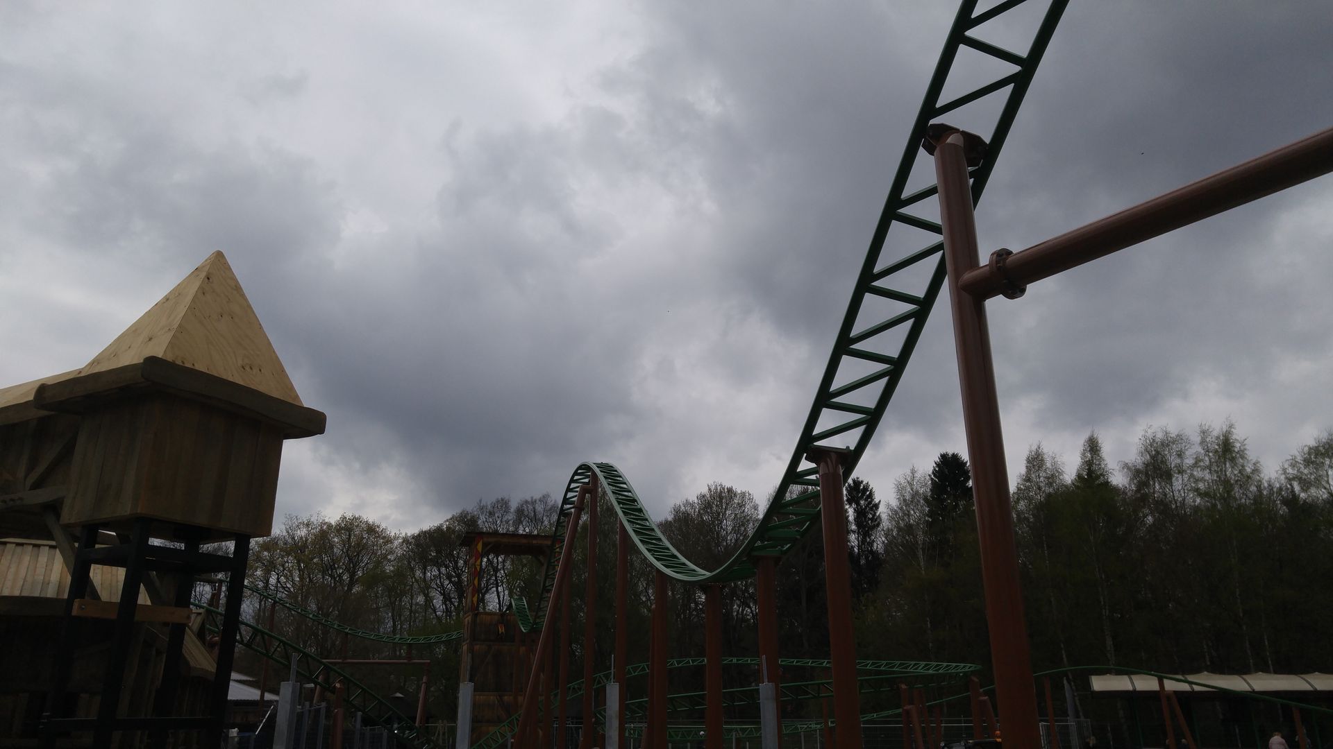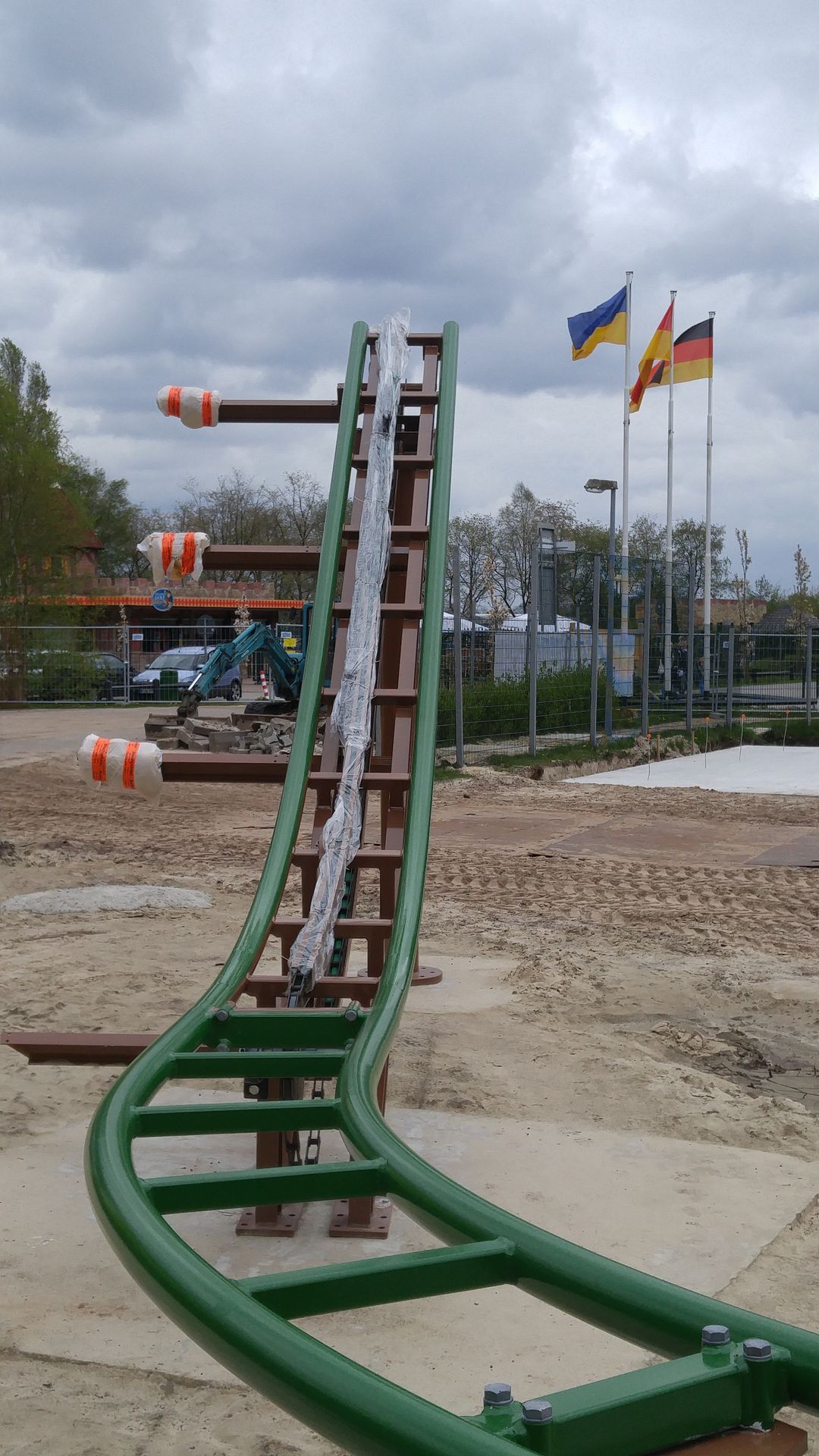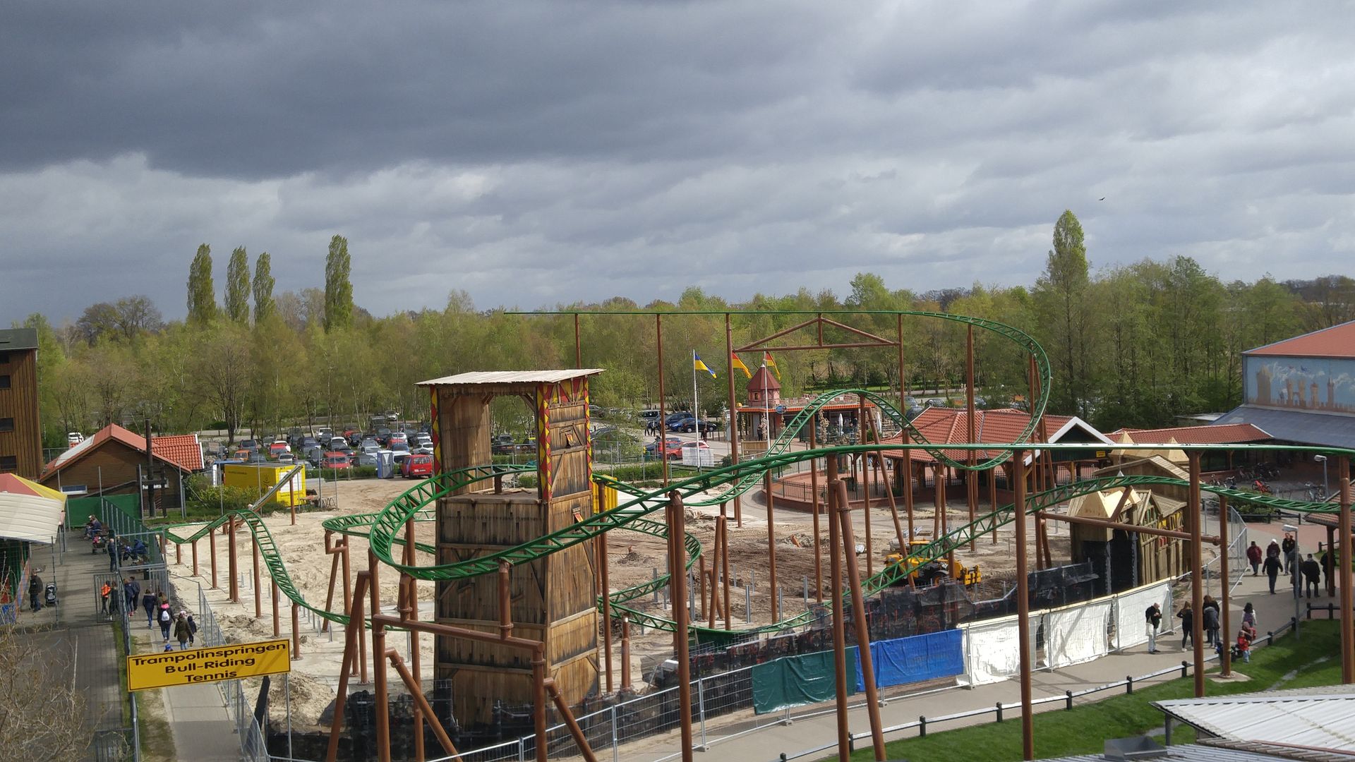 Direkt nach dem Betreten befindet sich aktuell noch die Baustelle zum Tubecoaster, wo gerade die Felsen gebaut werden. Dies ist auch vermutlich einer der Gründe weshalb die Bahn erst im Herbst öffnet, weil sie eben von hinten nach vorne gebaut werden muss - ohne Thematisierung wäre sie schon lange fertig. Umso schöner dass man darauf Wert legt.