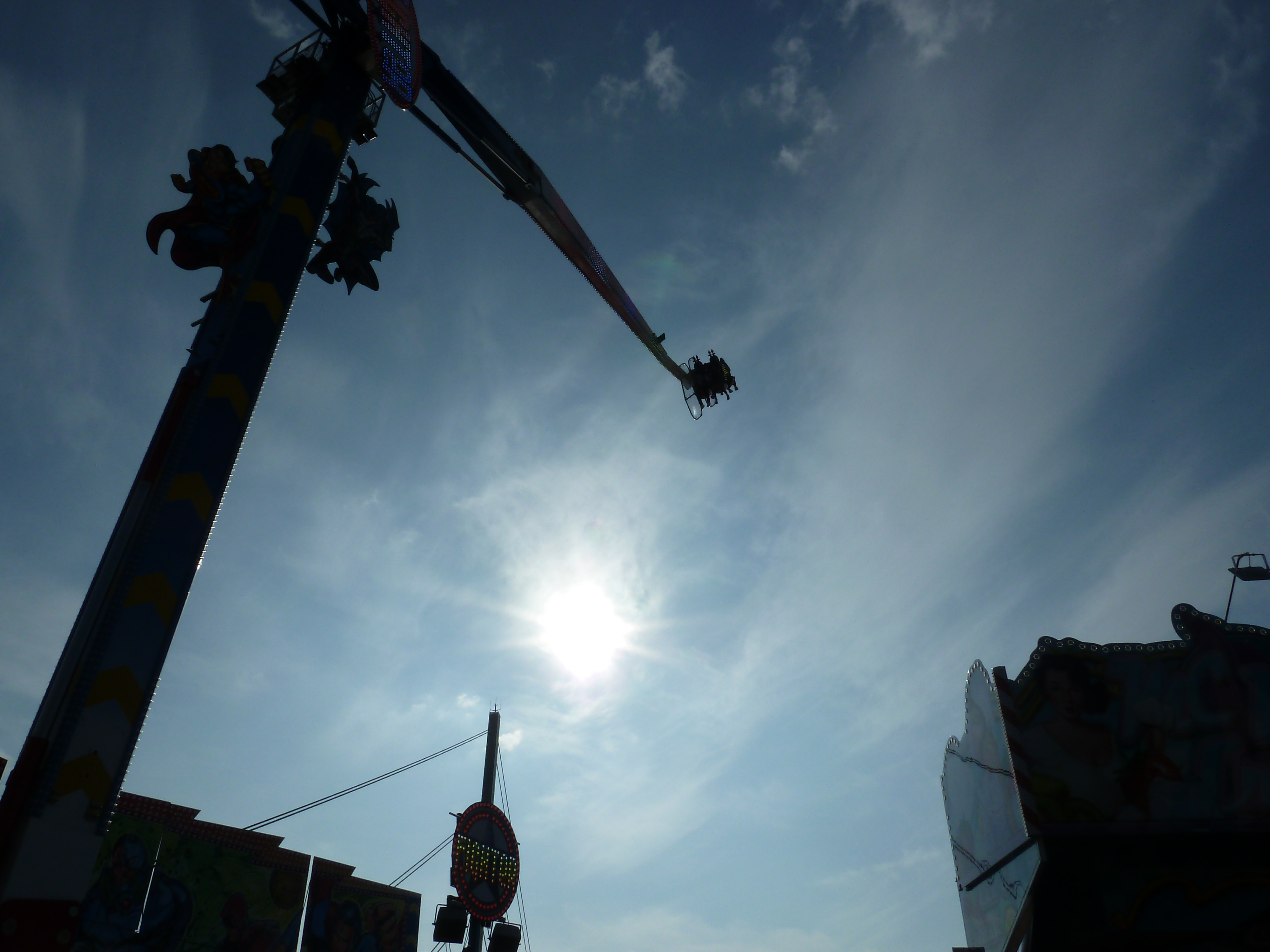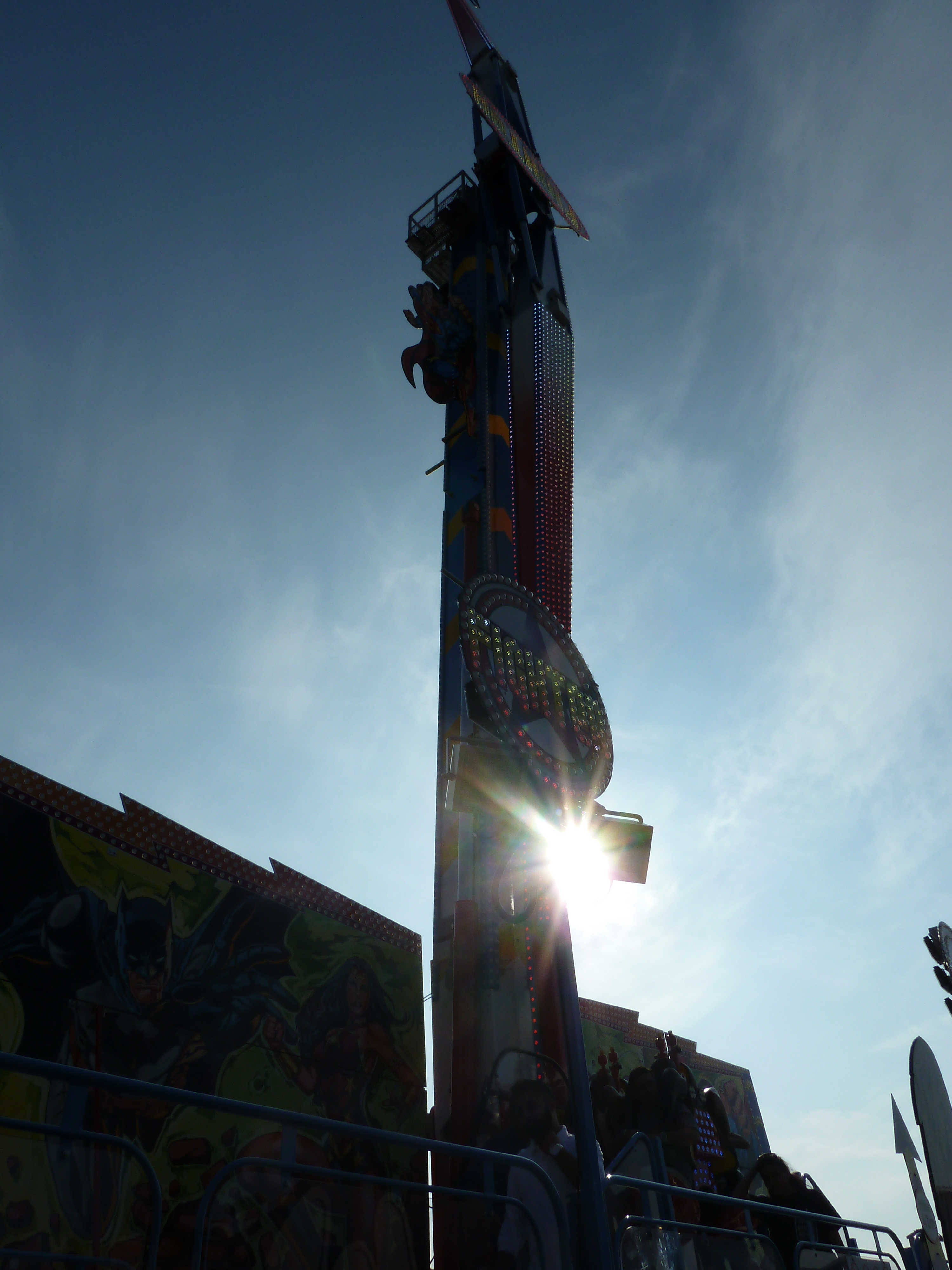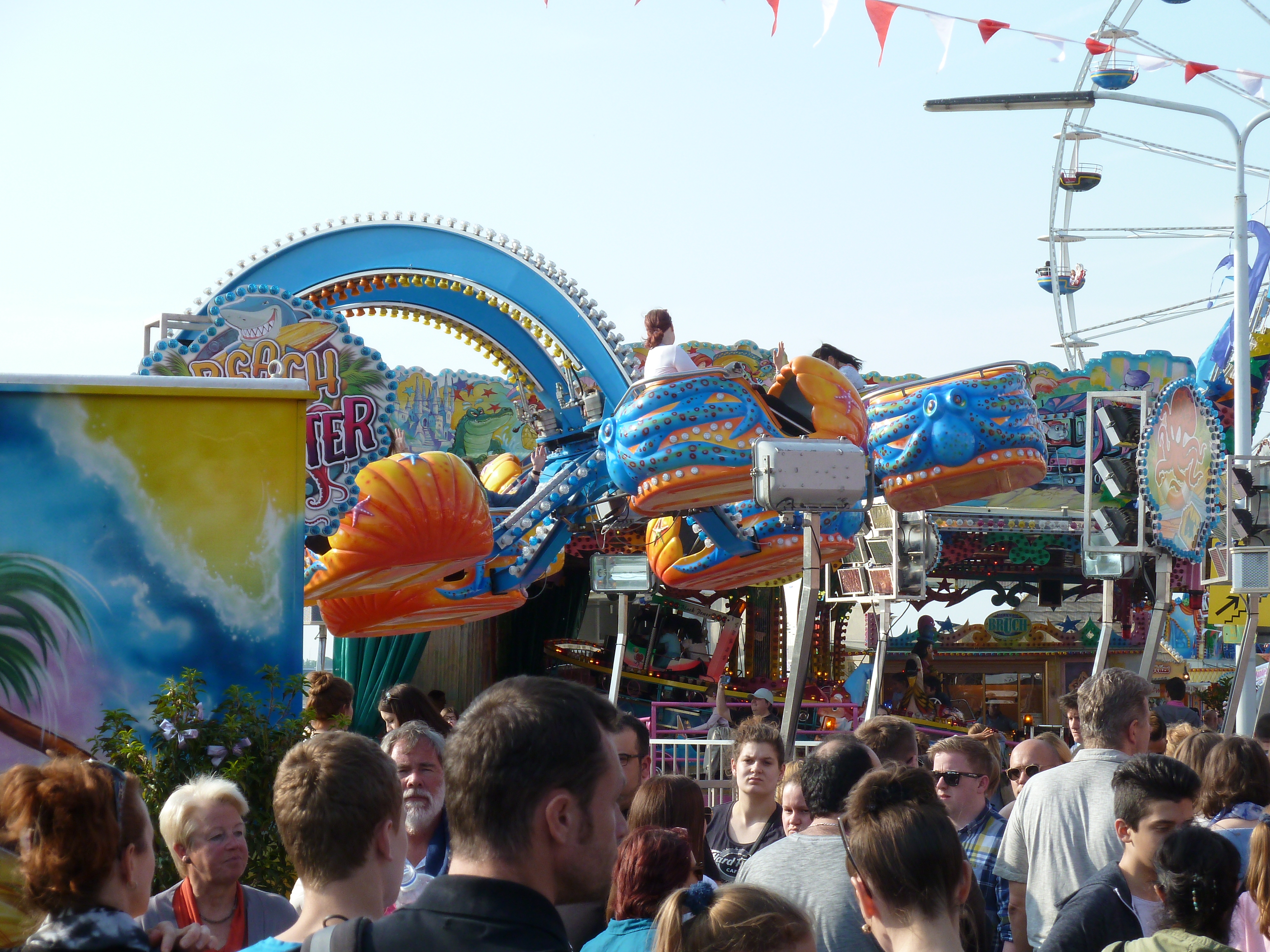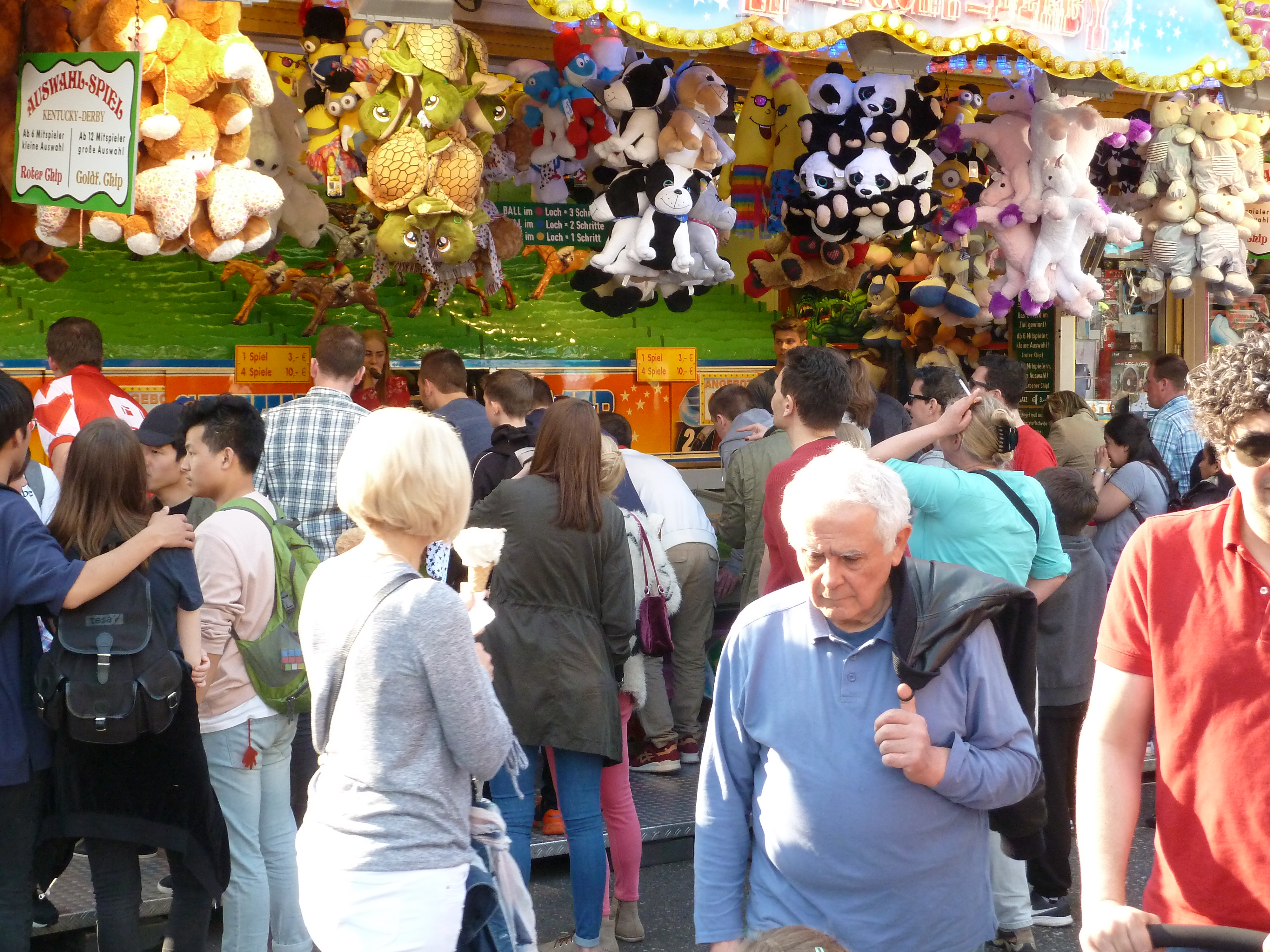 früher Samstag Abend in der Düsseldorfer Altstadt: Büchermeile, Shoppingzeit, Fuchs trinkende Fortuna-Fans, super Wetter, Sonne satt und eine gut bestückte Frühlingskirmes anne Tonhalle, das sorgte für eine prall gefüllte City und Altstadt. Ich wollte den Fighter counten, aber dieser war von der Zielgruppe der 14 - 16 jährigen komplett belagert gewesen bei 5 Euro Fahrpreis. Habe mir dann nur den Fahrchip für die Sammlung gekauft. Übrigens, Ehrenkarten für Deine Sammlung sind erst bei der nächsten Station des Fighters in Krefeld käuflich zu erwerben. Erkenntis: Propeller sind genau so wie die Launchcoaster ein Trend für die Ewigkeit. War auf jeden Fall mächtig was los gewesen, aber seht selbst: