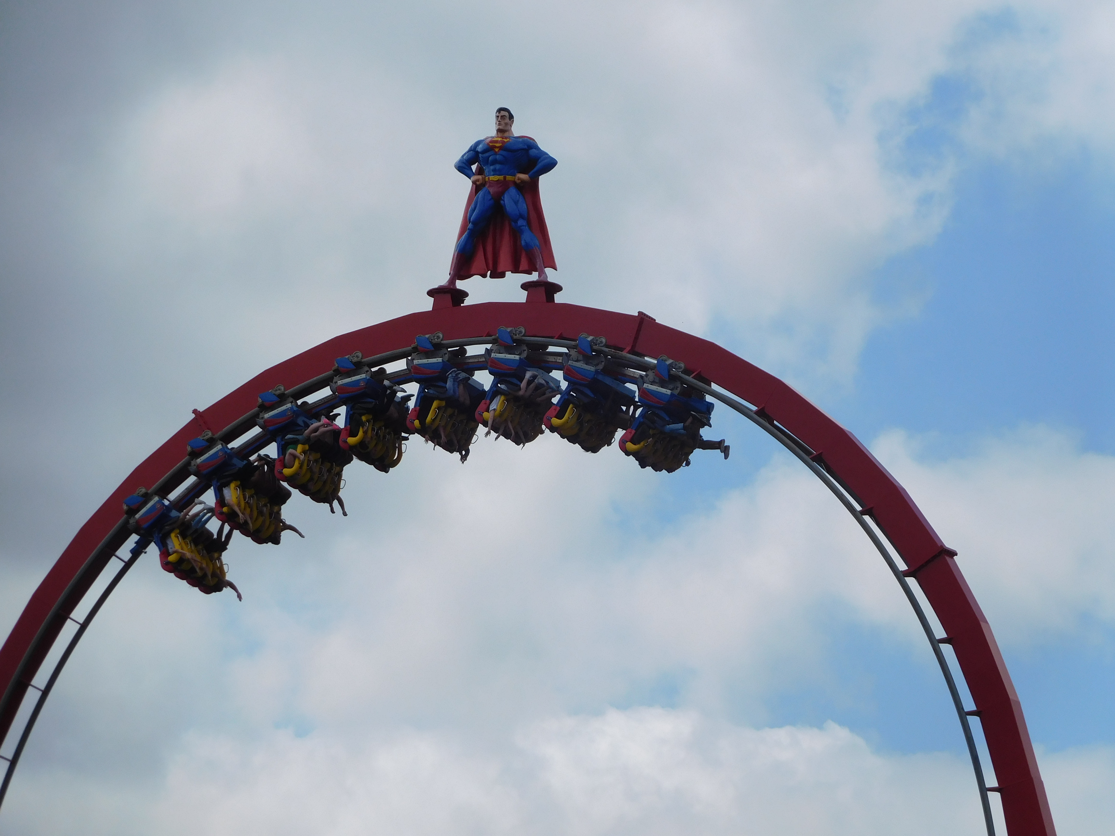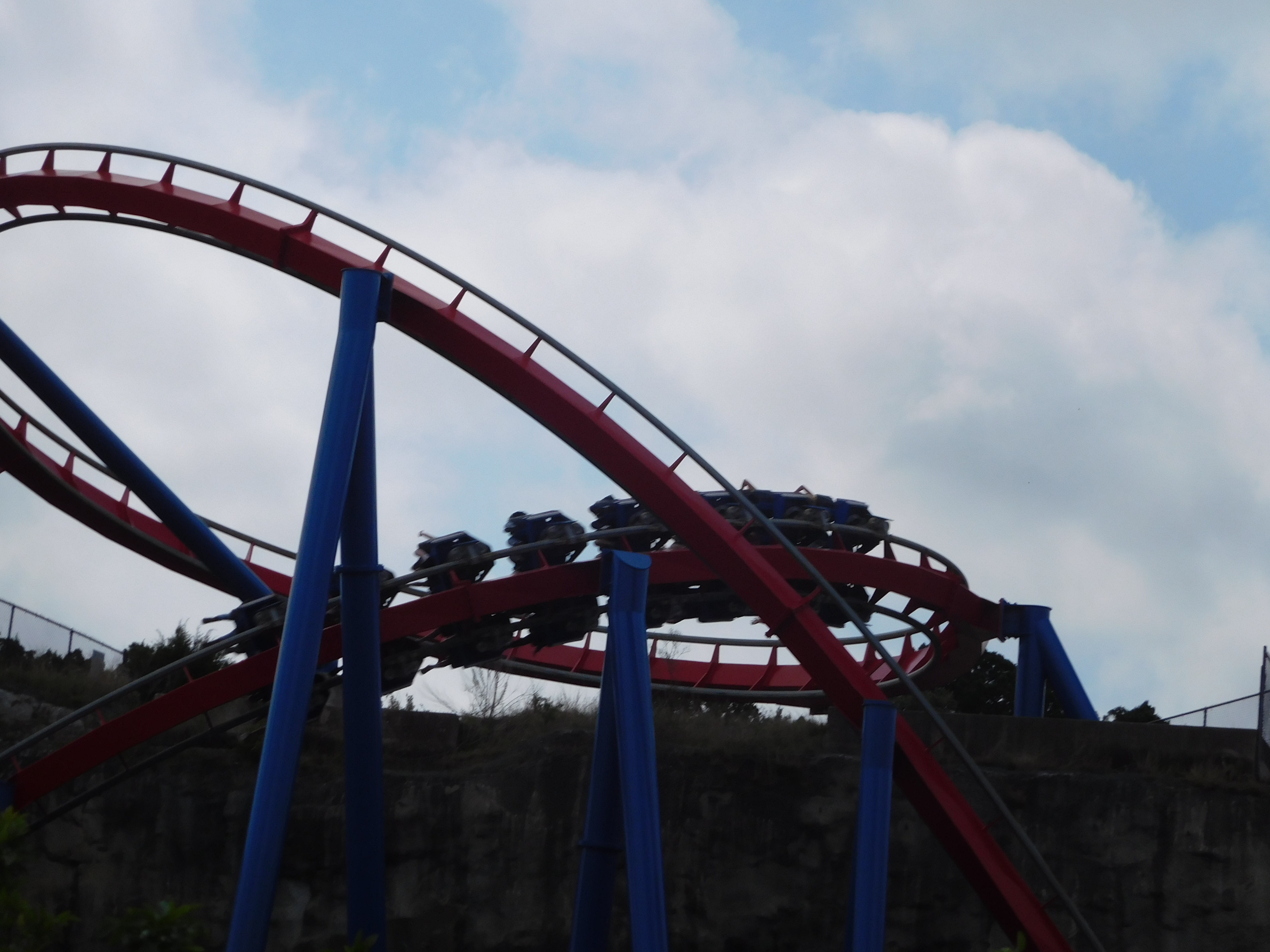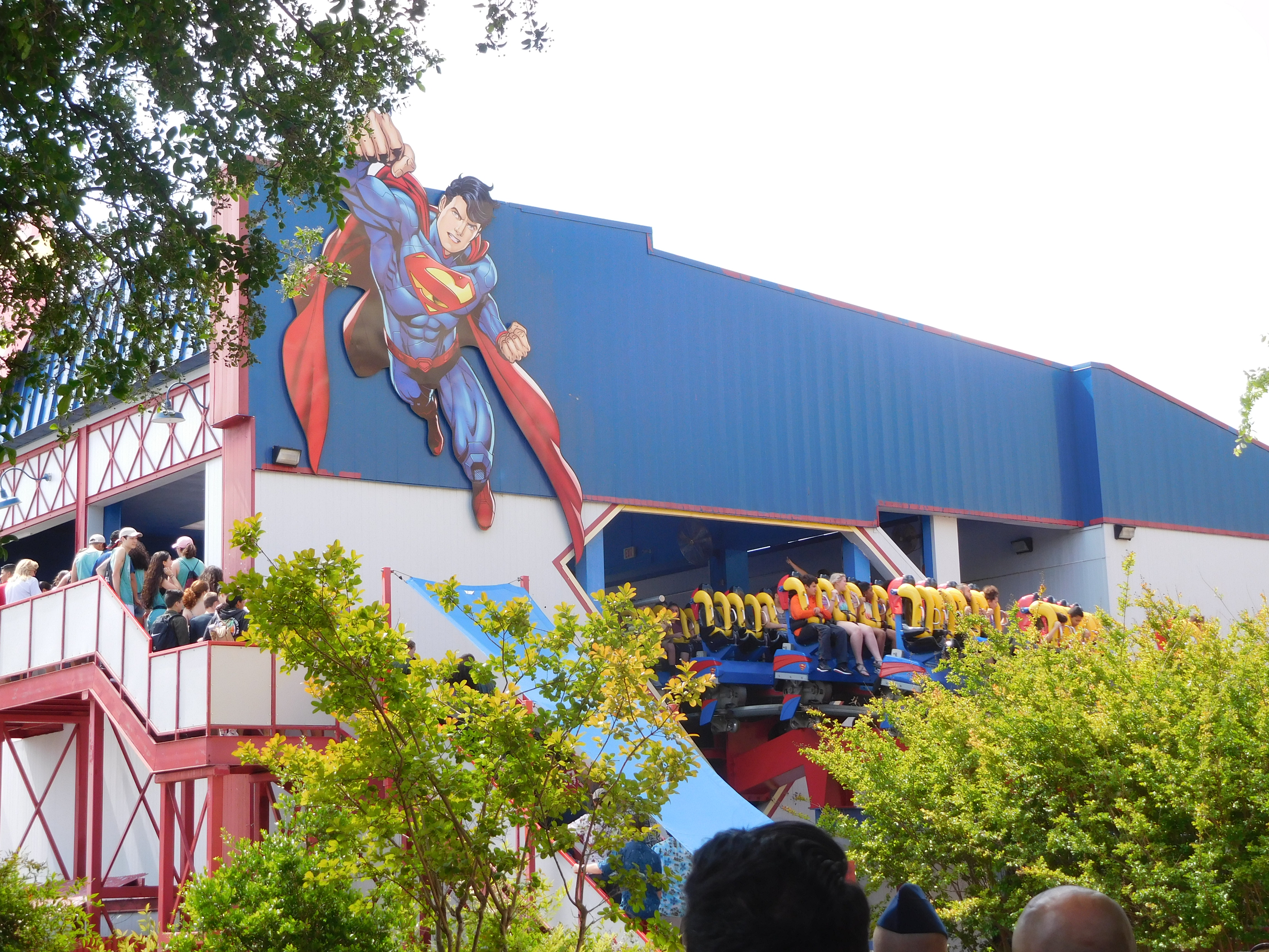 Nun hatte ich das Wichtigste geschafft und ich hatte noch einmal Lust auf Wiederholungsfahrten. Da der Park einen Rundgang hat, war der Superman Krypton Coaster zum Glück auch nicht mehr so weit weg. Die Warteschlange war ähnlich lang, doch die Abfertigung hatte sich gefühlt leicht verbessert und somit wartete ich diesmal sogar nur eine gute Viertelstunde, sehr schön! Die Fahrt festigte nochmal meine Meinung als Lieblingsbahn im Park, ich hatte erneut so einen riesigen Spaß bei der Fahrt.